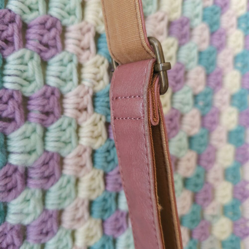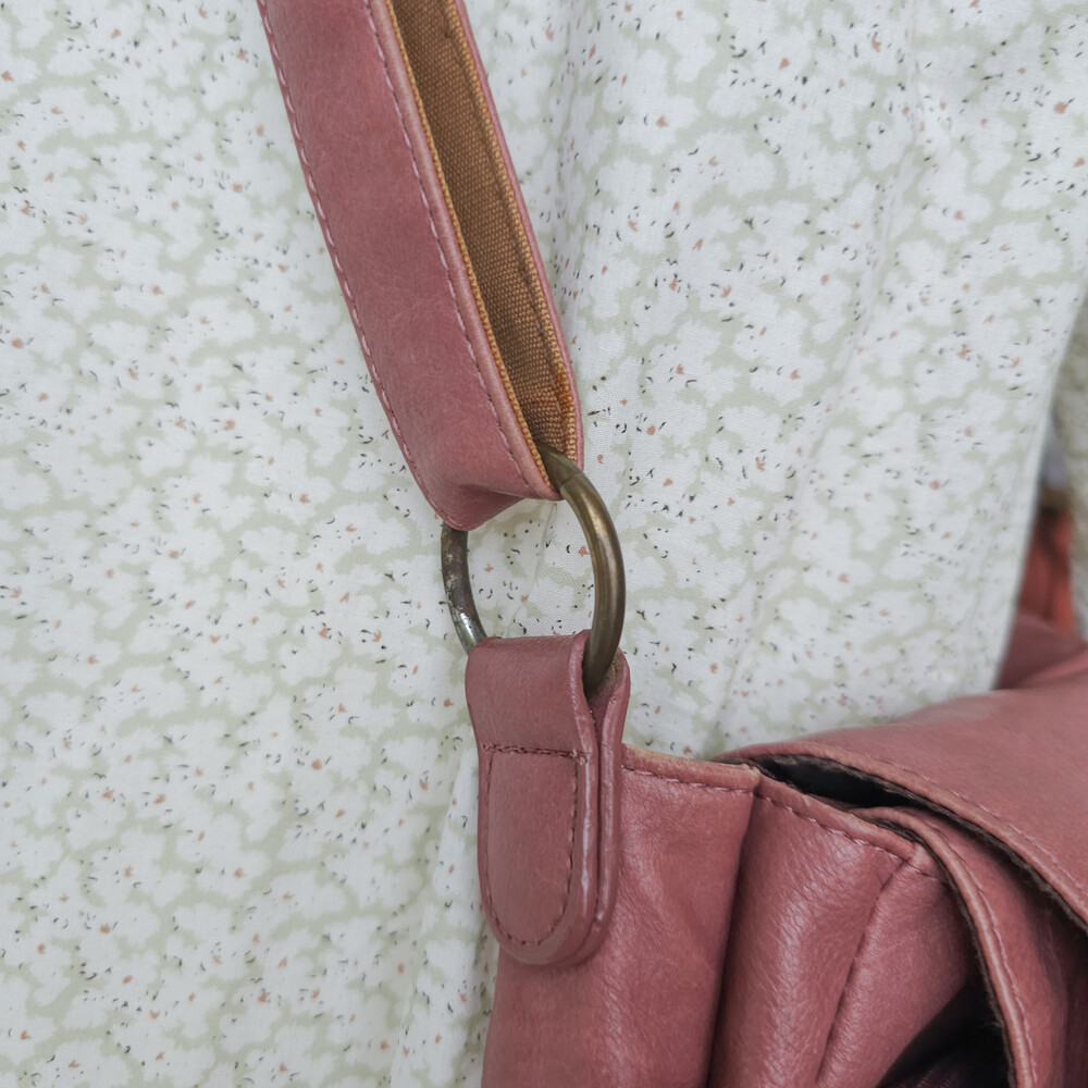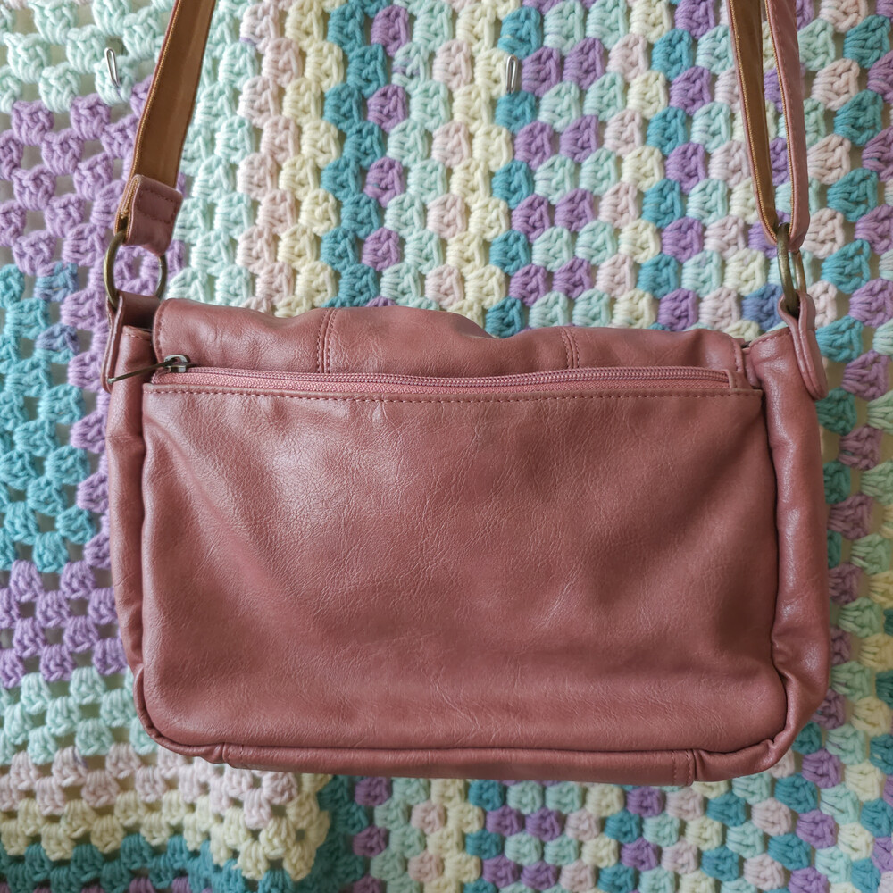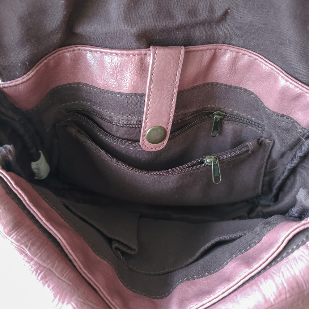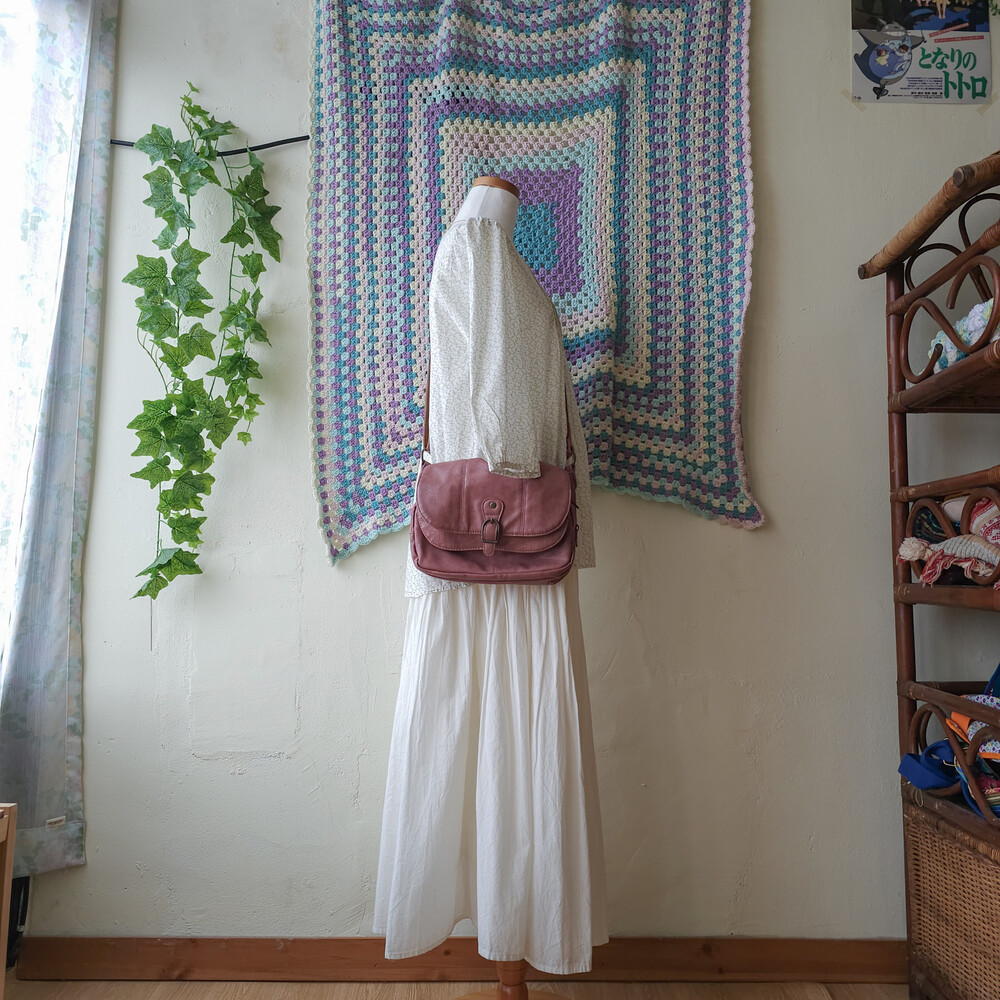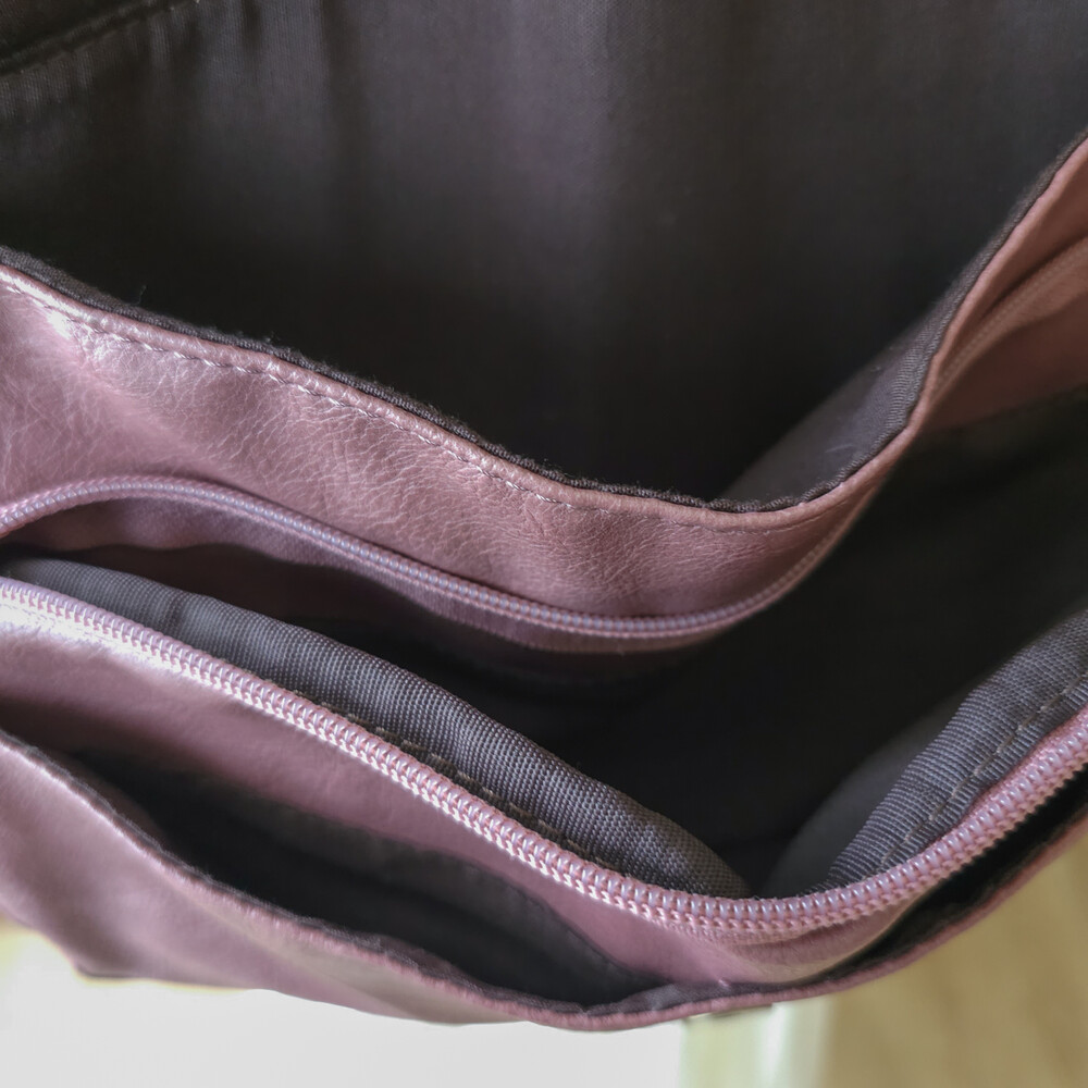 인디핑크와 팥죽색이 섞인 색감의 크로스백이에요