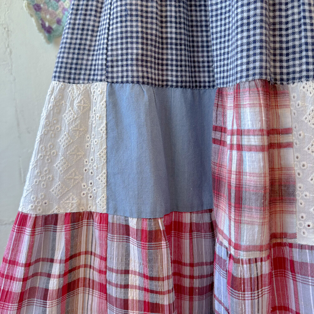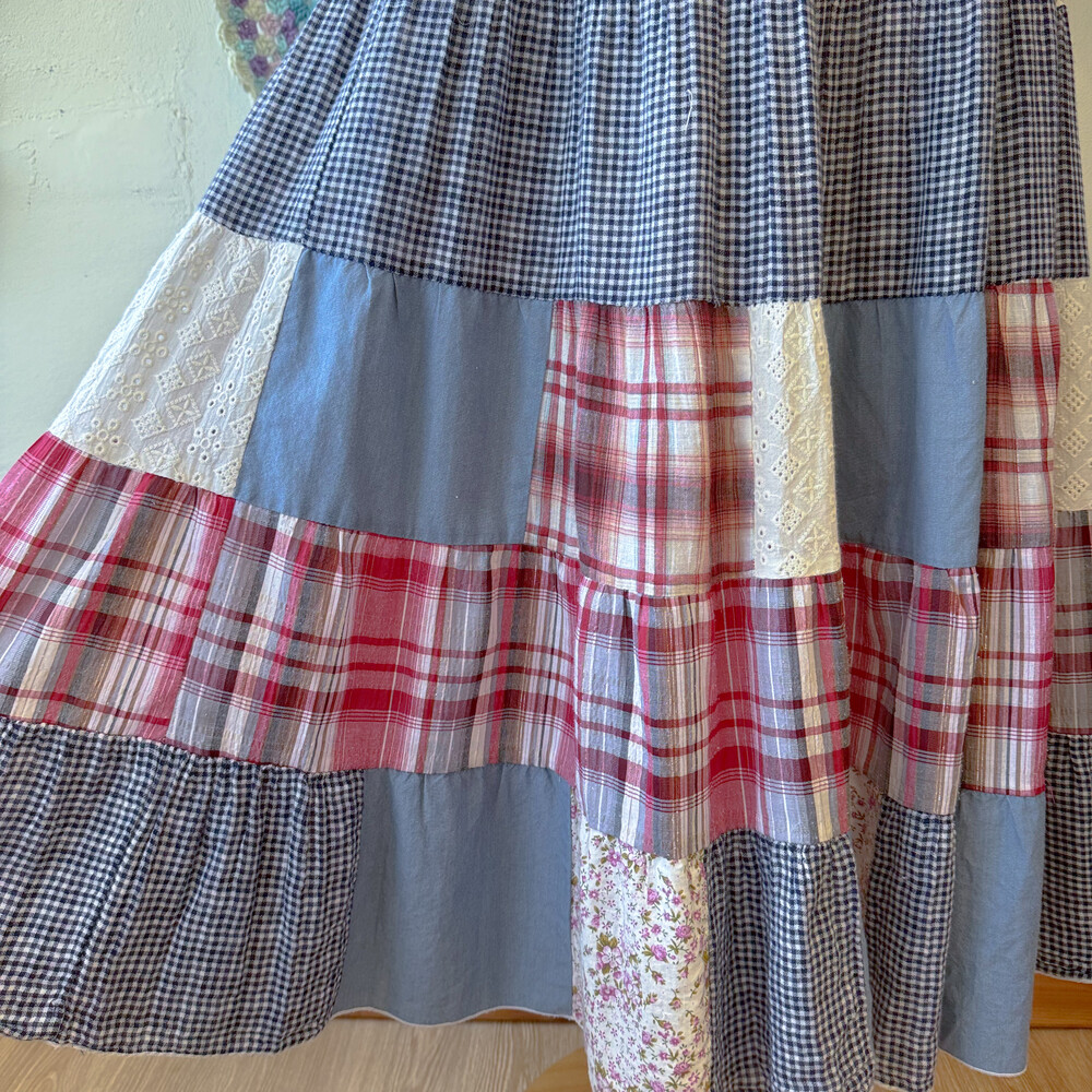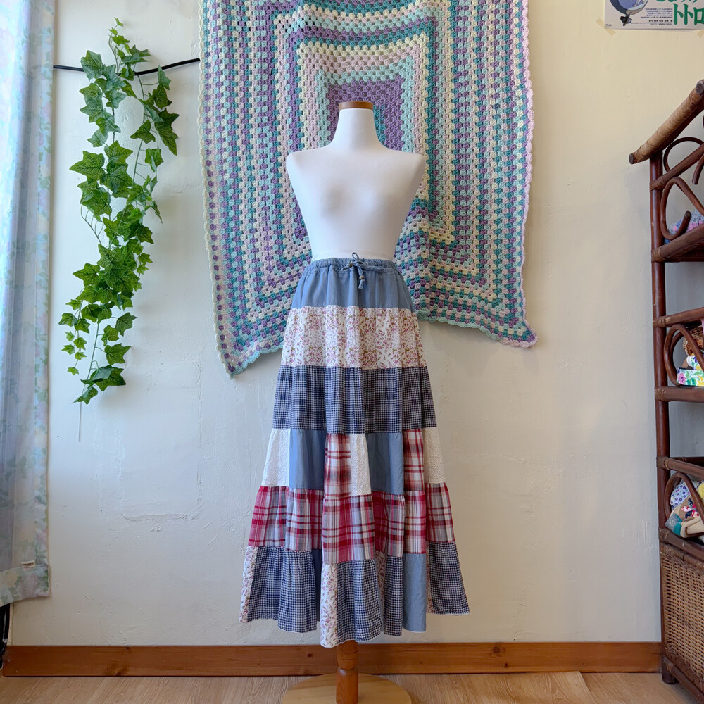블루 색감의 패치워크 스커트예요