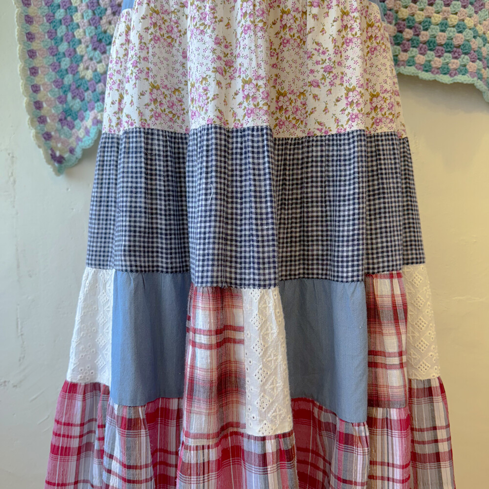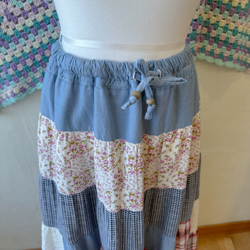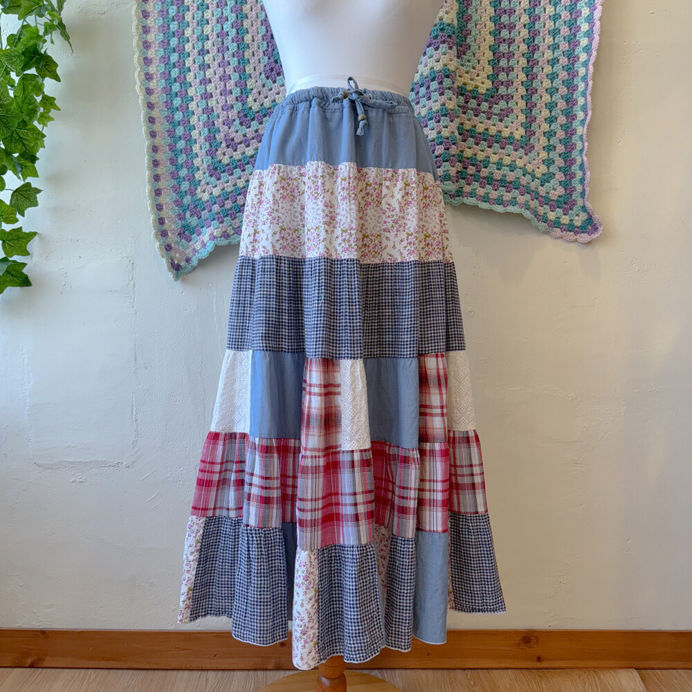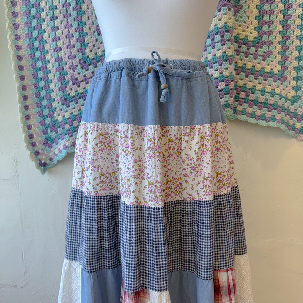블루 색감의 패치워크 스커트예요