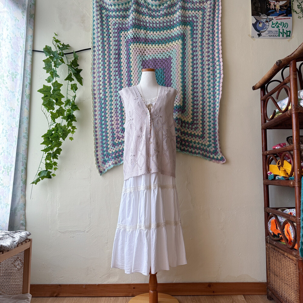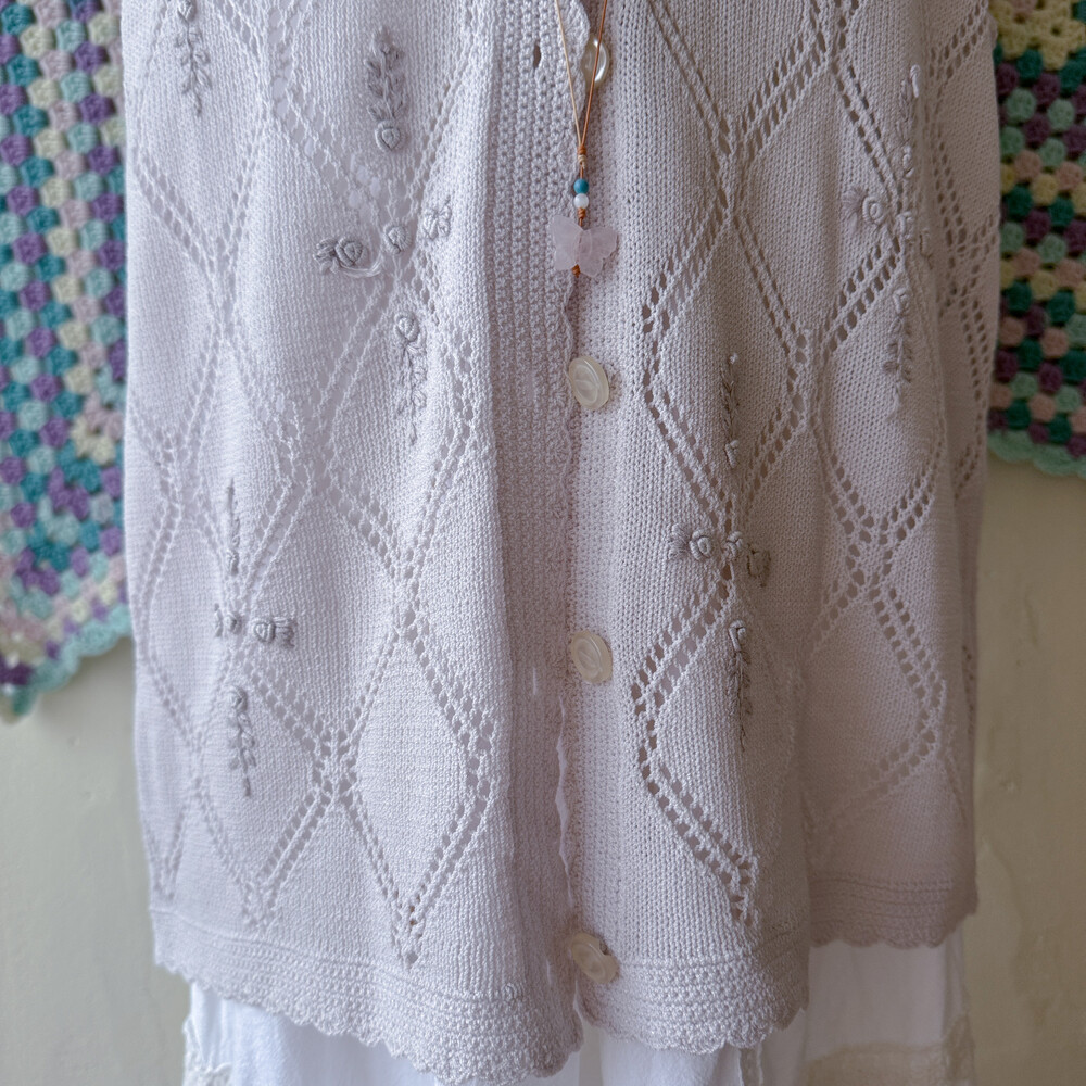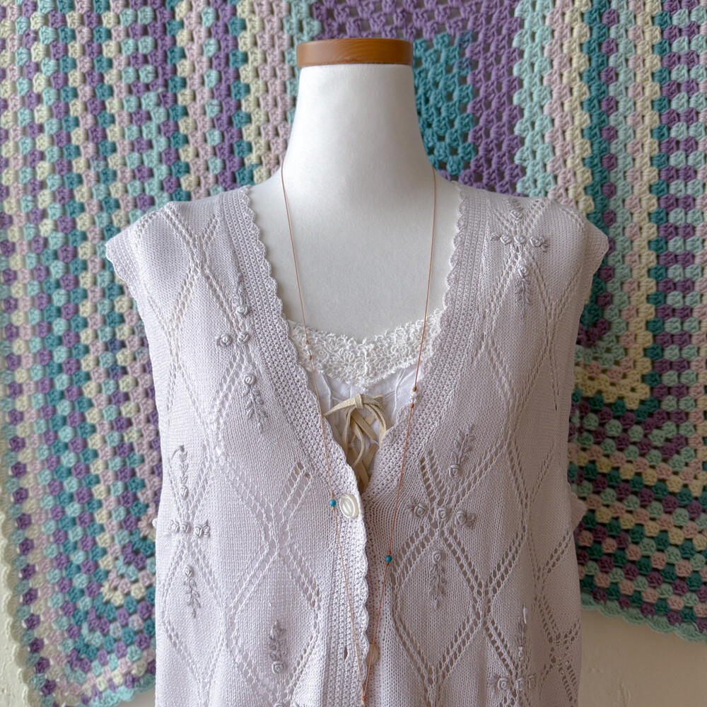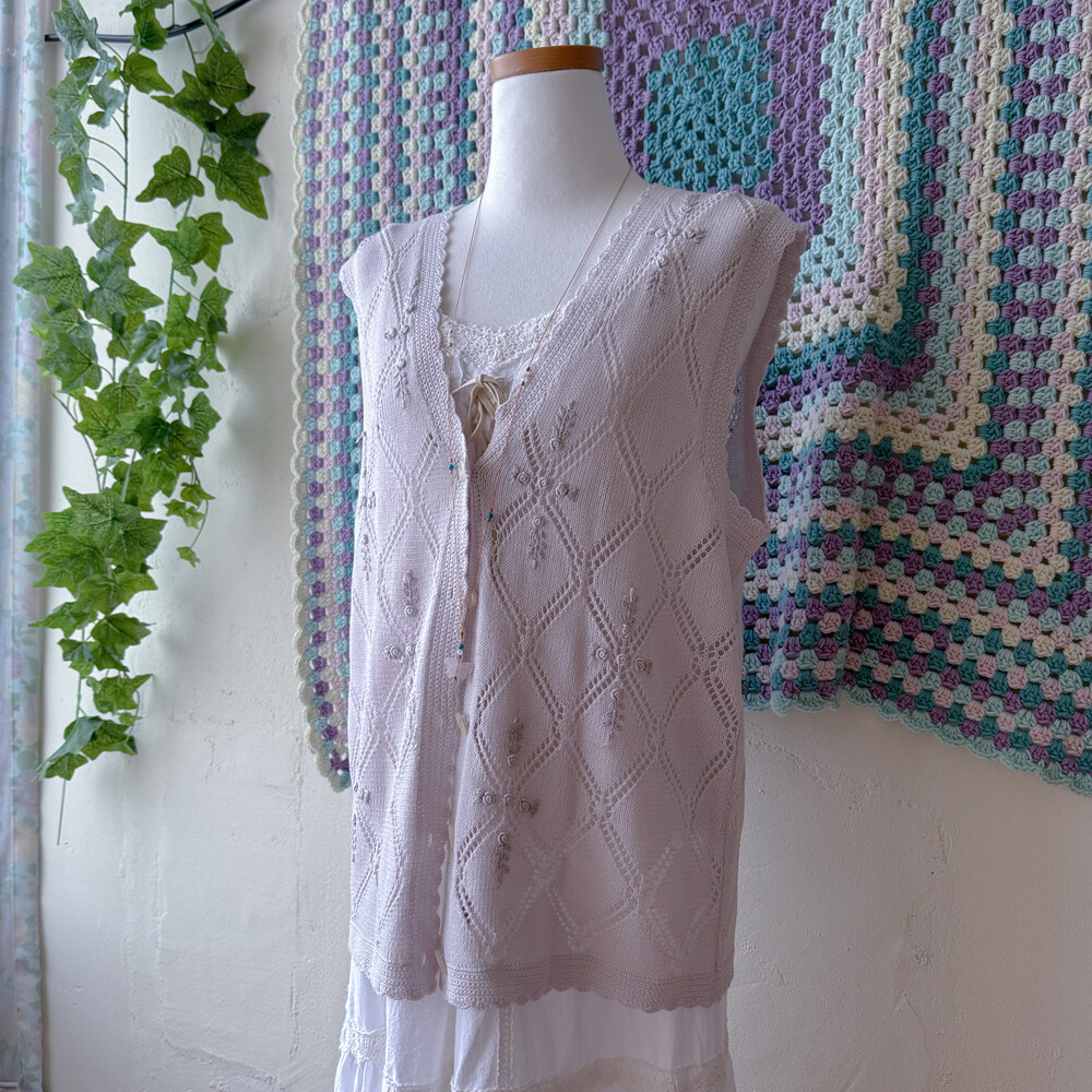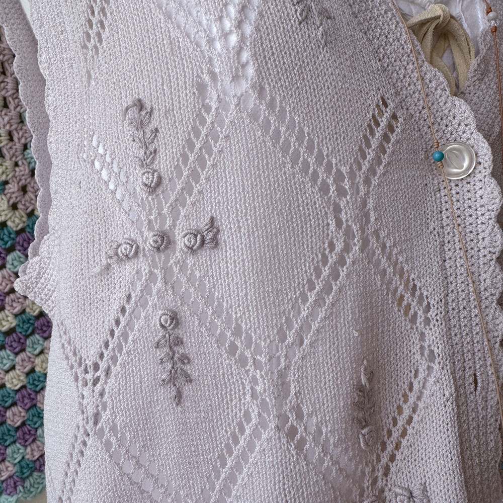 뮤트 퍼플 색감의 크로셰 조끼예요