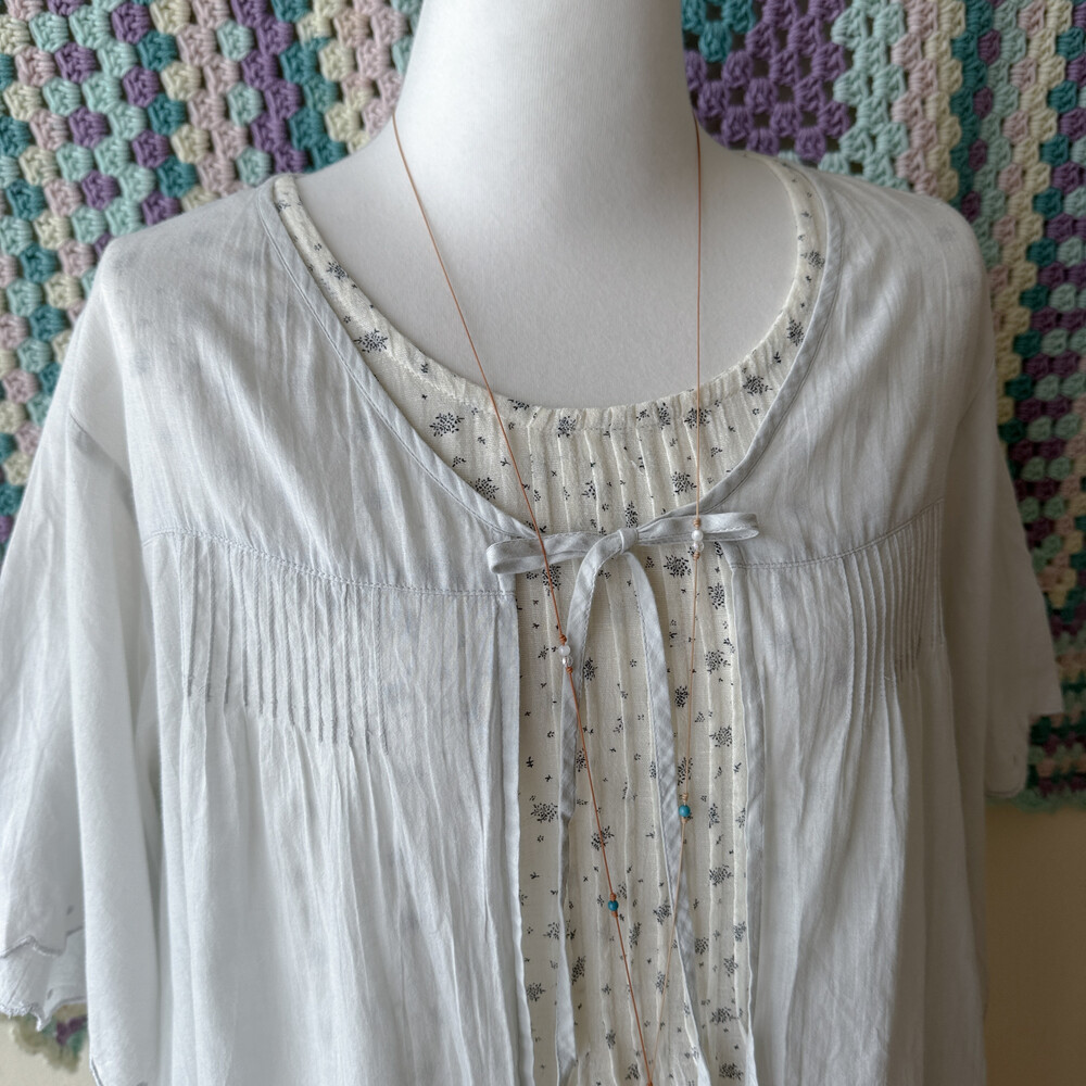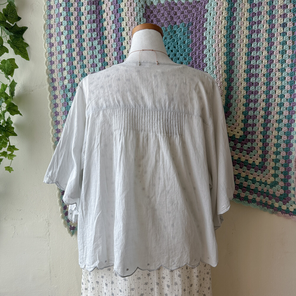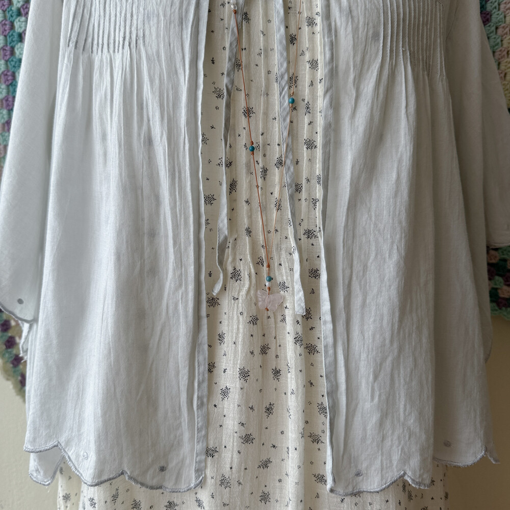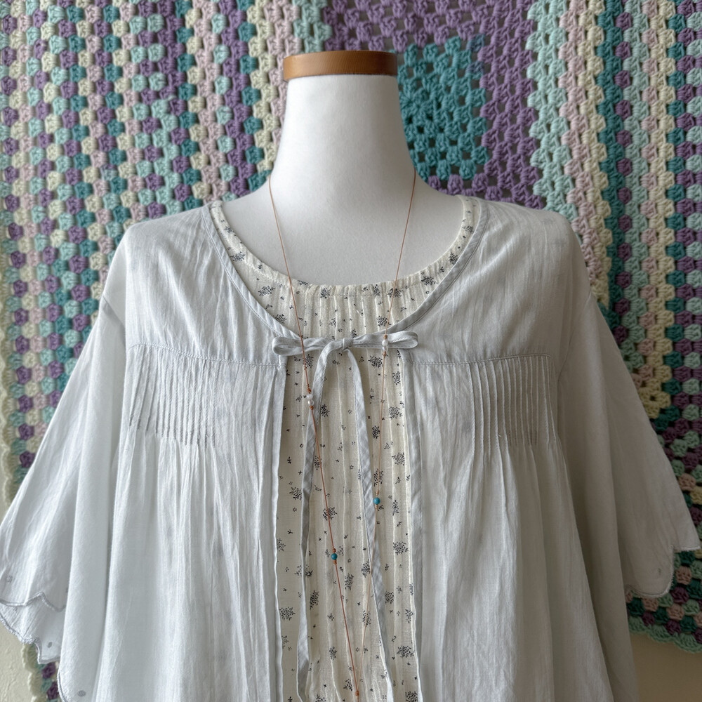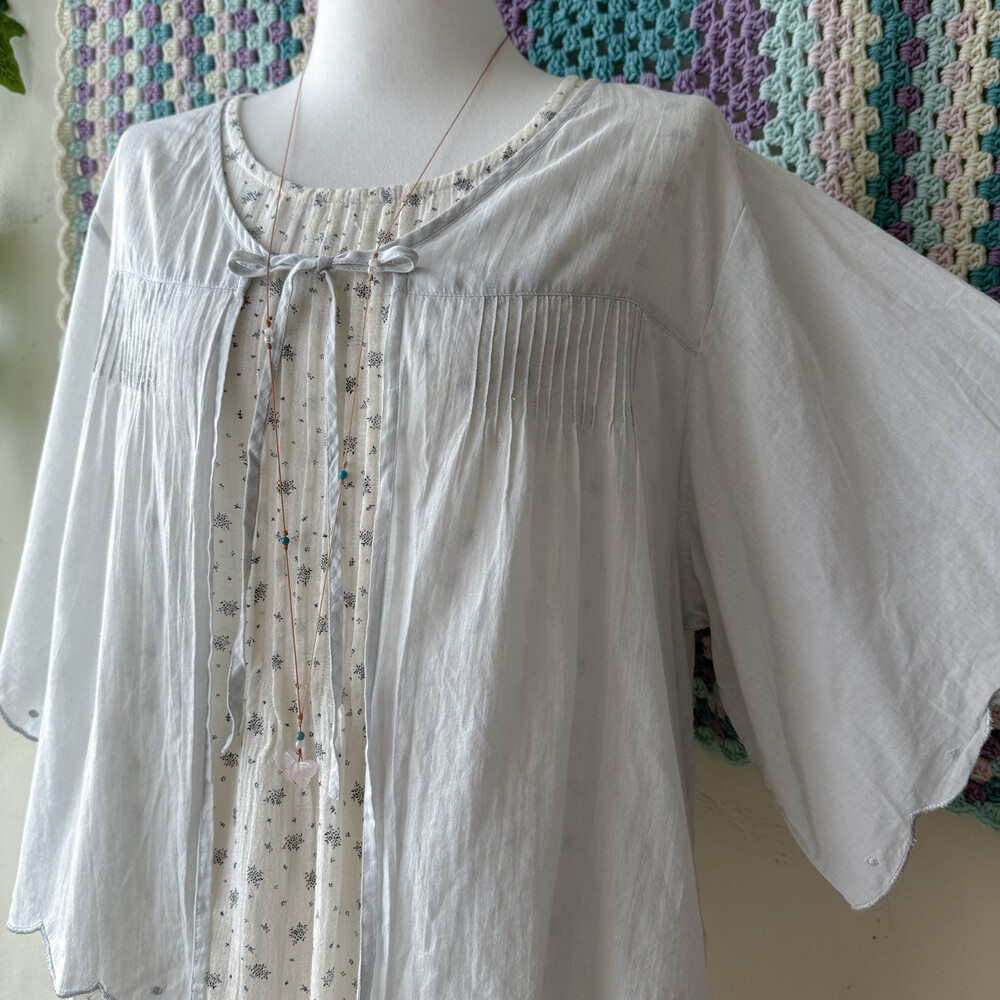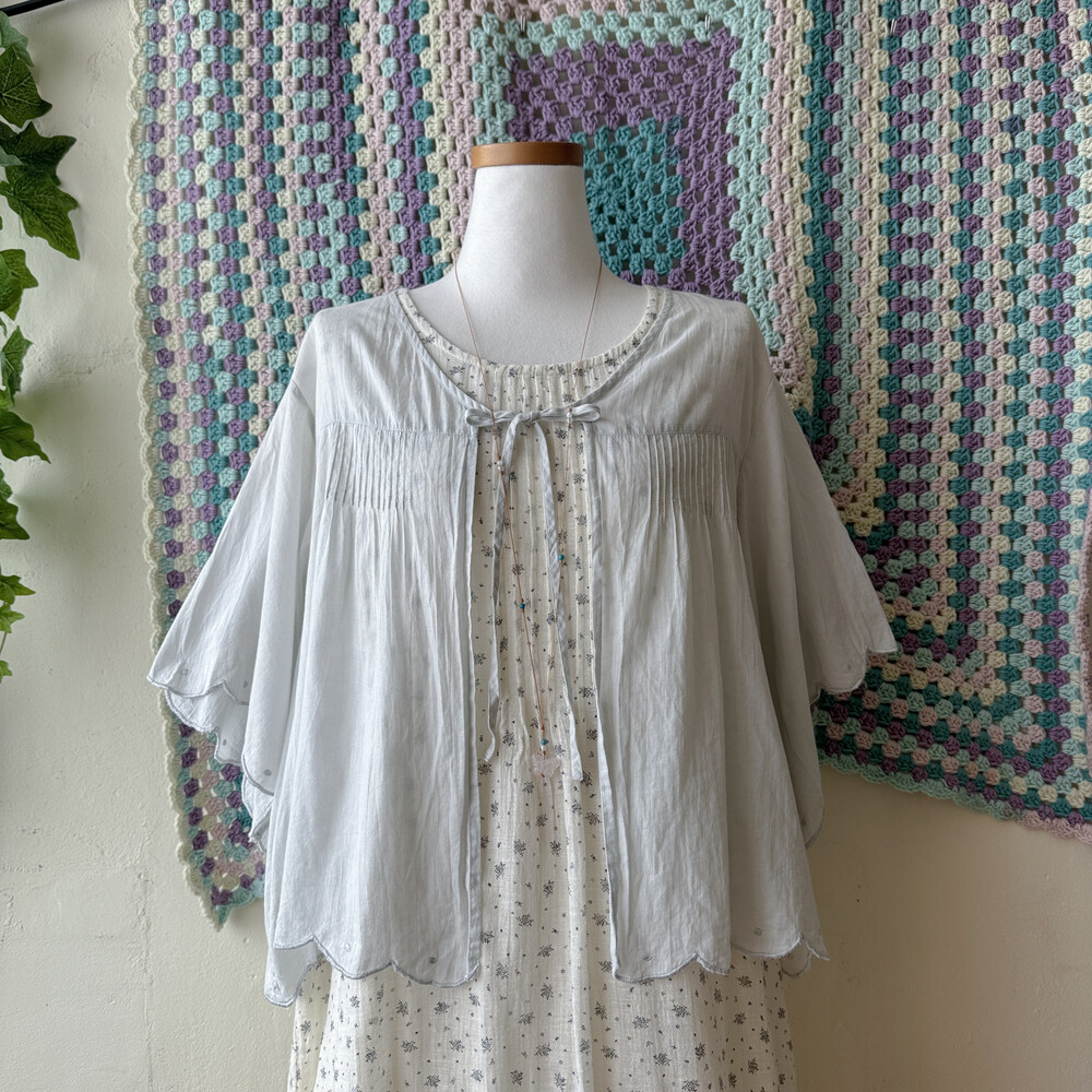 블루빛 살짝 도는 연그레이 색감의 1리본 반팔 가디건이에요