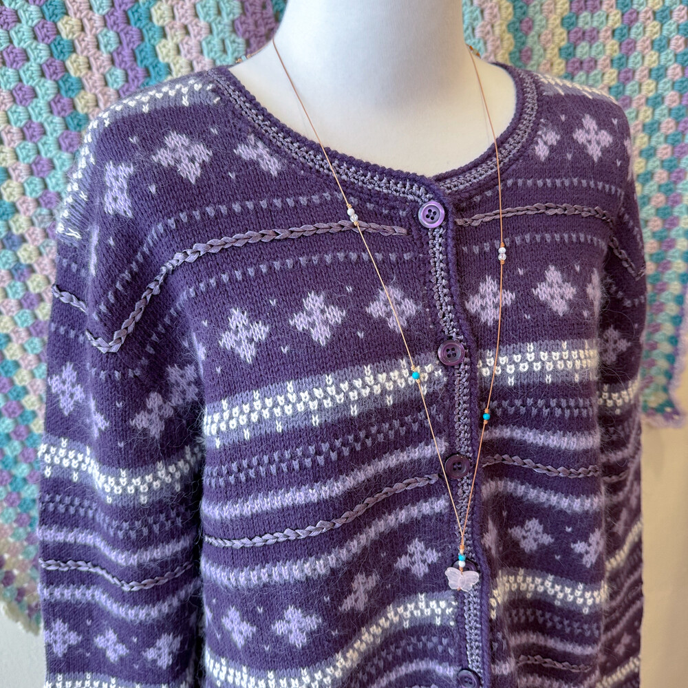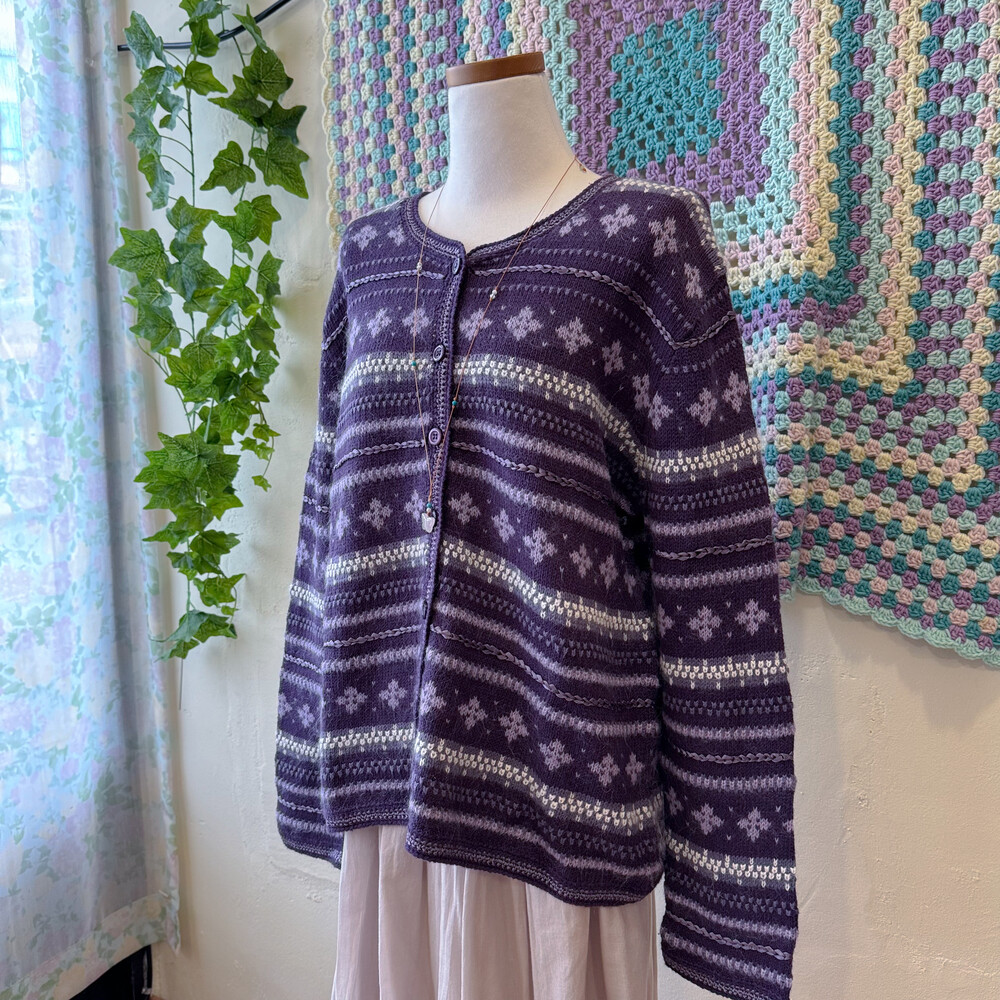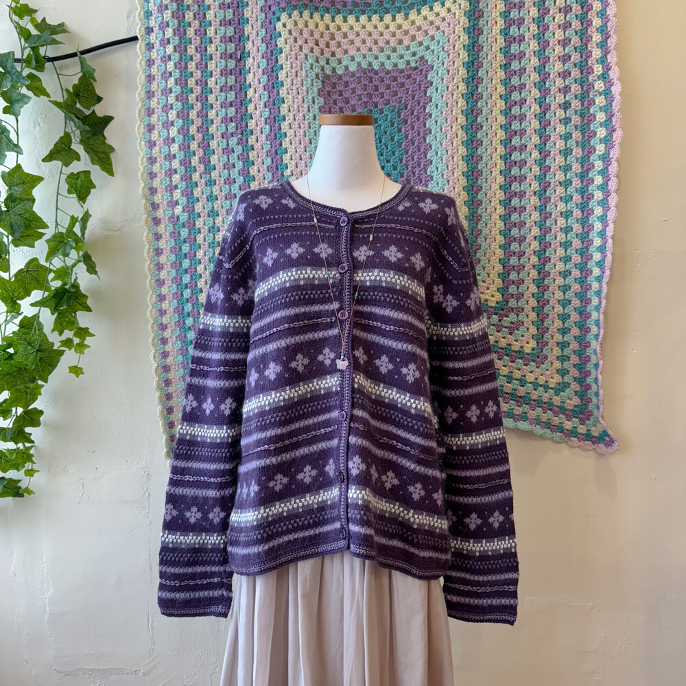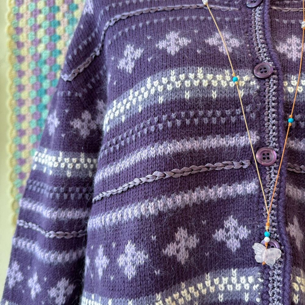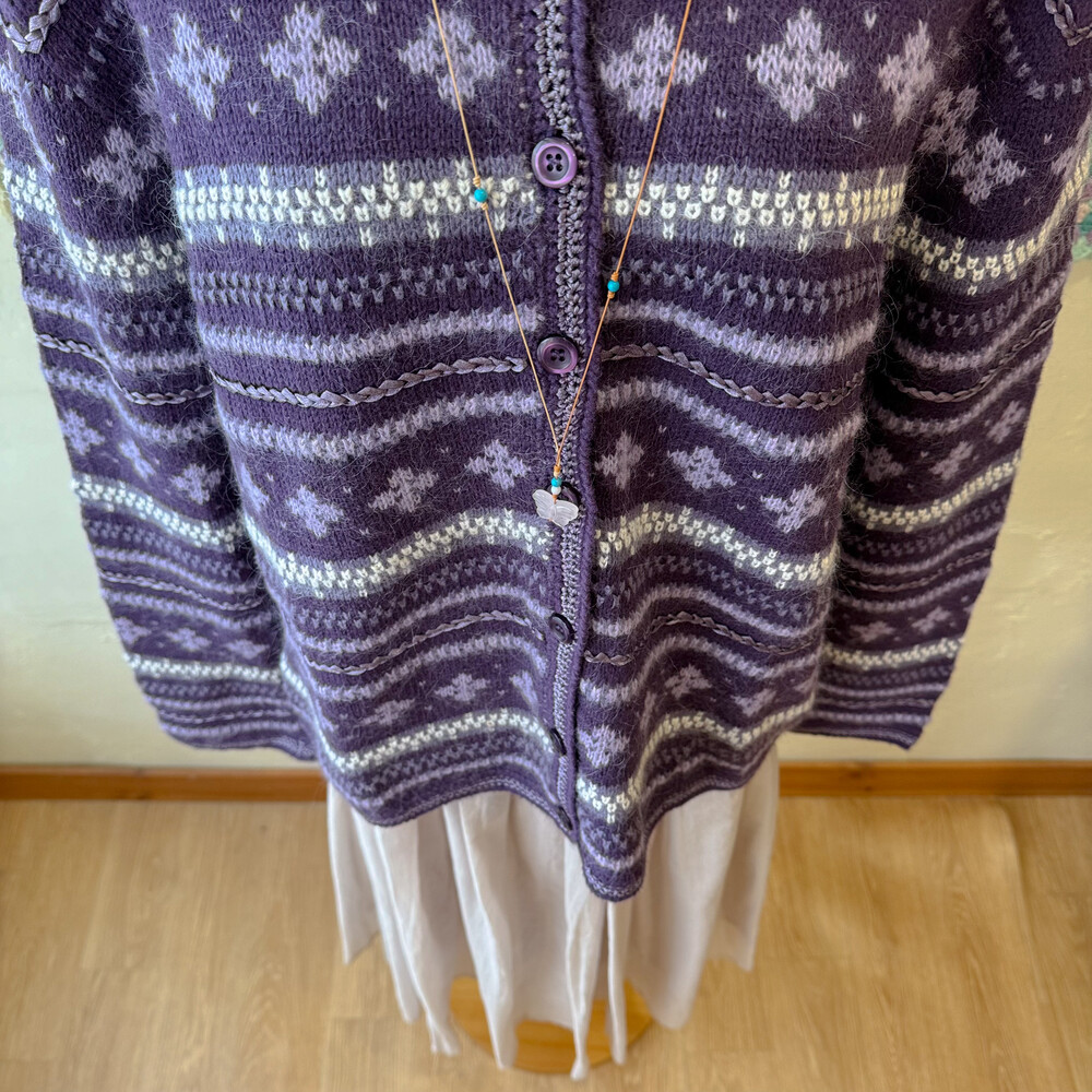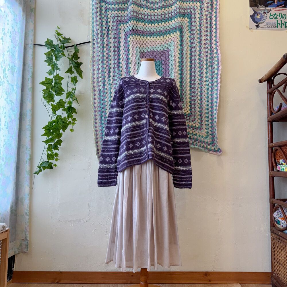 보라색의 노르딕 가디건이에요