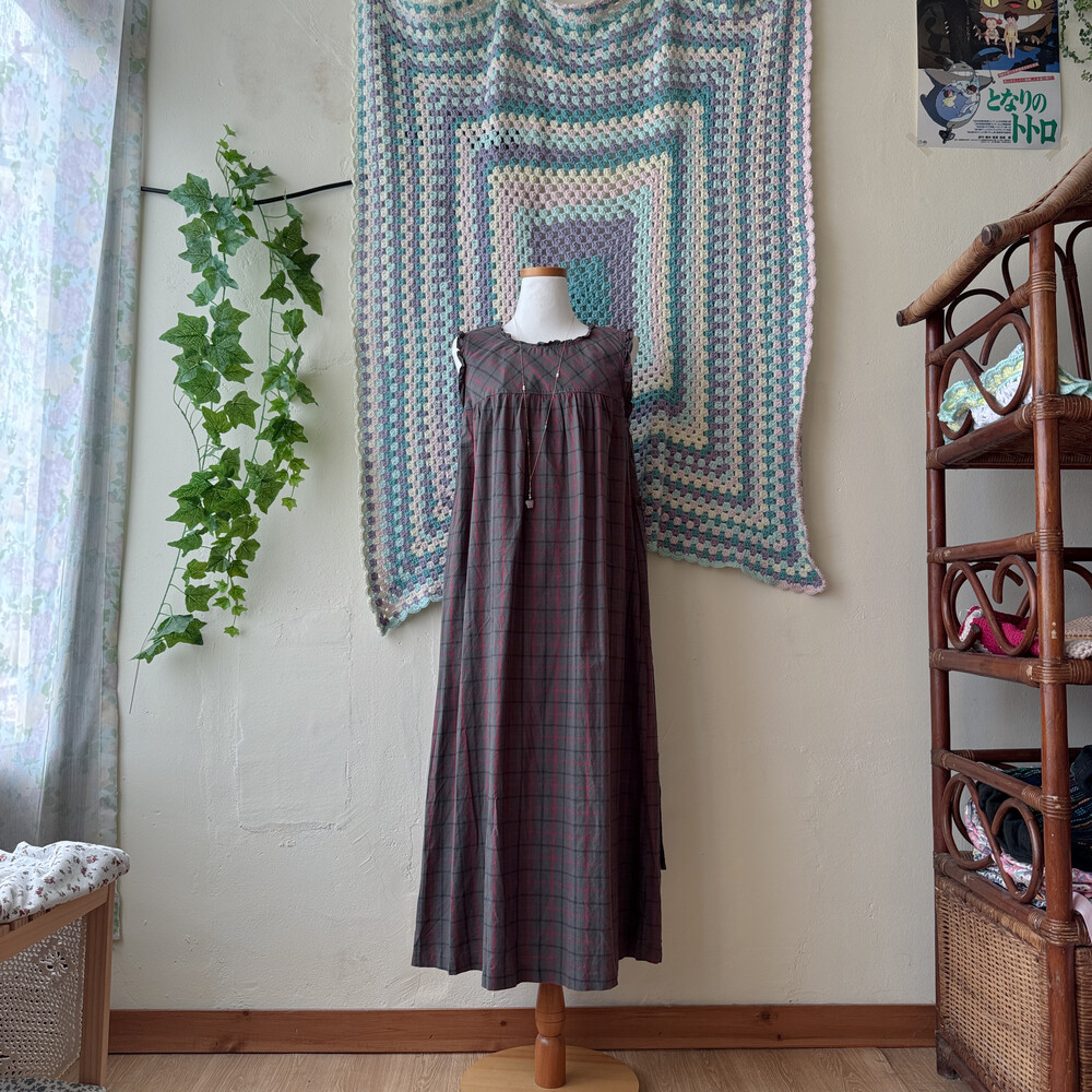잿빛 먹색의 민소매 롱원피스예요