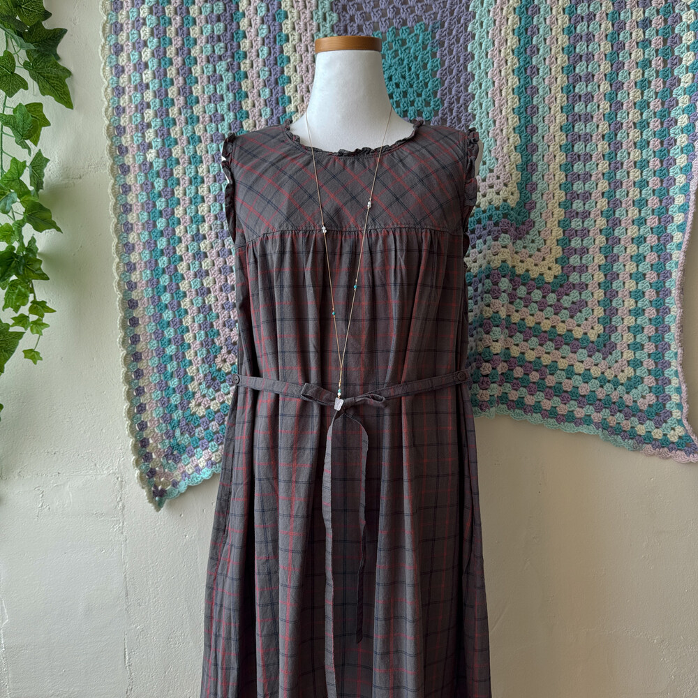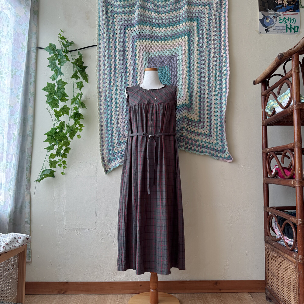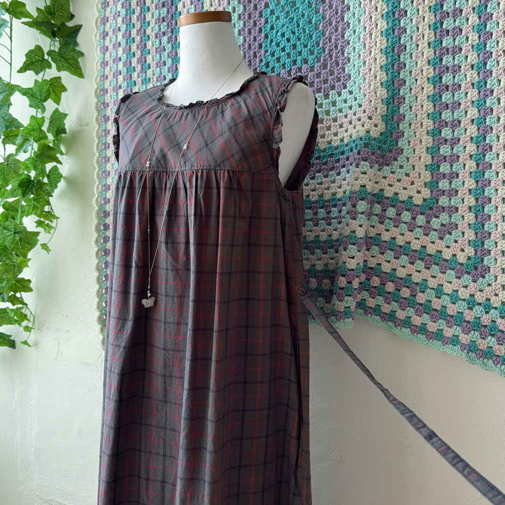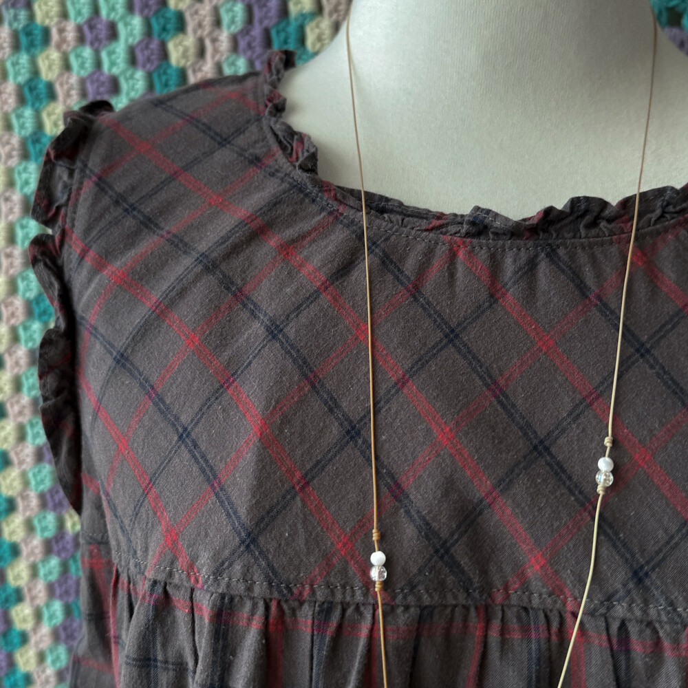 ash base red check cozy frill neck ops