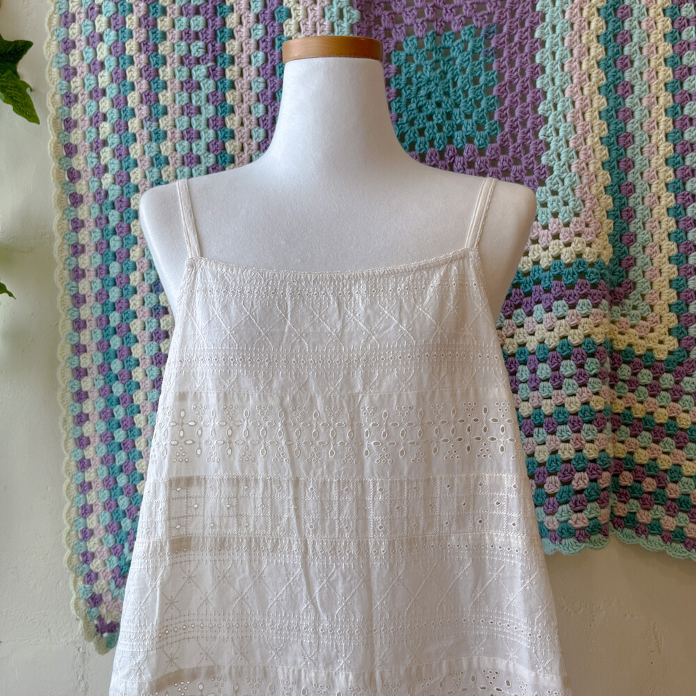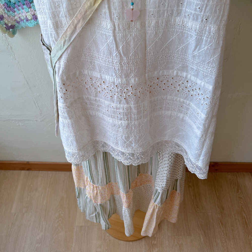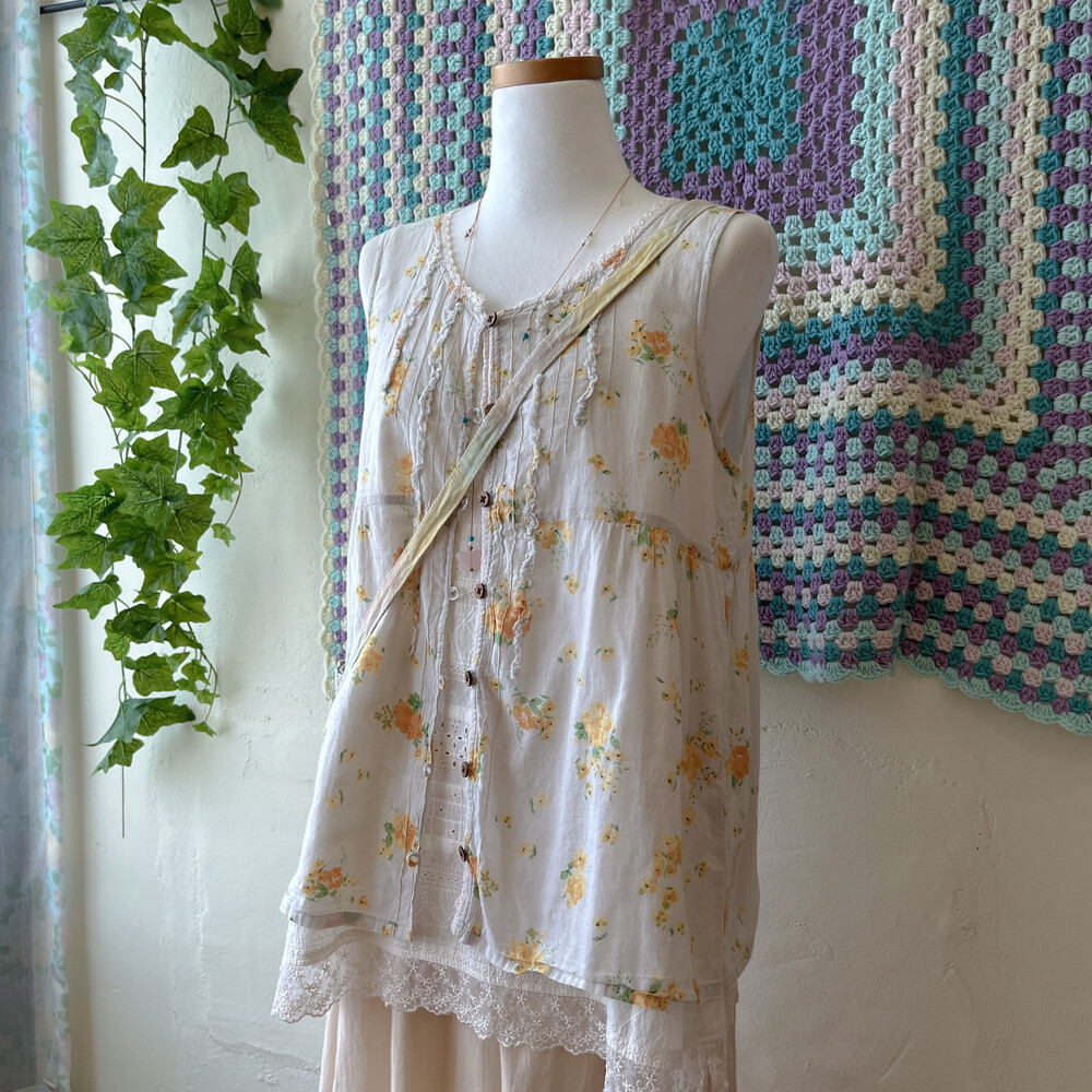 sm2의 코튼 패치워크 슬리브리스 블라우스예요