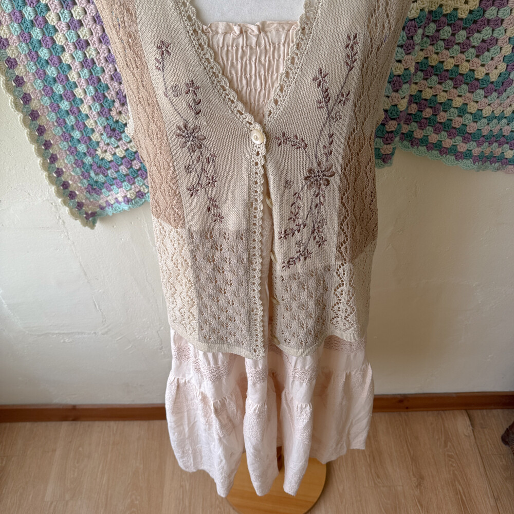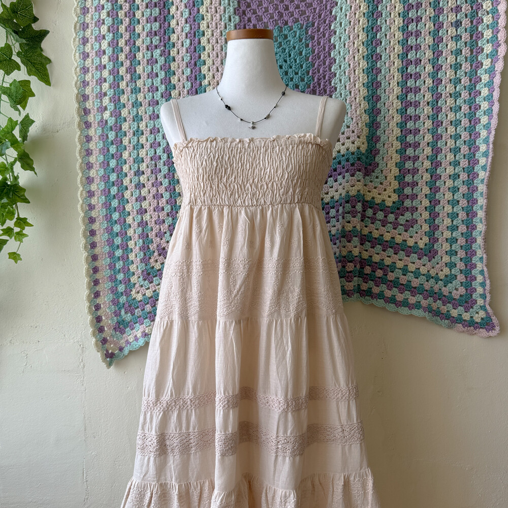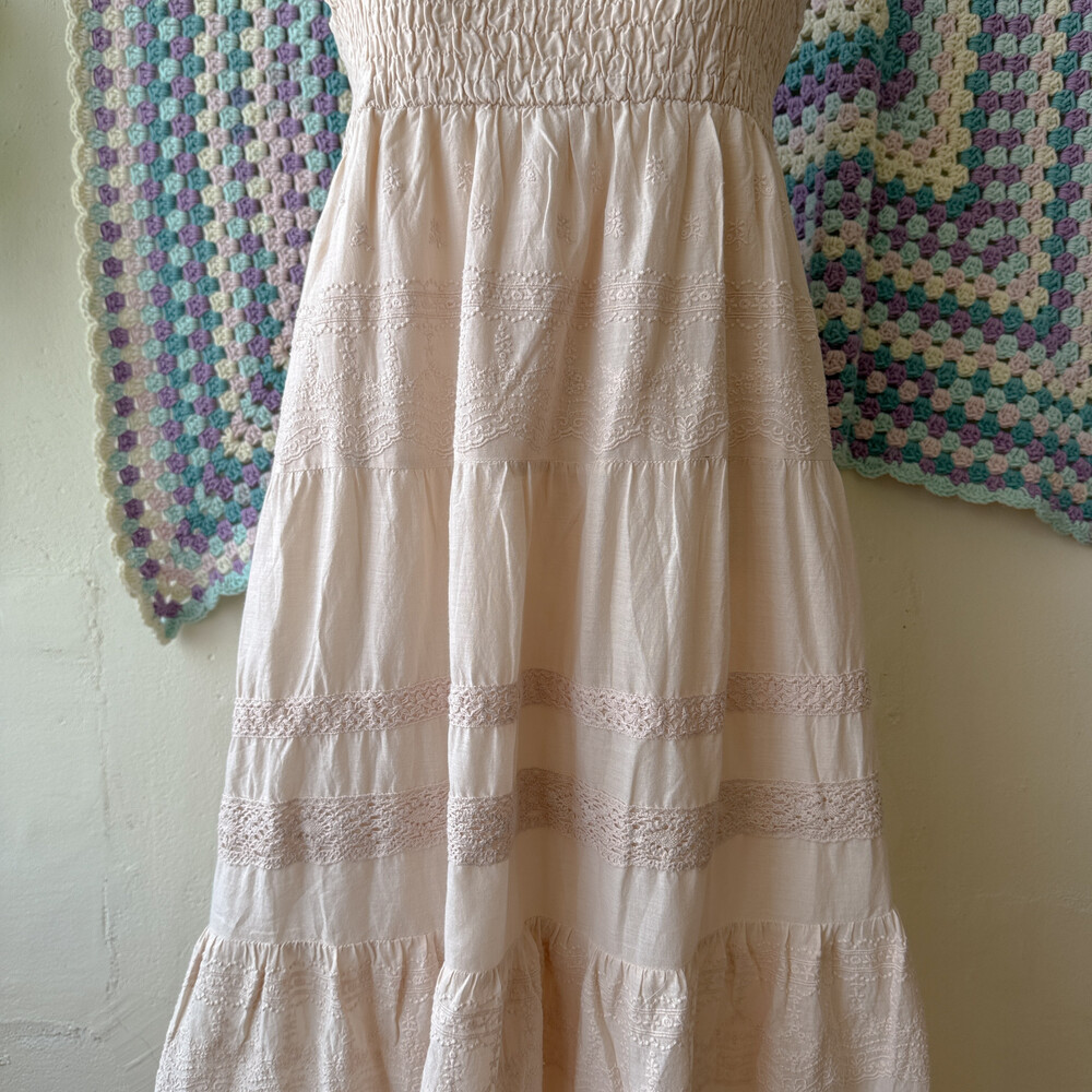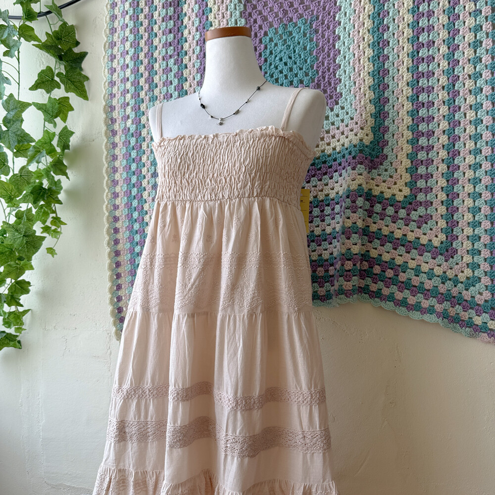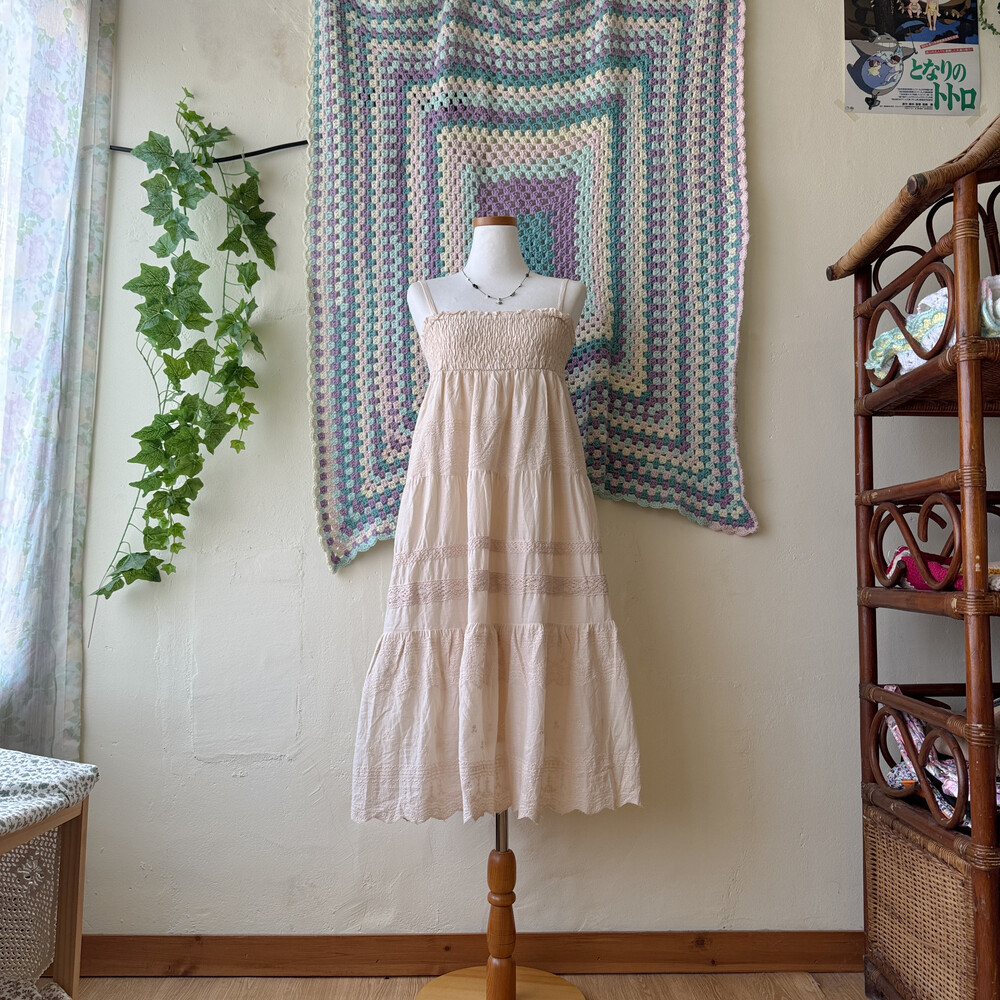 베이지 색감에 아주 뮤트한 핑크가 살짝 섞인 원피스예요