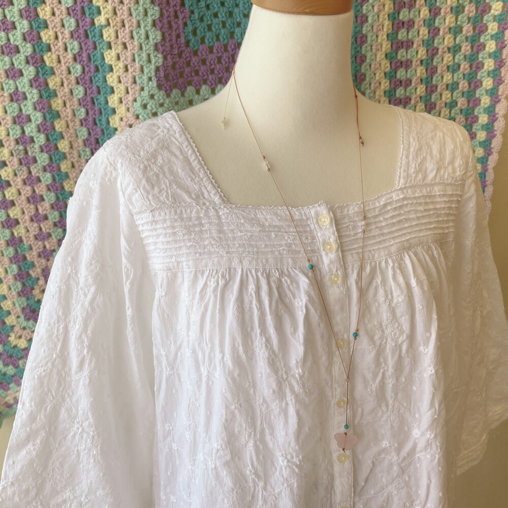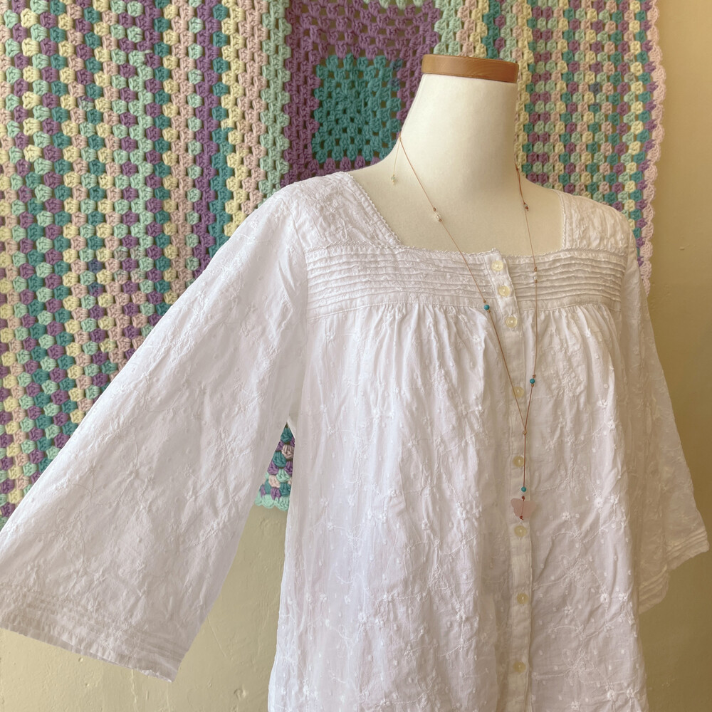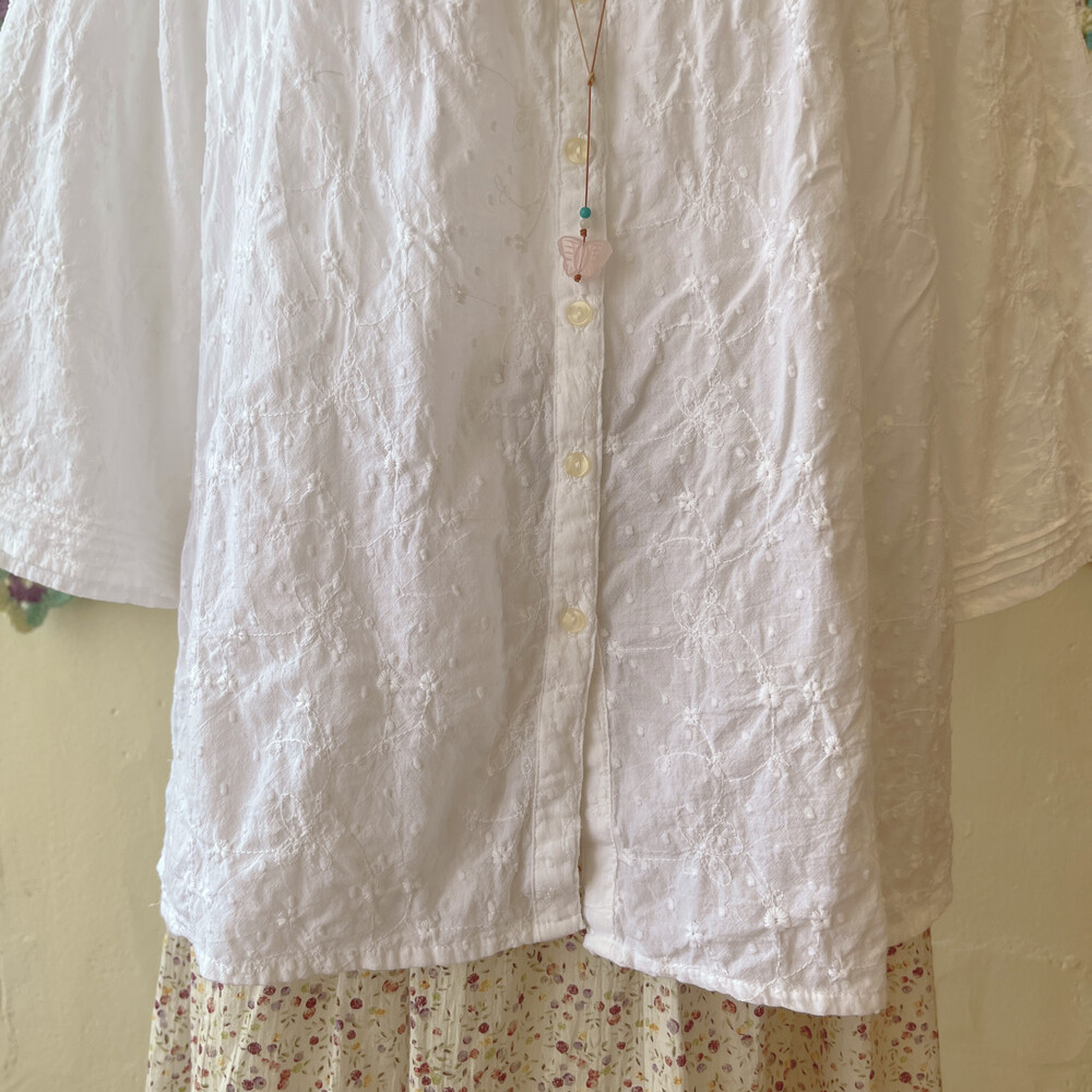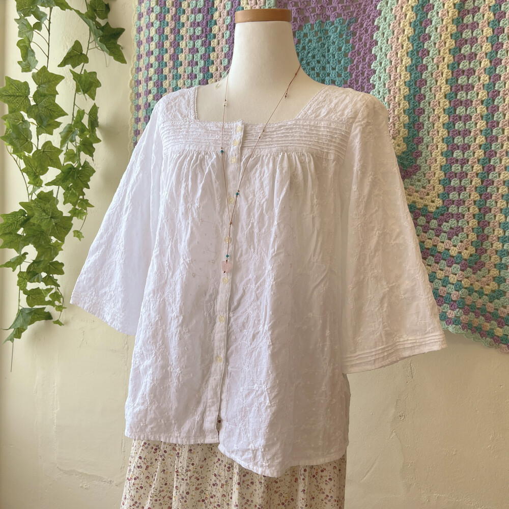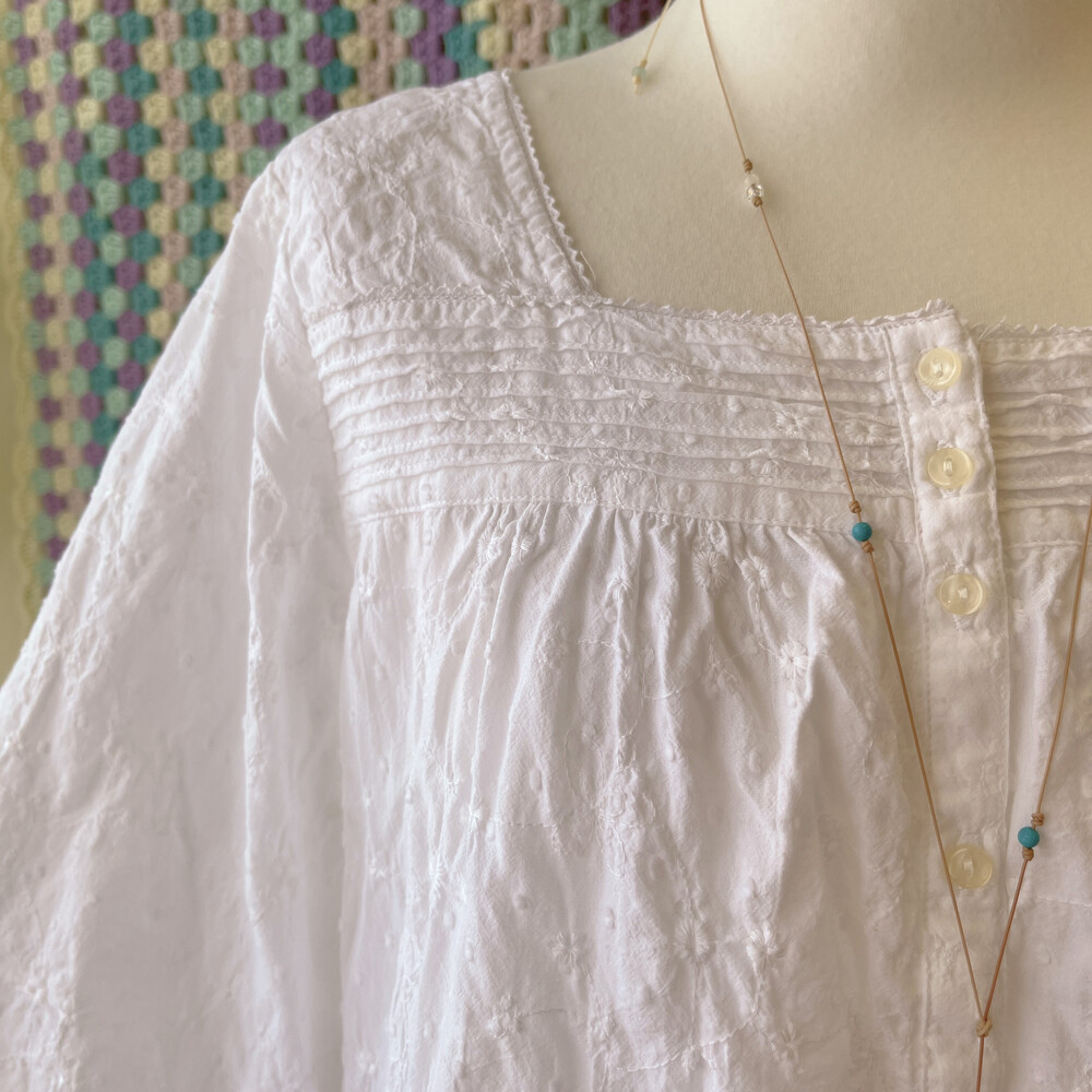 화이트 자수 스퀘어넥 블라우스예요
