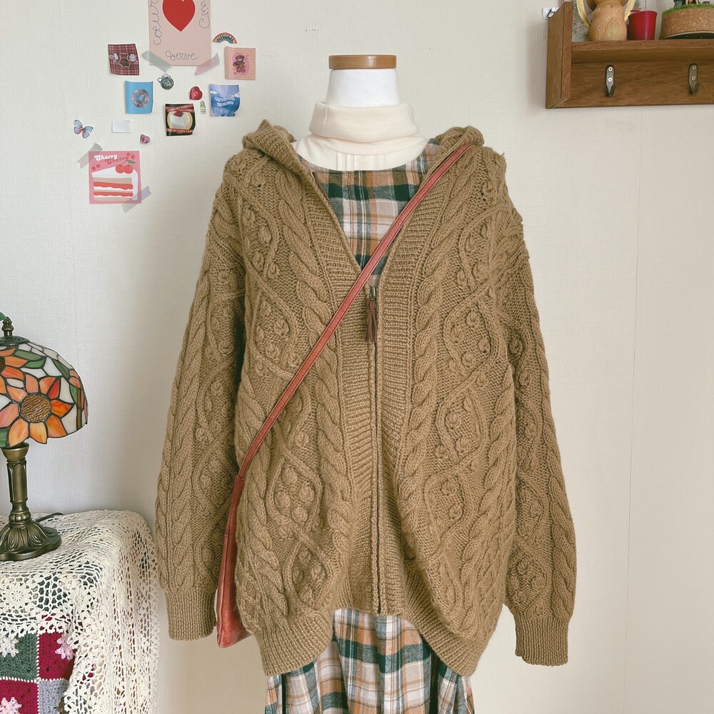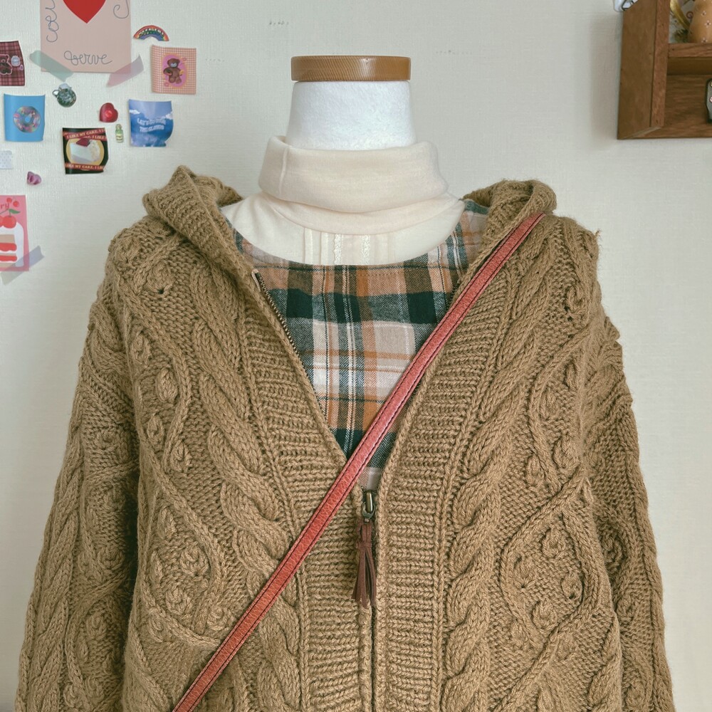olive brown pompom twist hood zipup cd