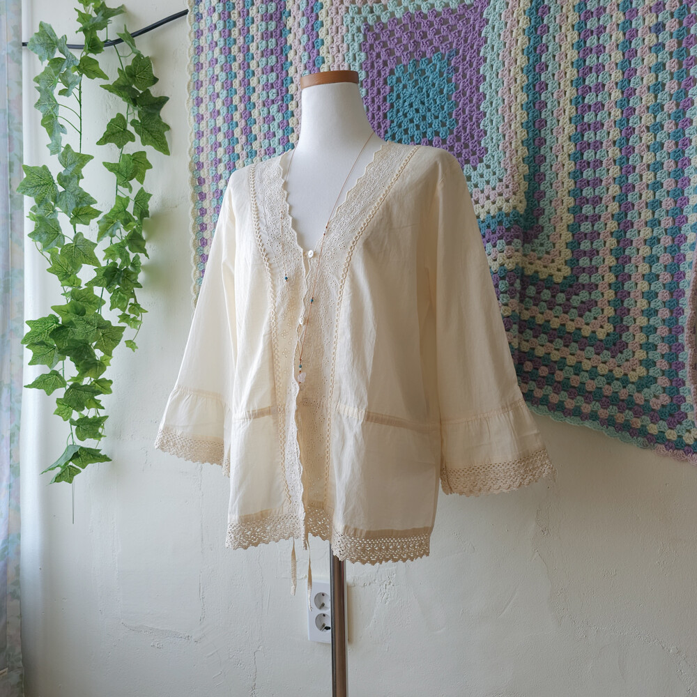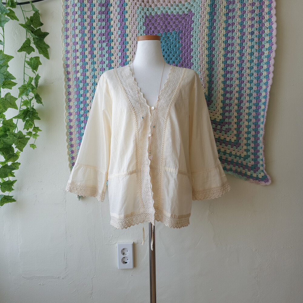 연베이지 진아이보리 색감의 코튼 가디건이에요