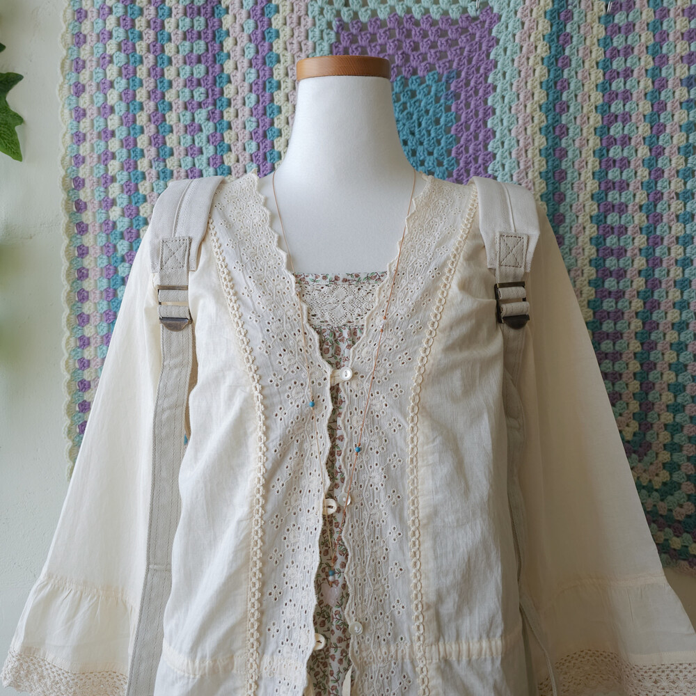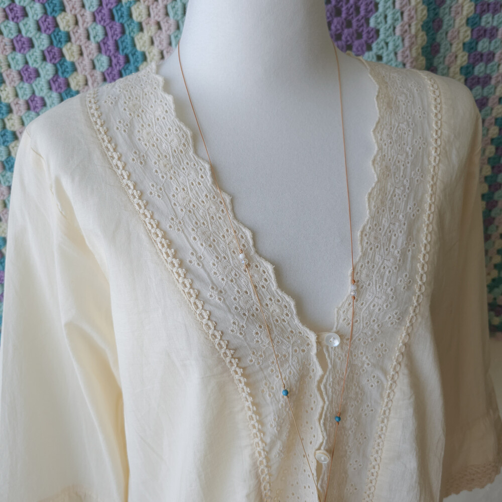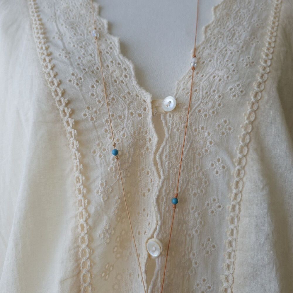 넥라인을 따라 자수 펀칭 포인트가 들어가 있어서