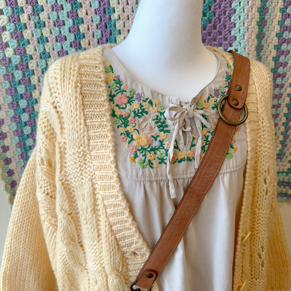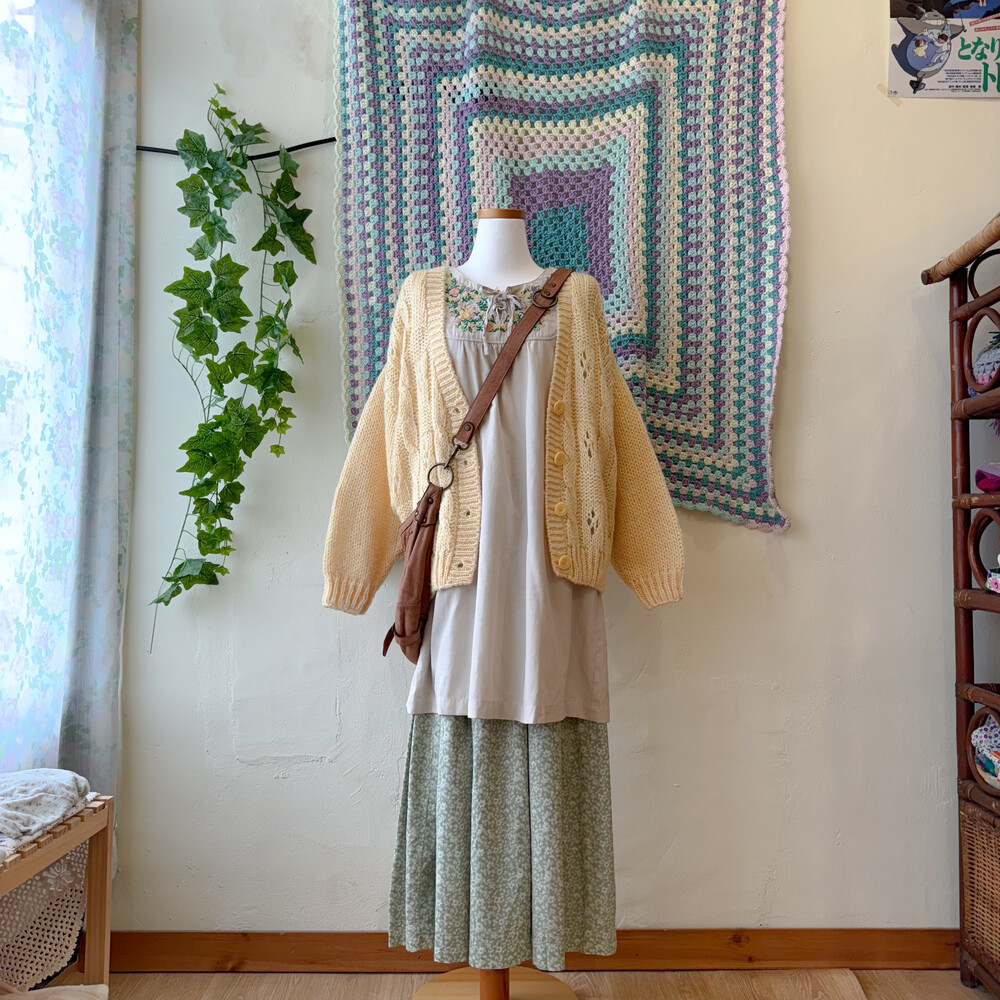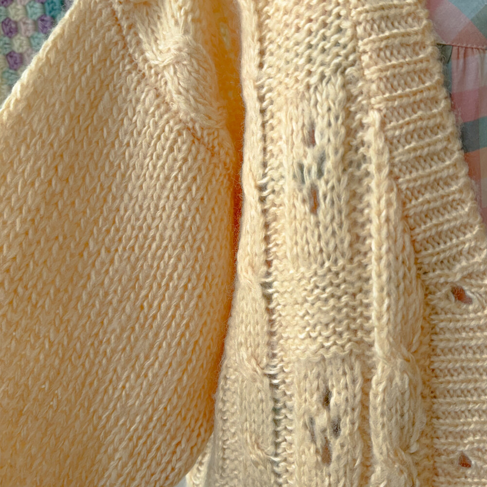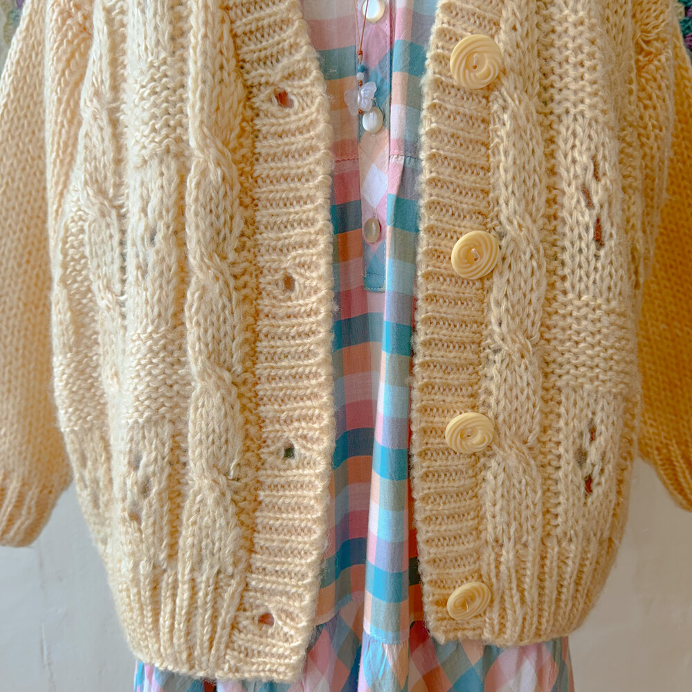 노랑색의 펀칭 오버사이즈 가디건이에요