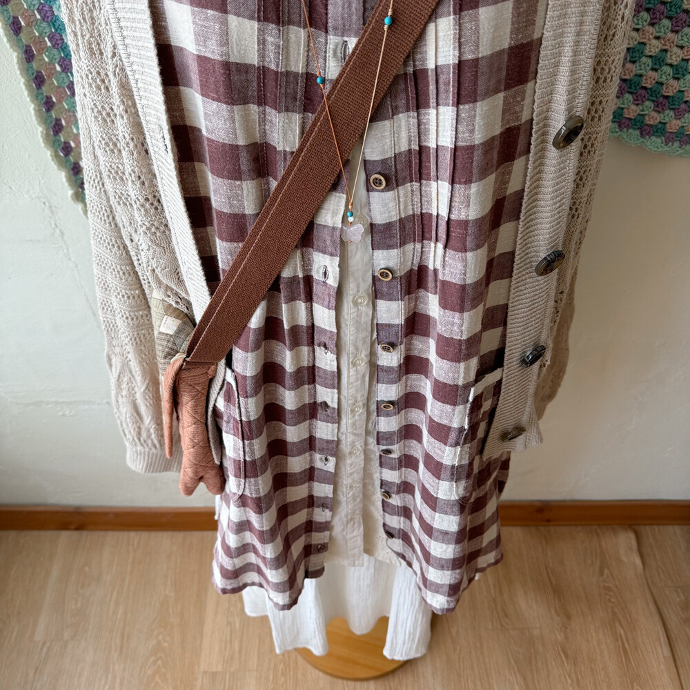 코튼 소재구요, 우드 버튼과 핀턱 포켓 디자인 때문에