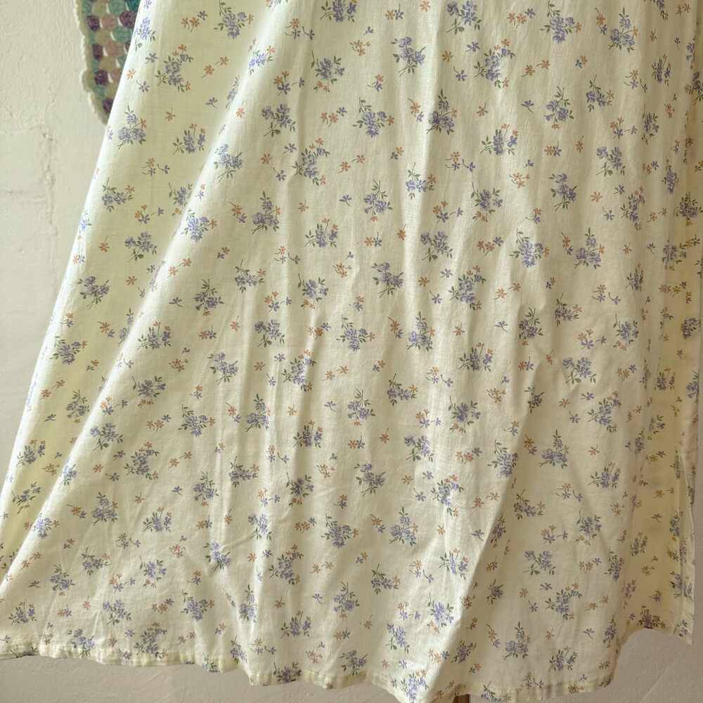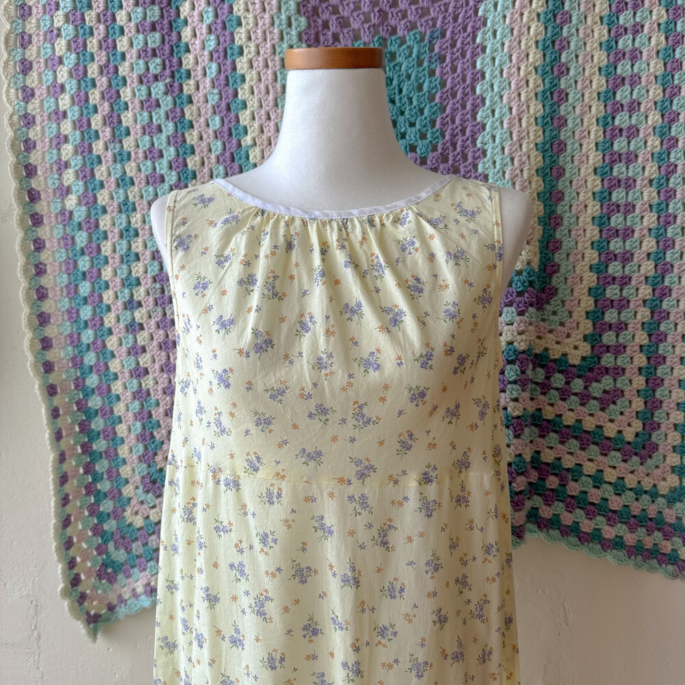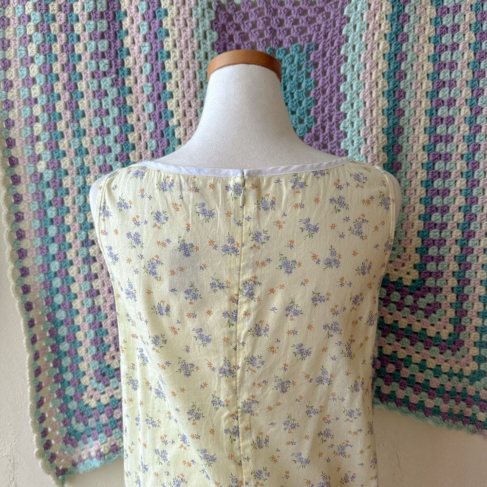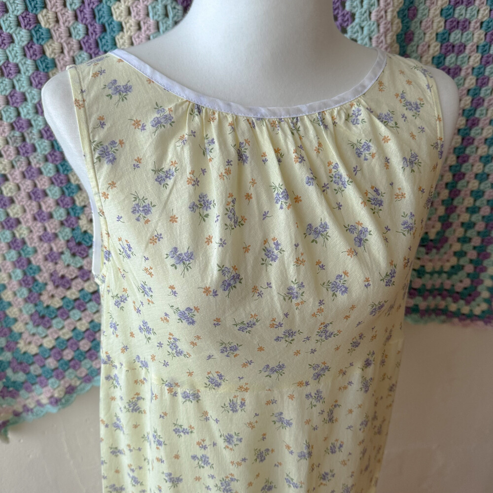 연노랑 색감의 잔꽃 민소매 원피스예요