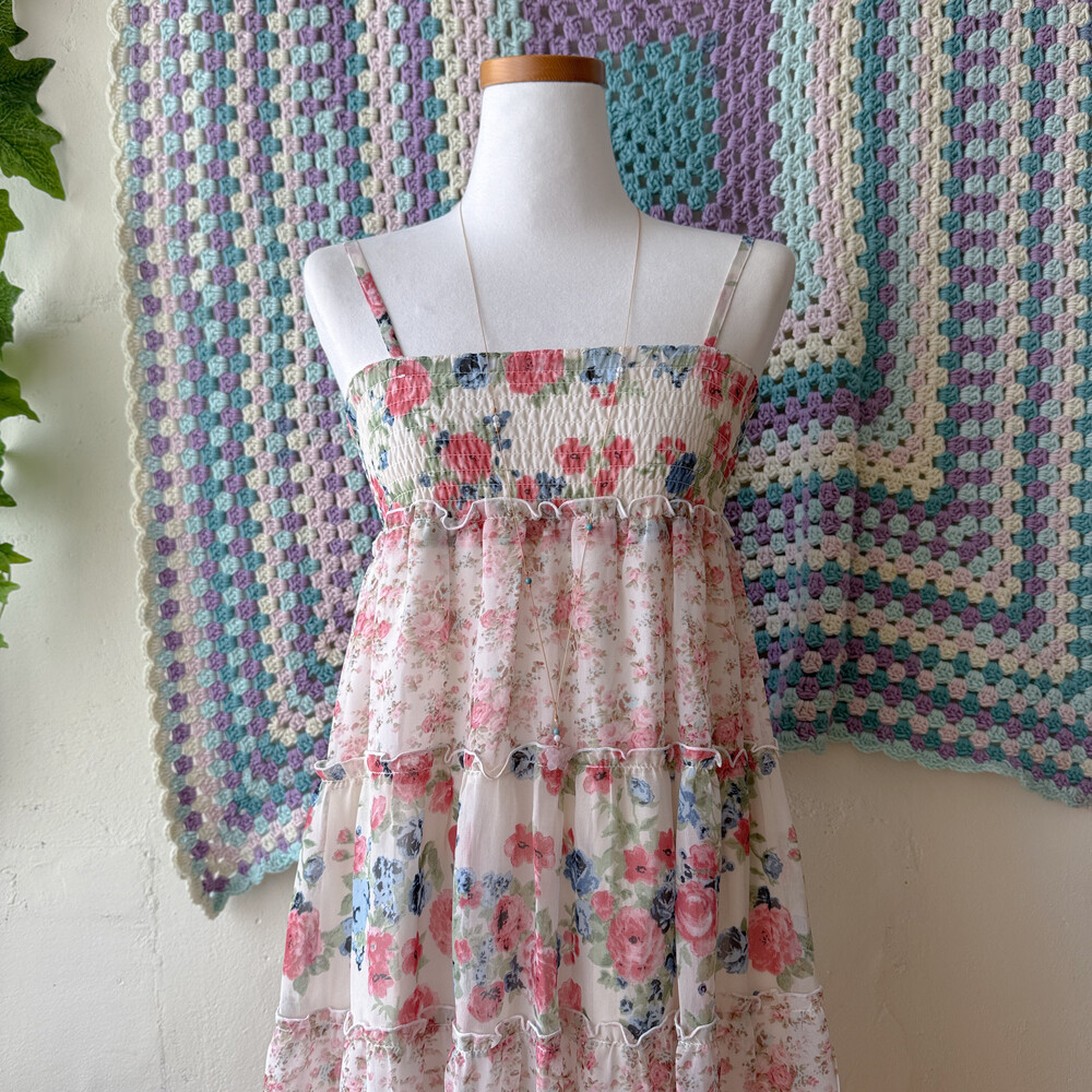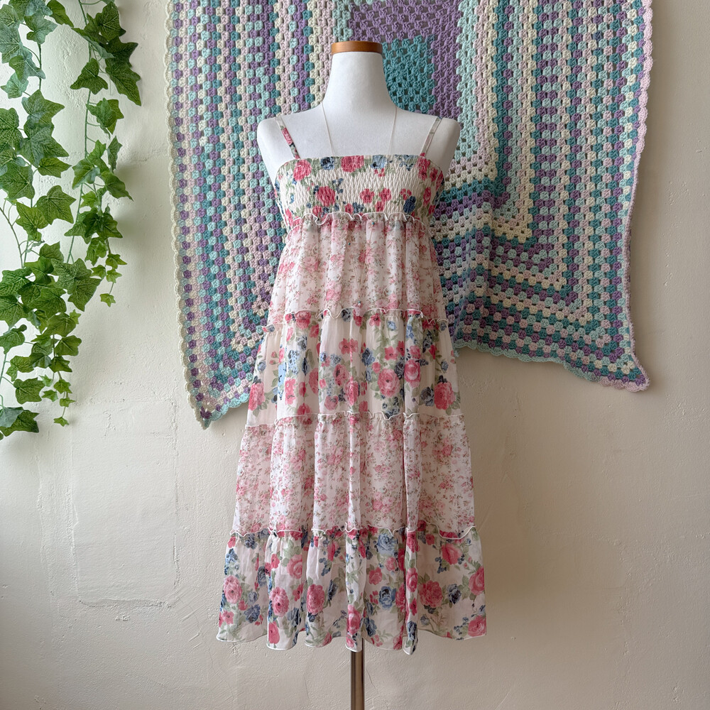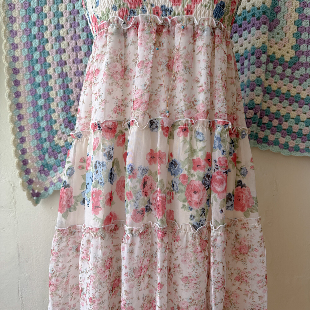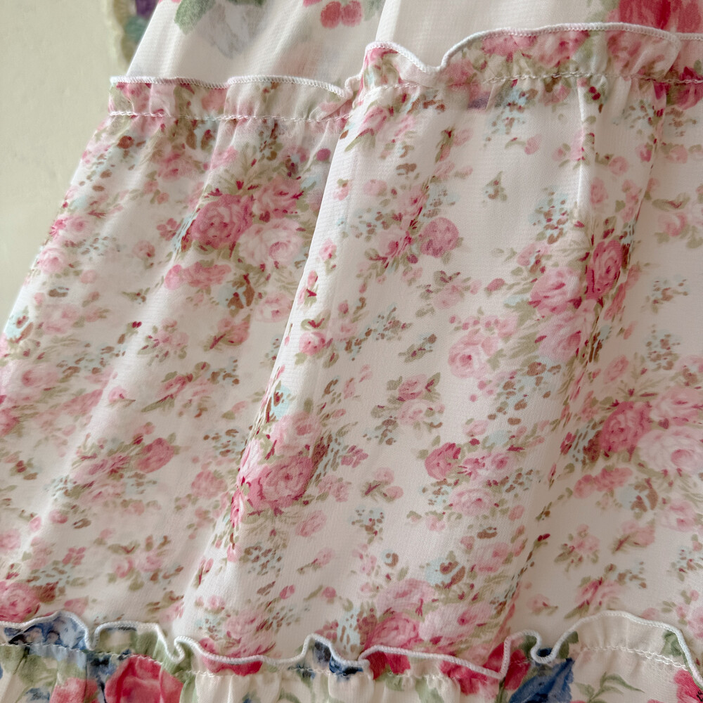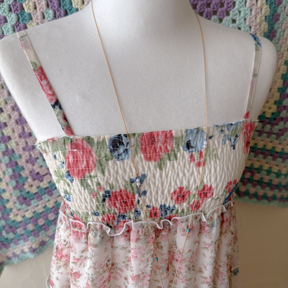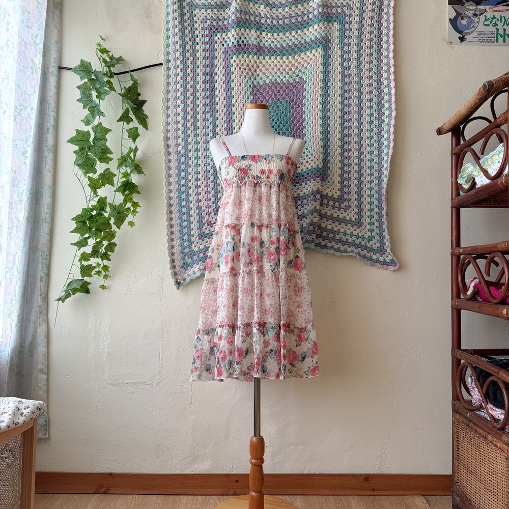 꽃무늬 쉬폰 패치 미니 끈원피스예요