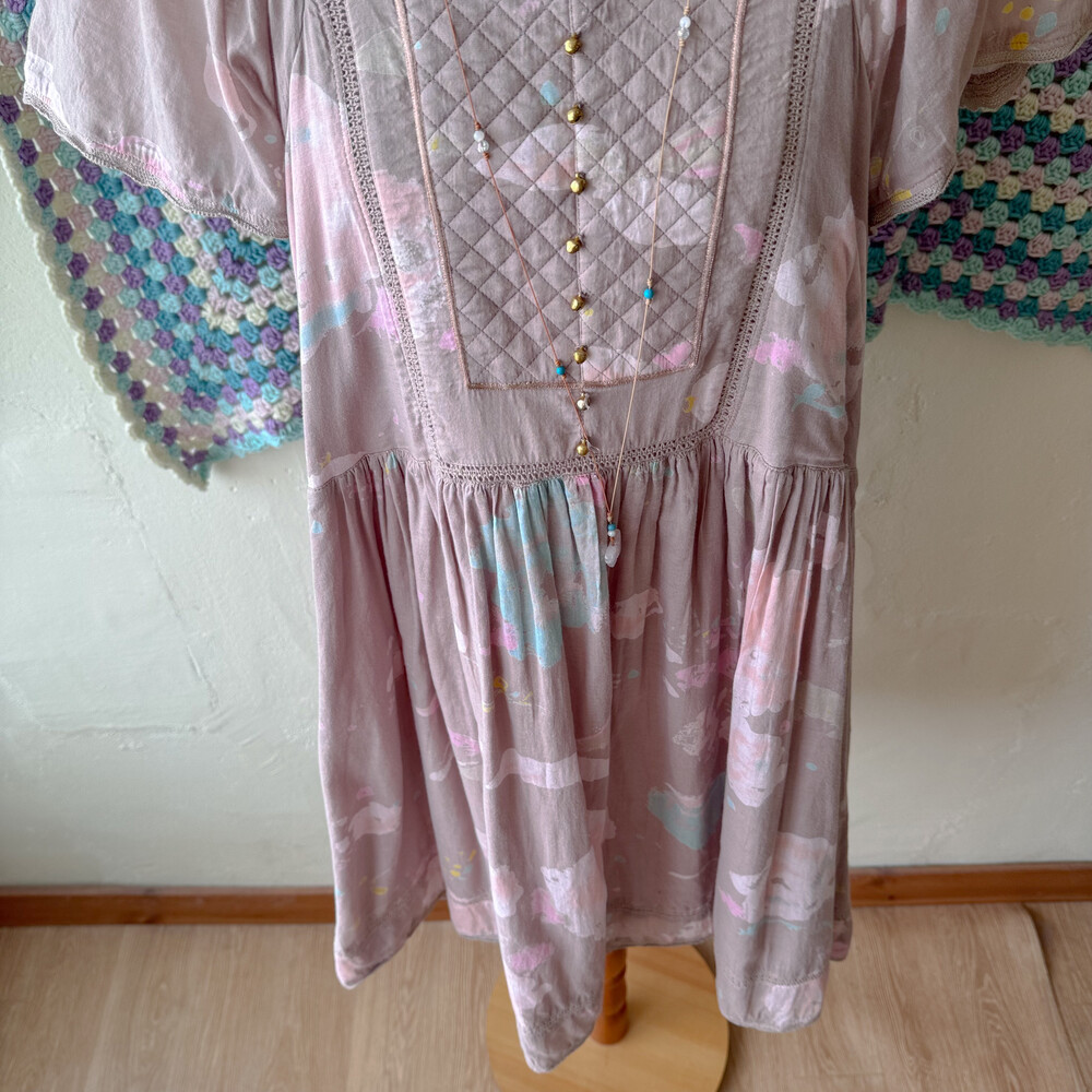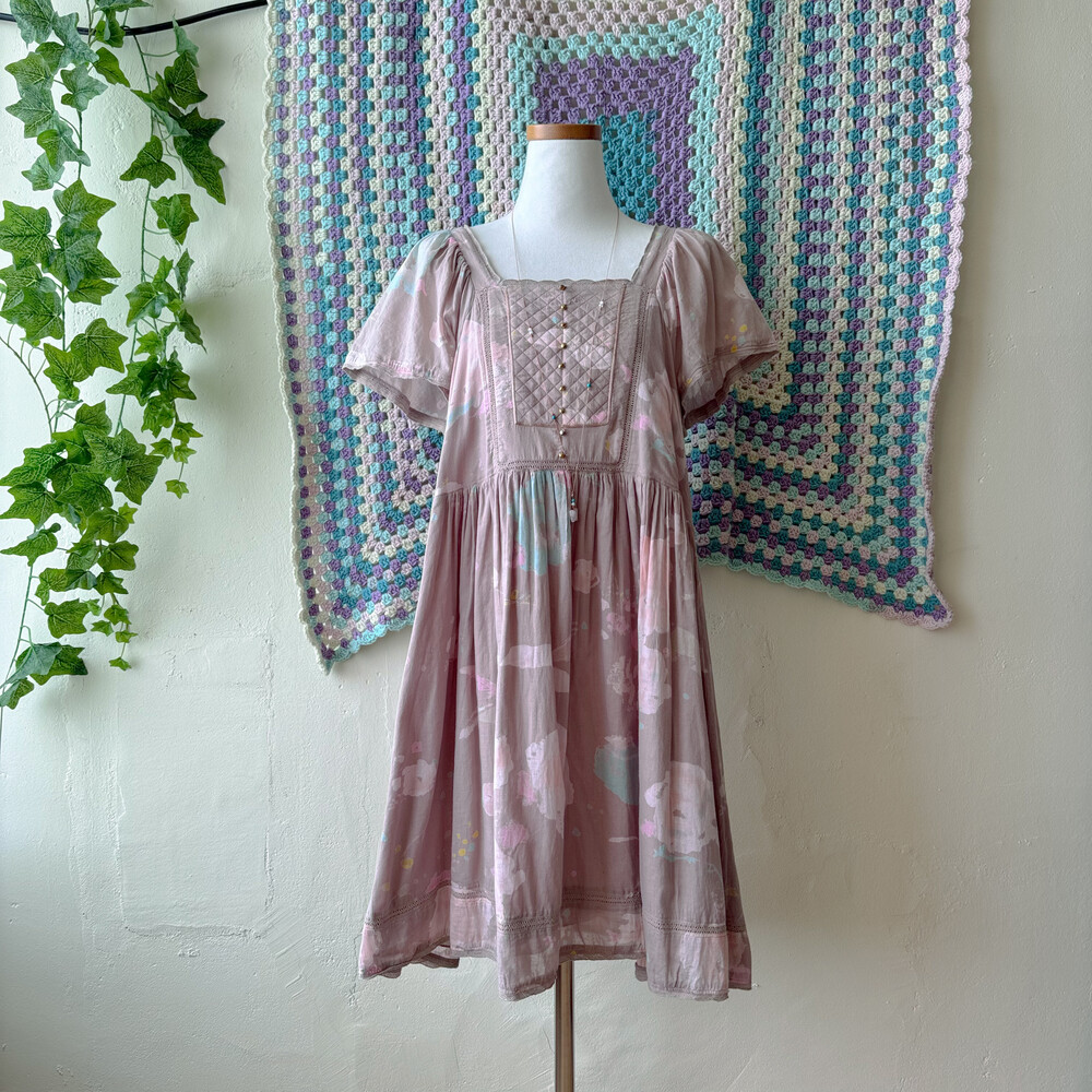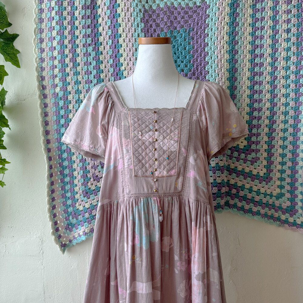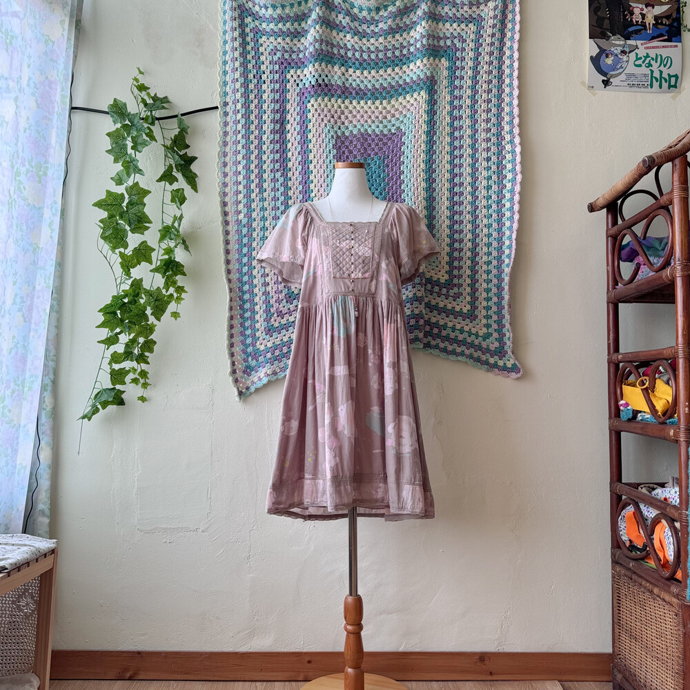 뮤트한 팥죽색 바탕의 코튼 원피스예요