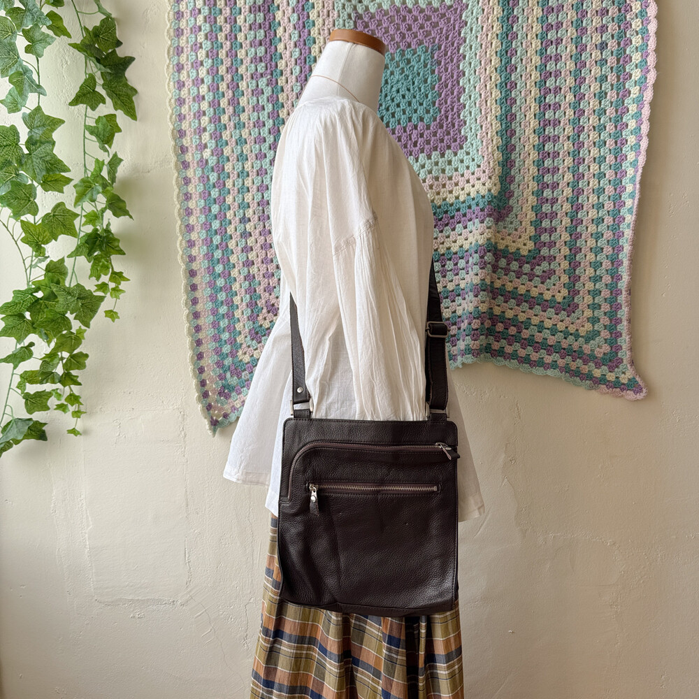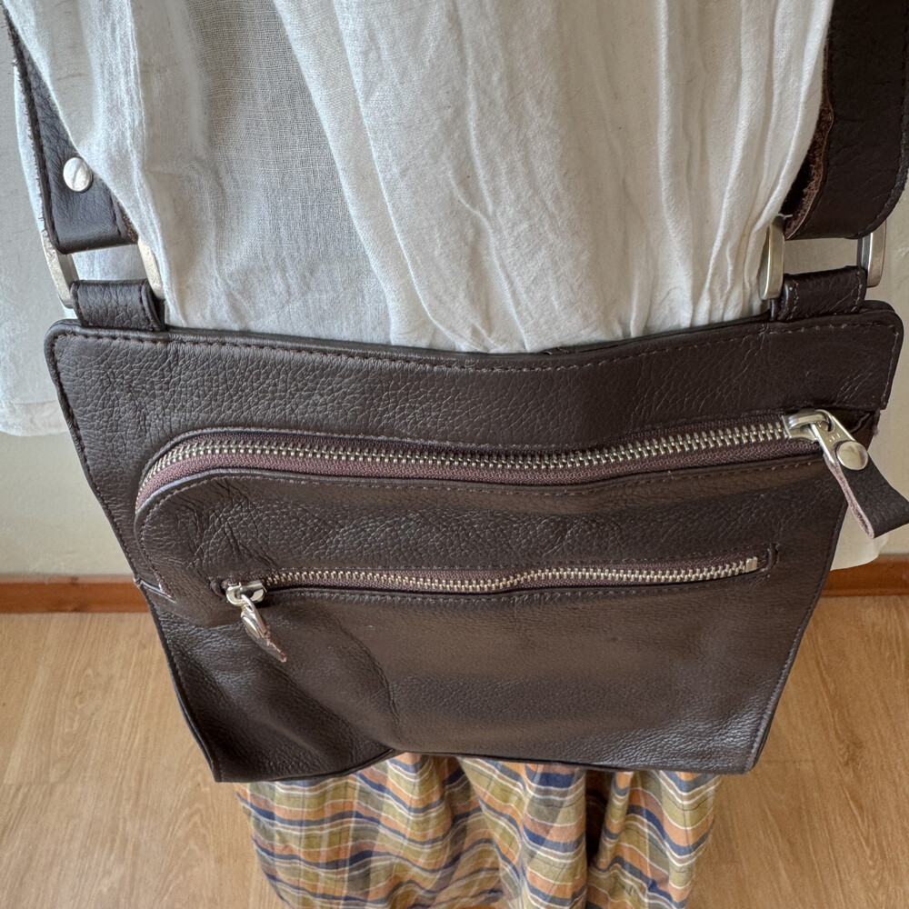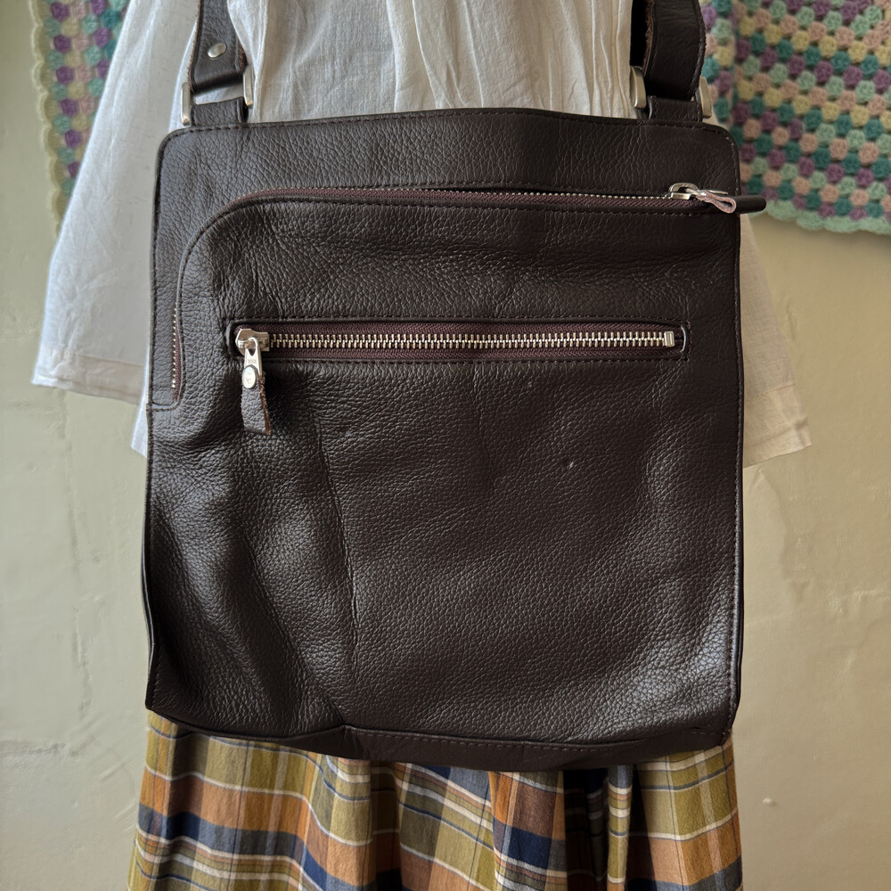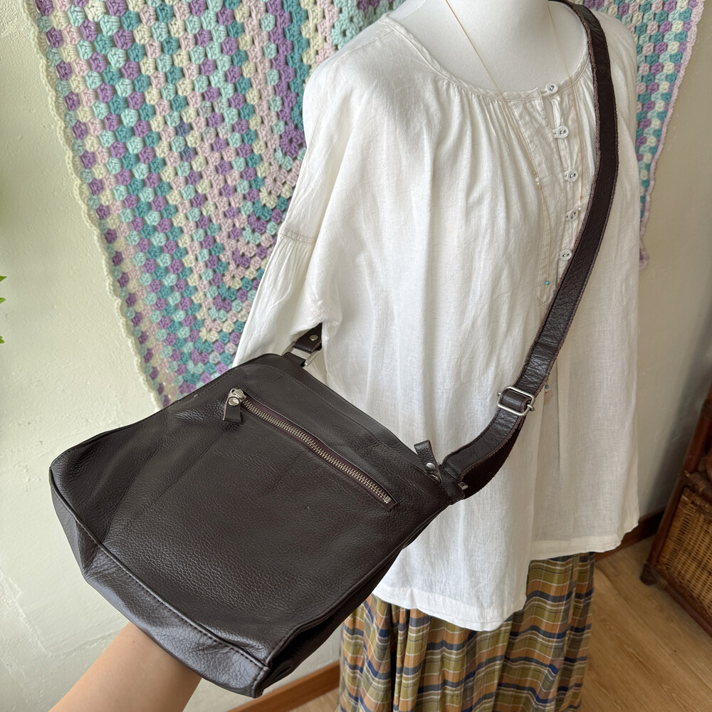 dark chocolate brown flat cross bag