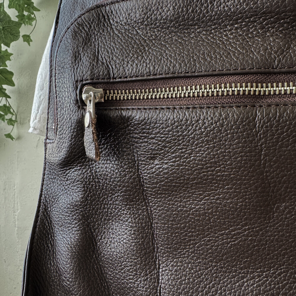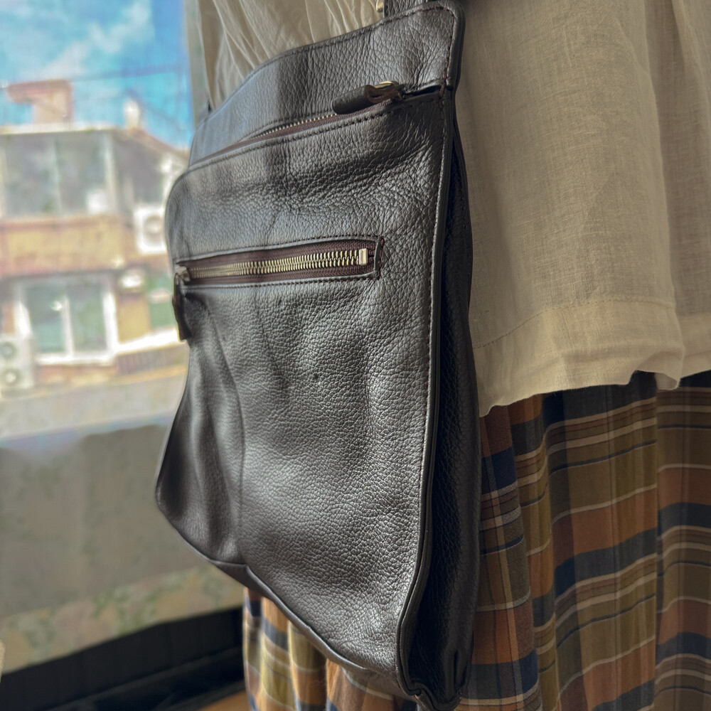 다크초콜릿 색감의 가죽 크로스백이에요