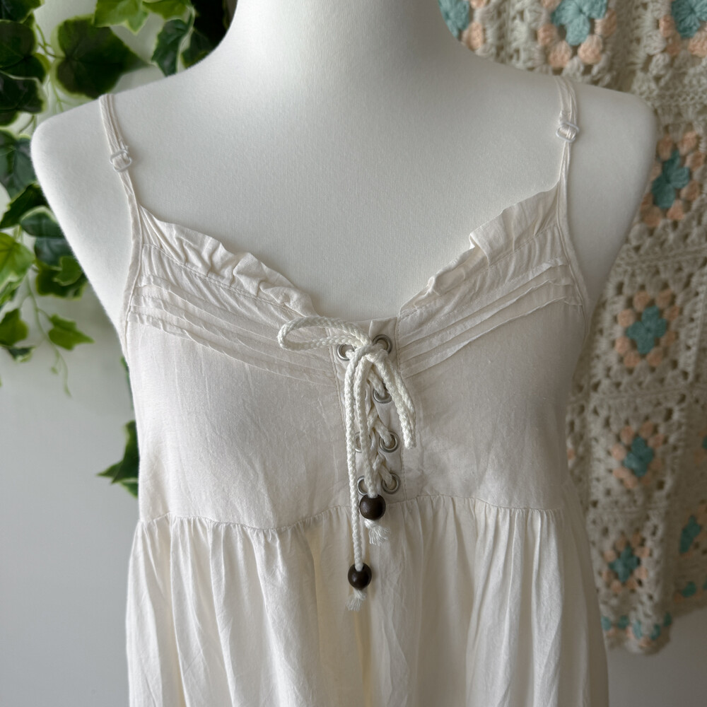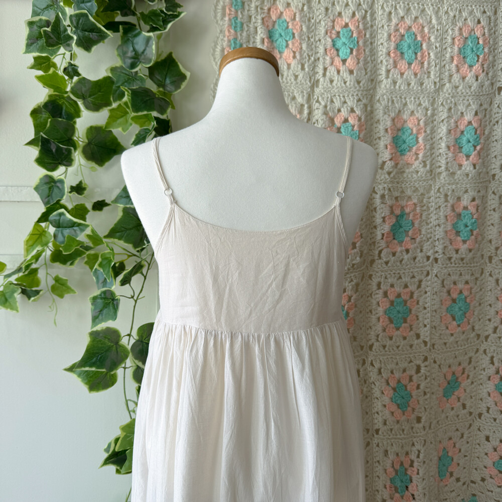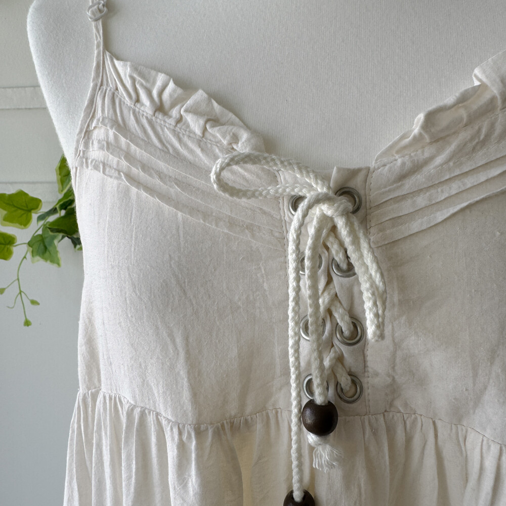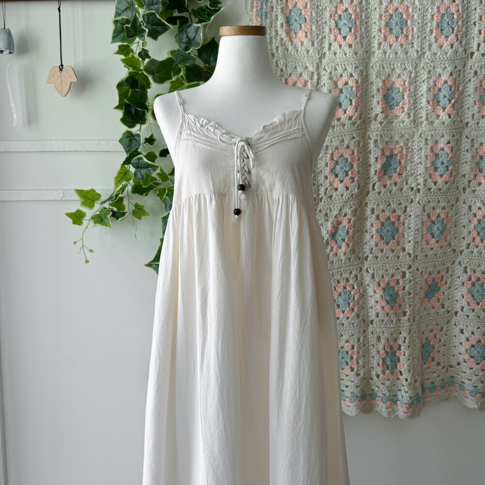 아이보리 색감의 코튼 아일렛 끈원피스예요