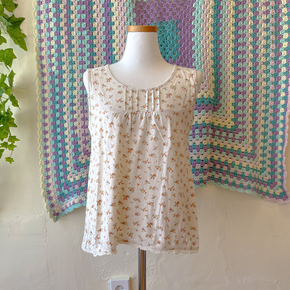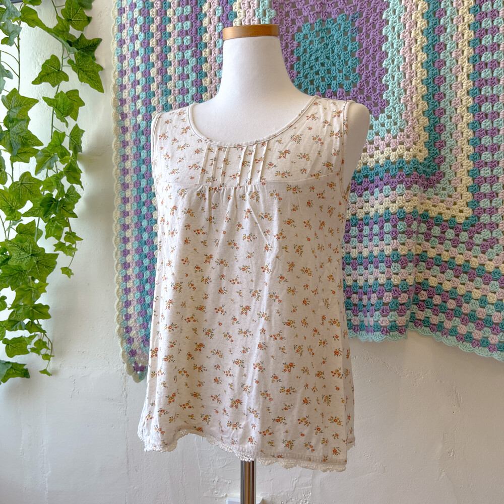 살구색 꽃무늬 핀턱 이너 탑이에요