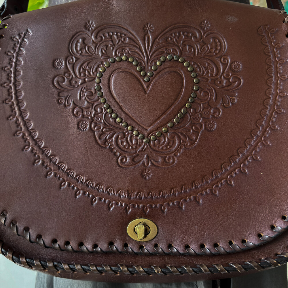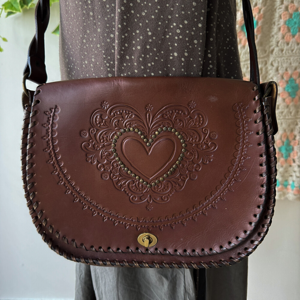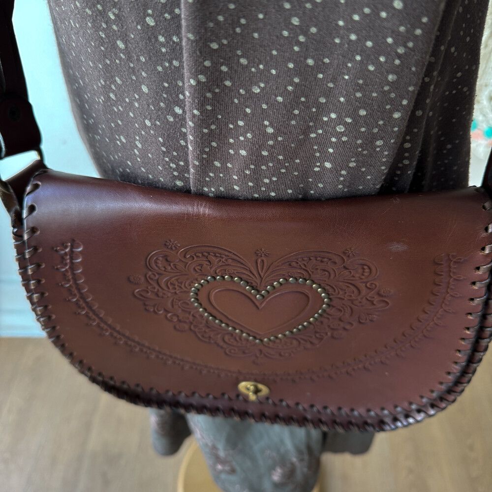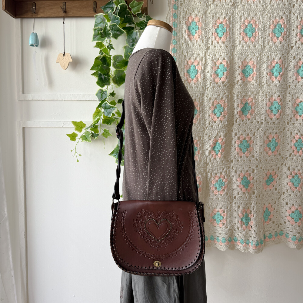 heart point brown twist strap cross bag