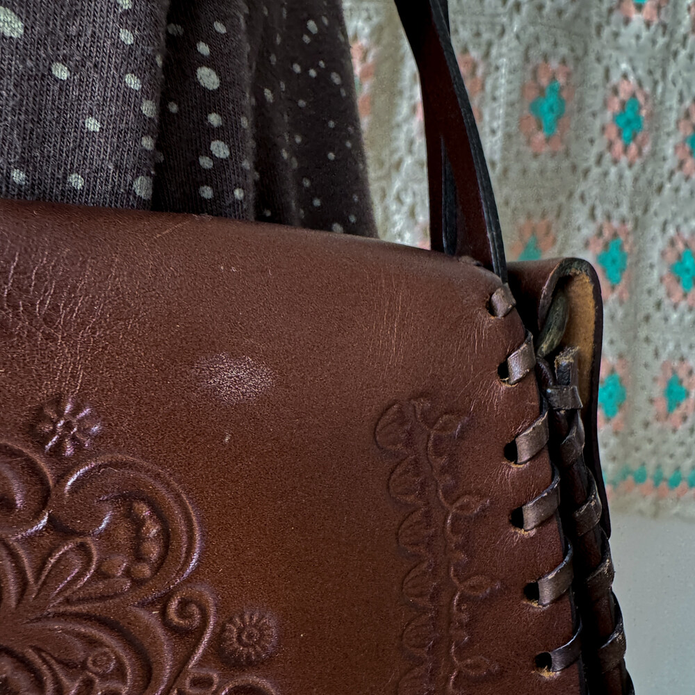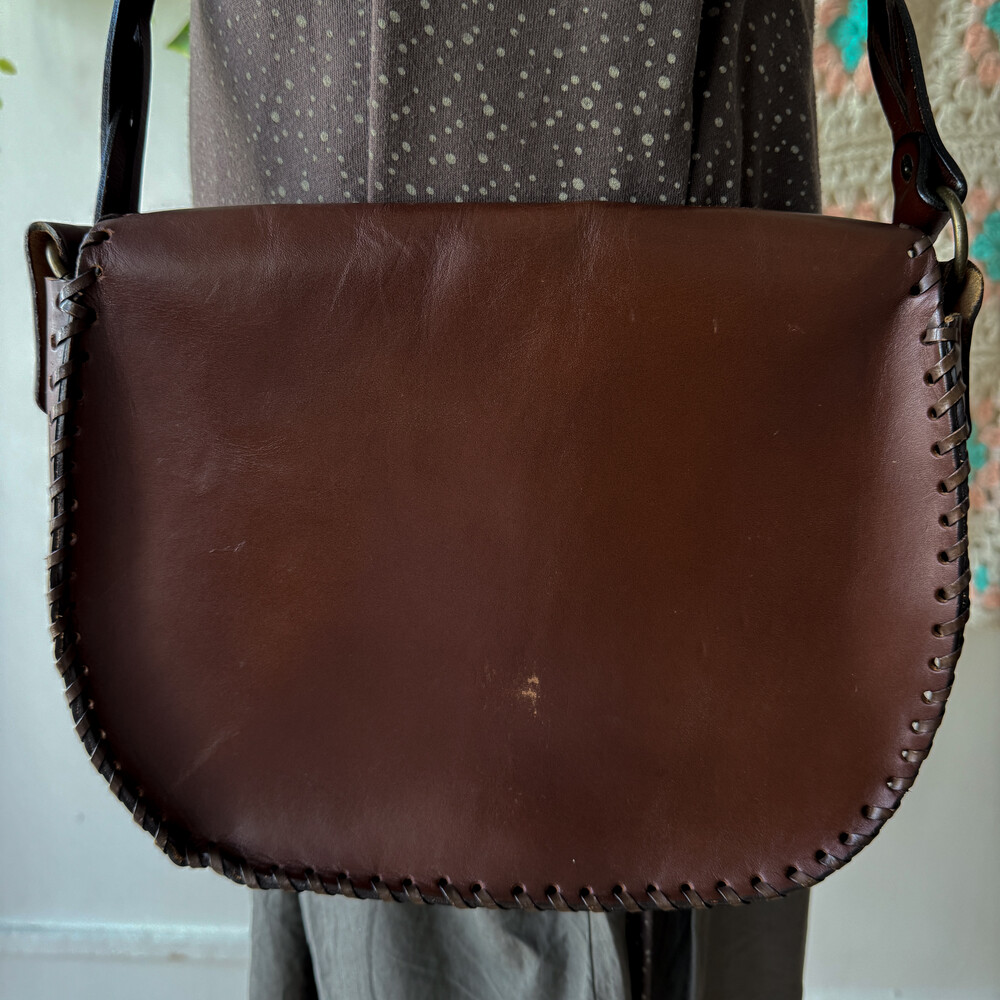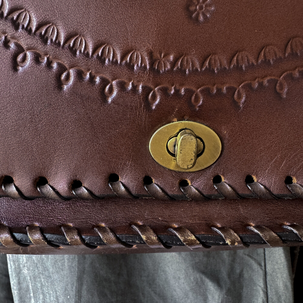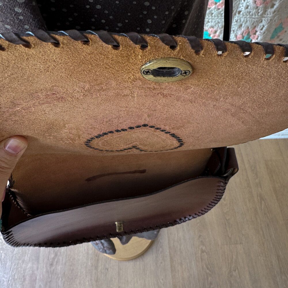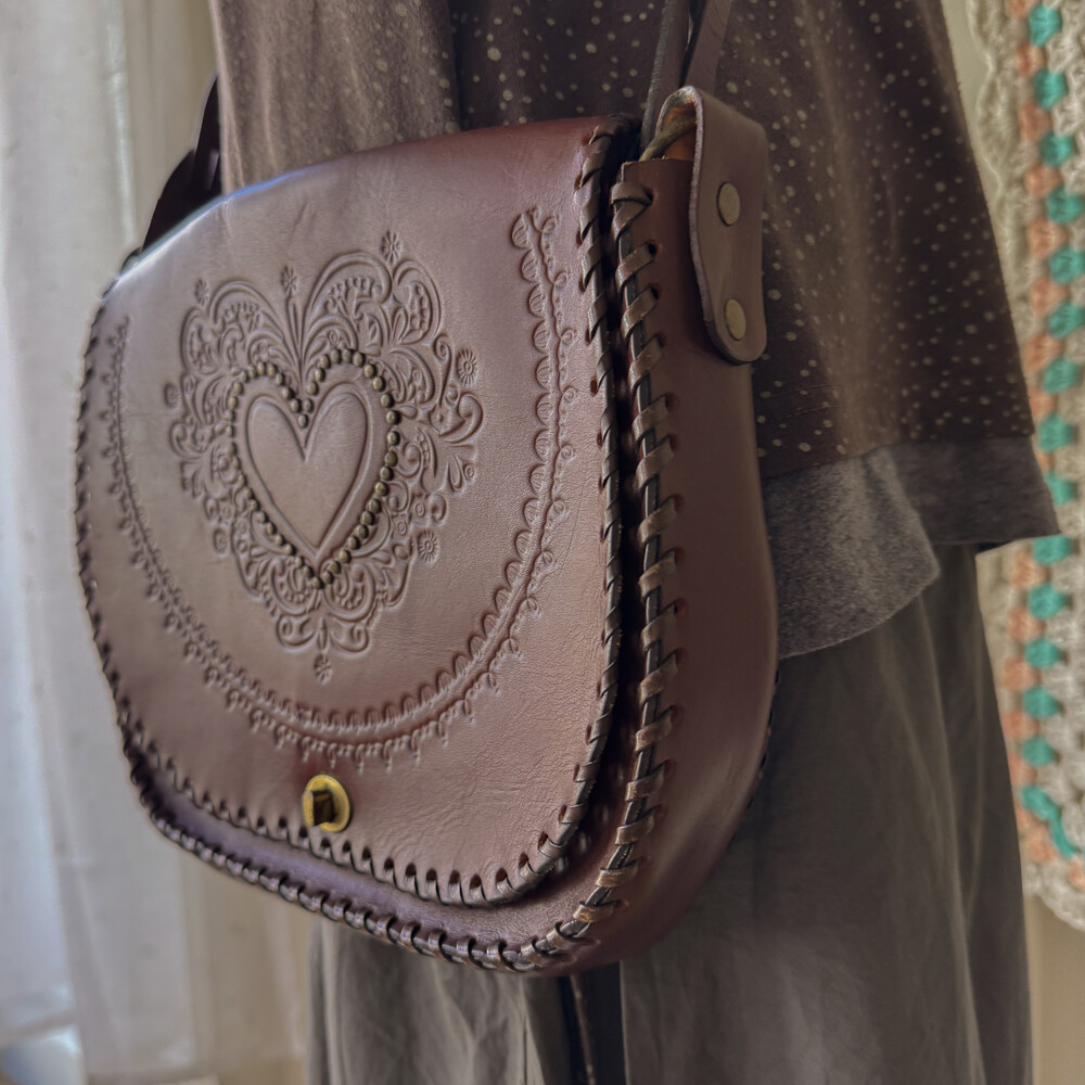 heart point brown twist strap cross bag