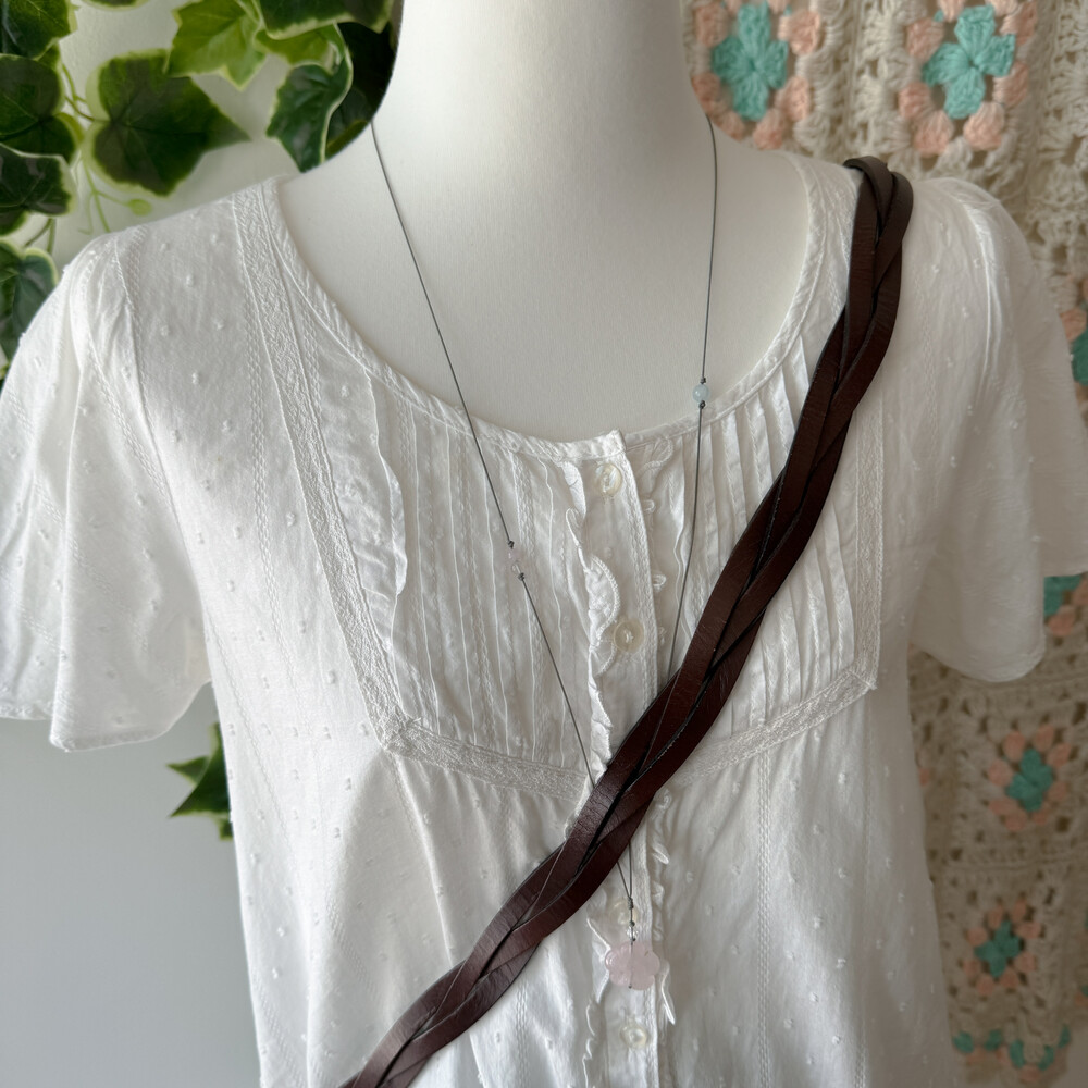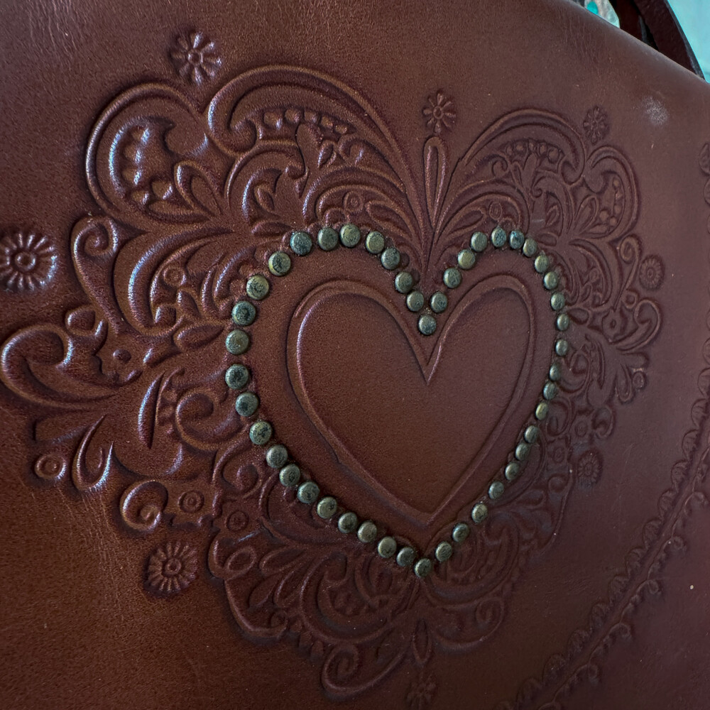 하트 모양이 징으로 박혀있고 꽈배기 스트랩 디자인이라