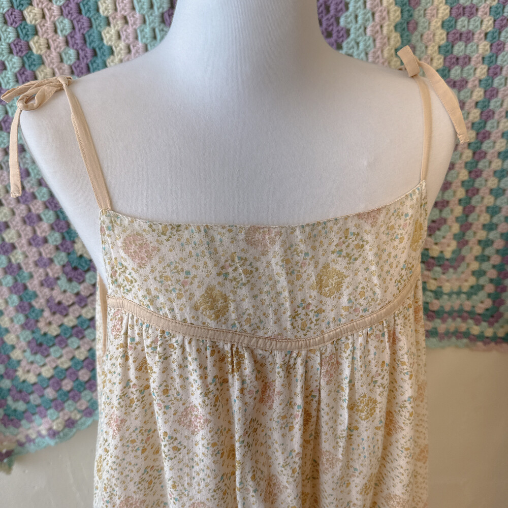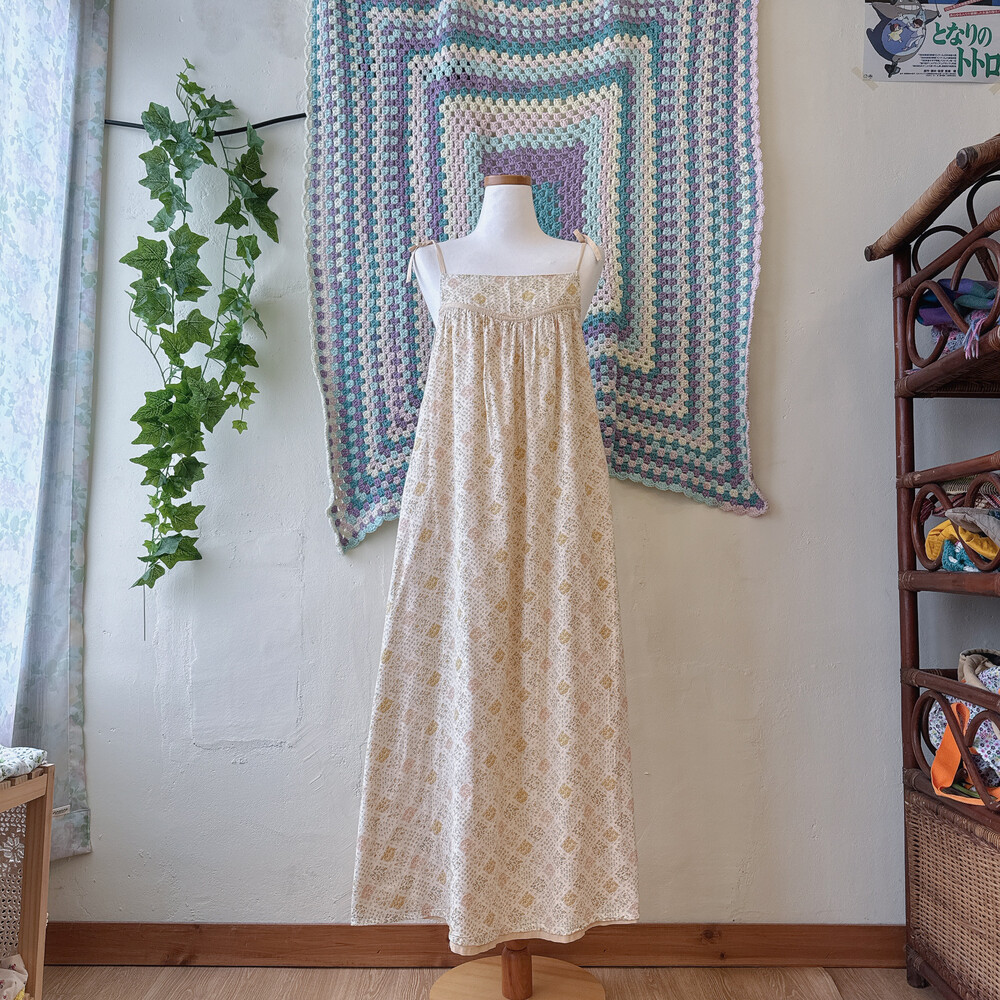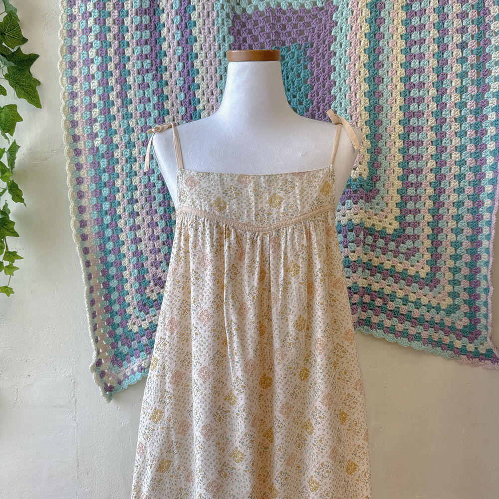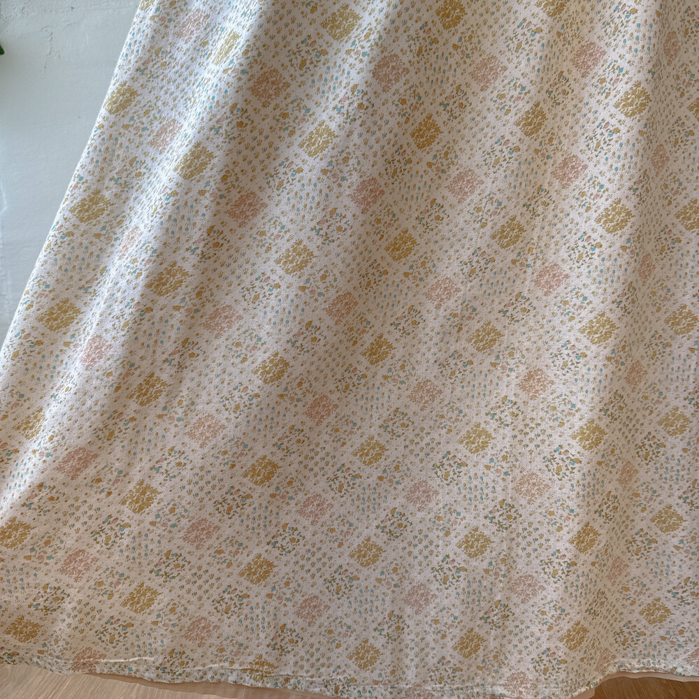 베이지 색감 베이스의 잔꽃무늬 원피스예요