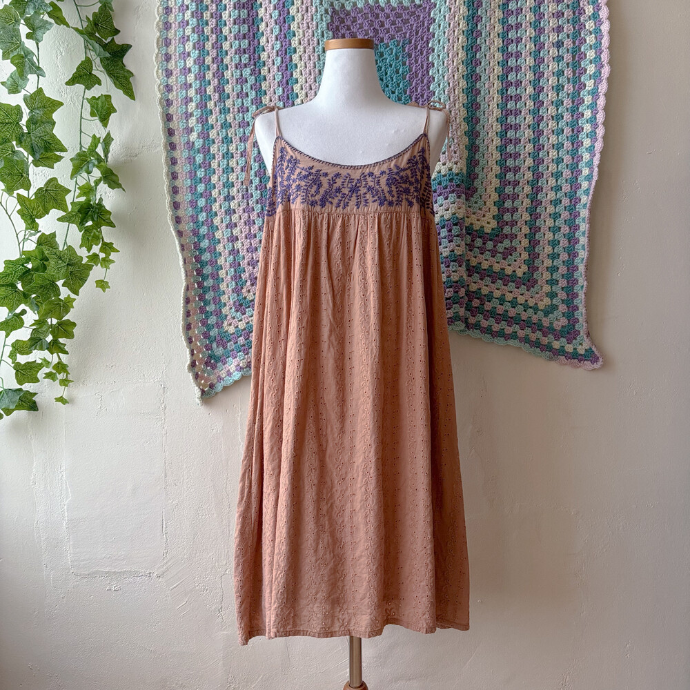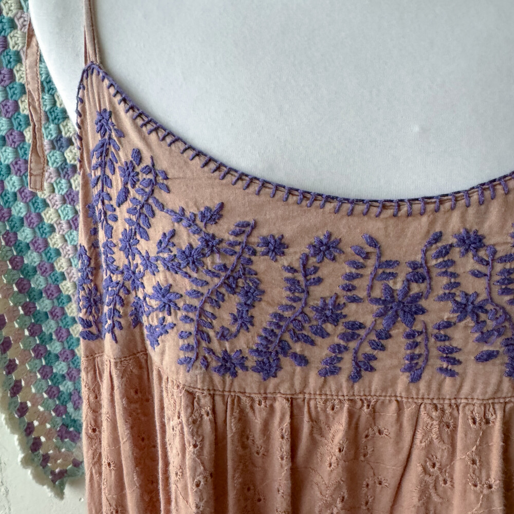 전체적으로 자수가 가득 들어가 있고 가슴에 보라색 자수 포인트가 들어간