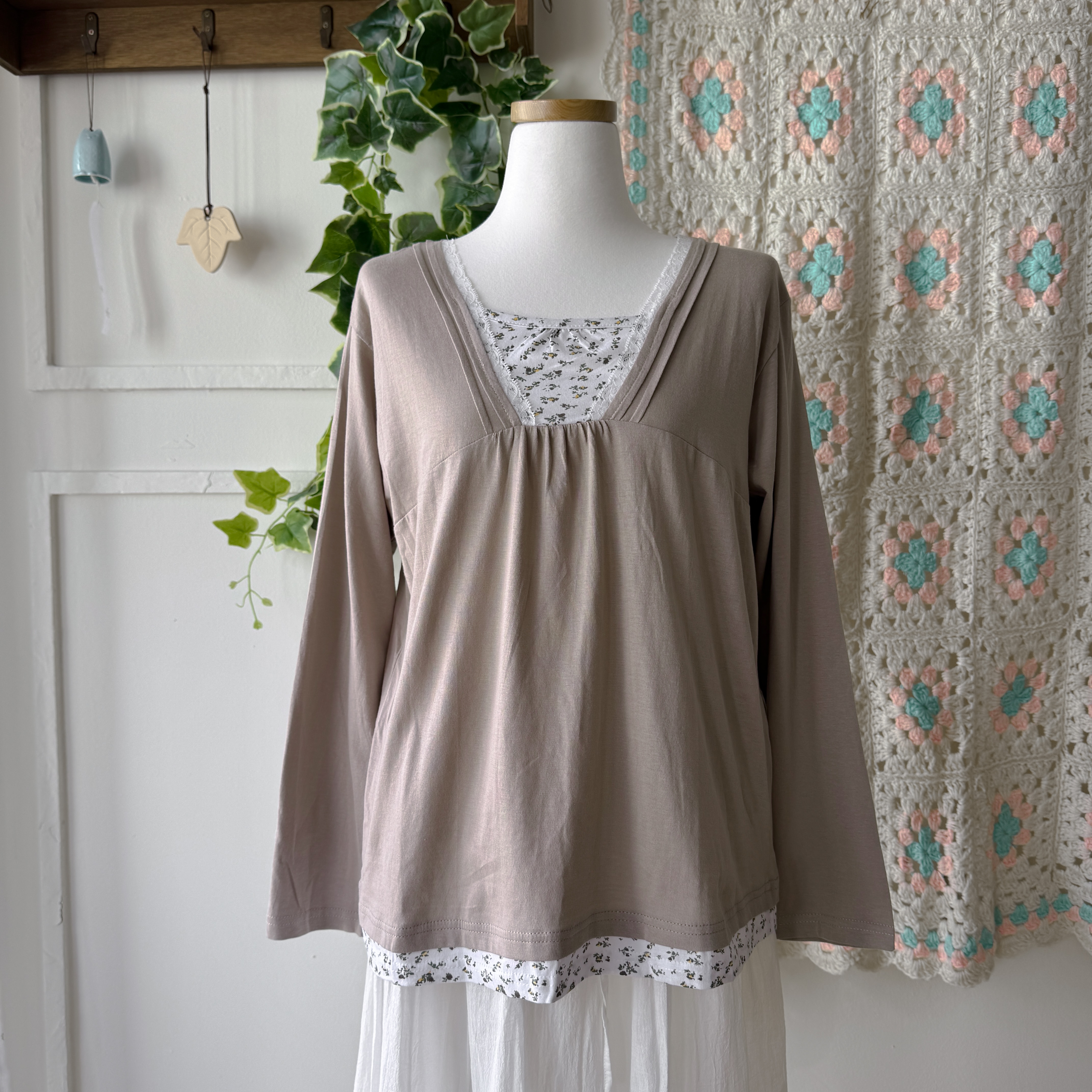 light beige mini flower layered top
