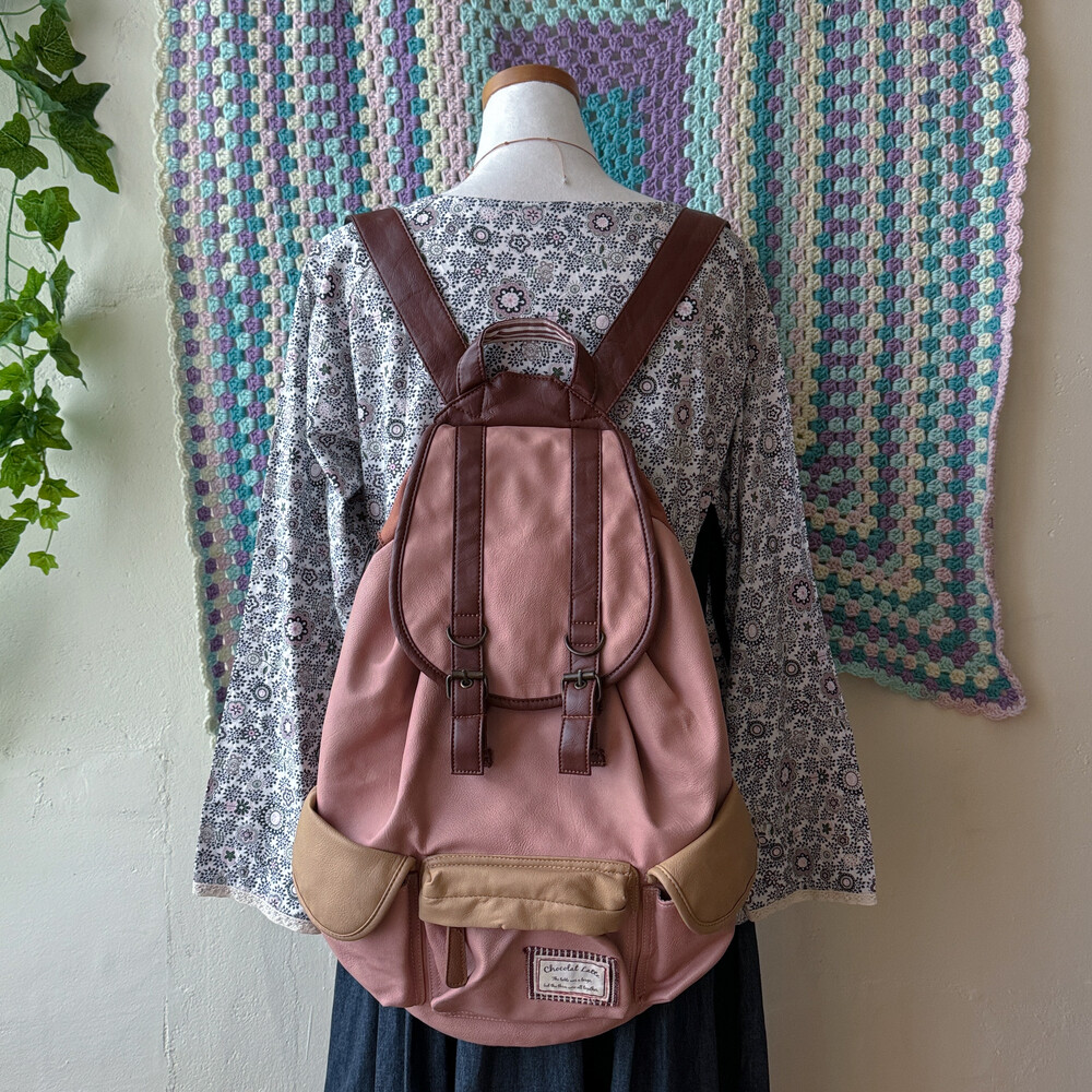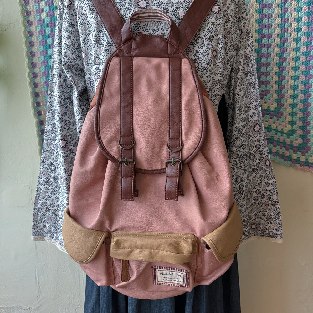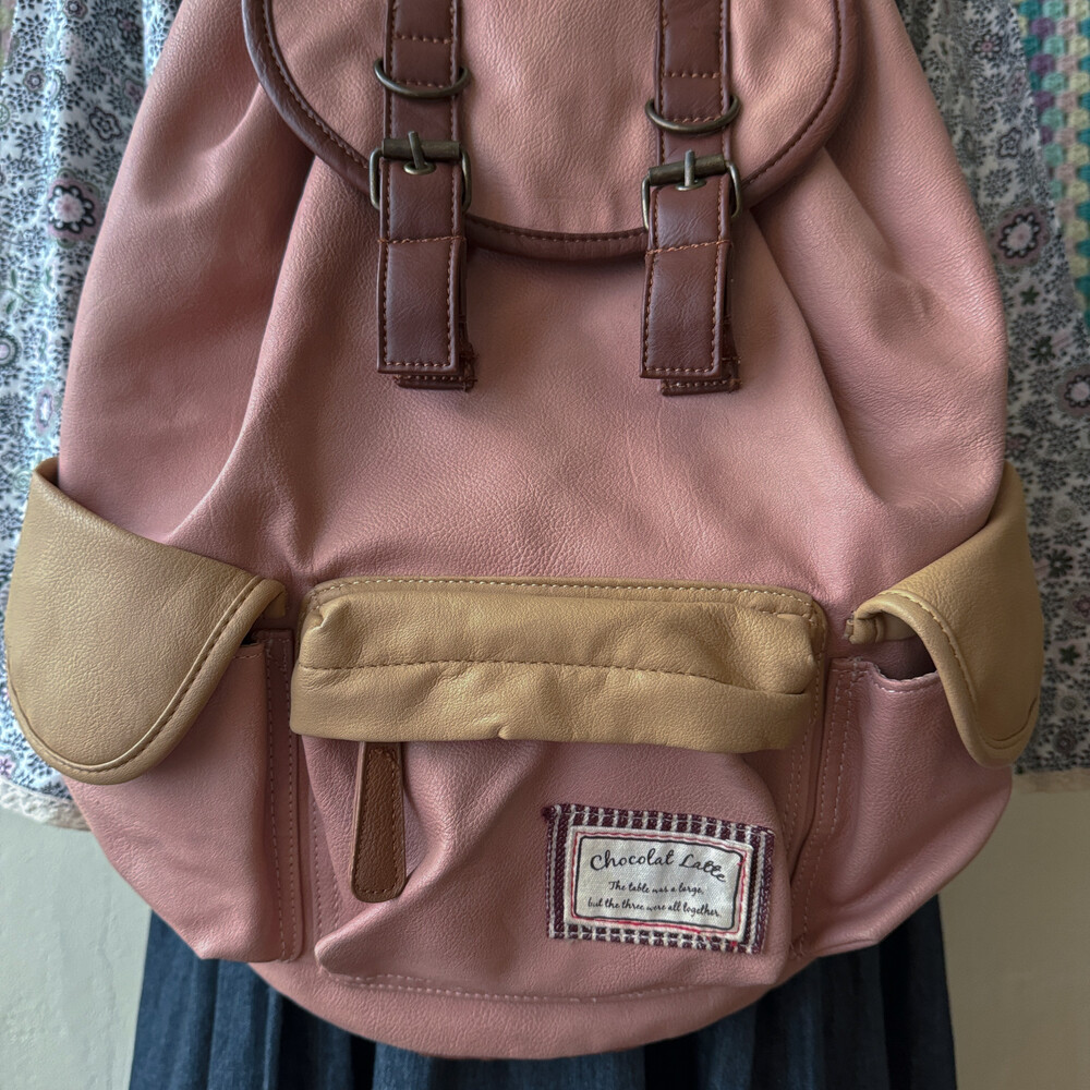 indie pink&brown 3 pocket backpack