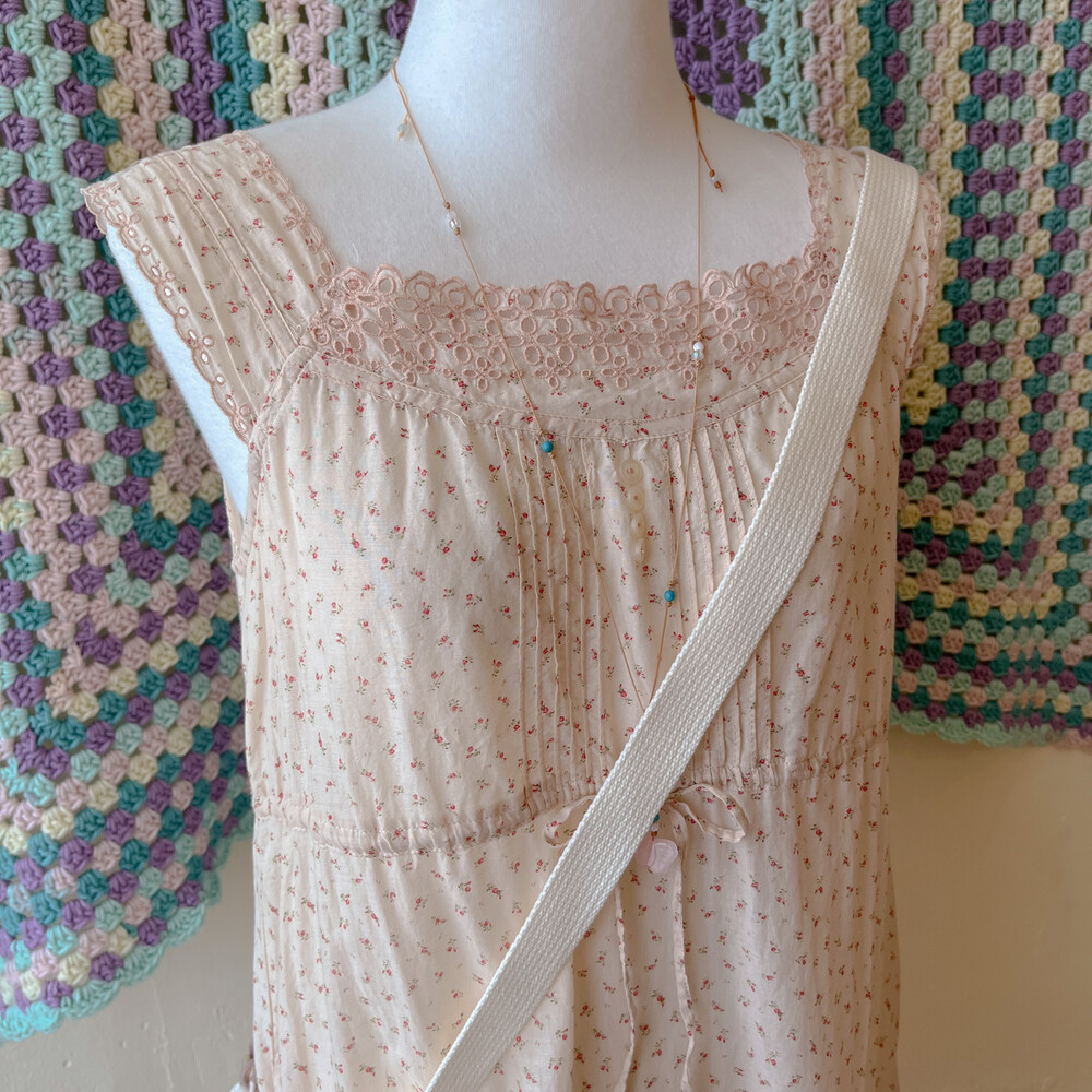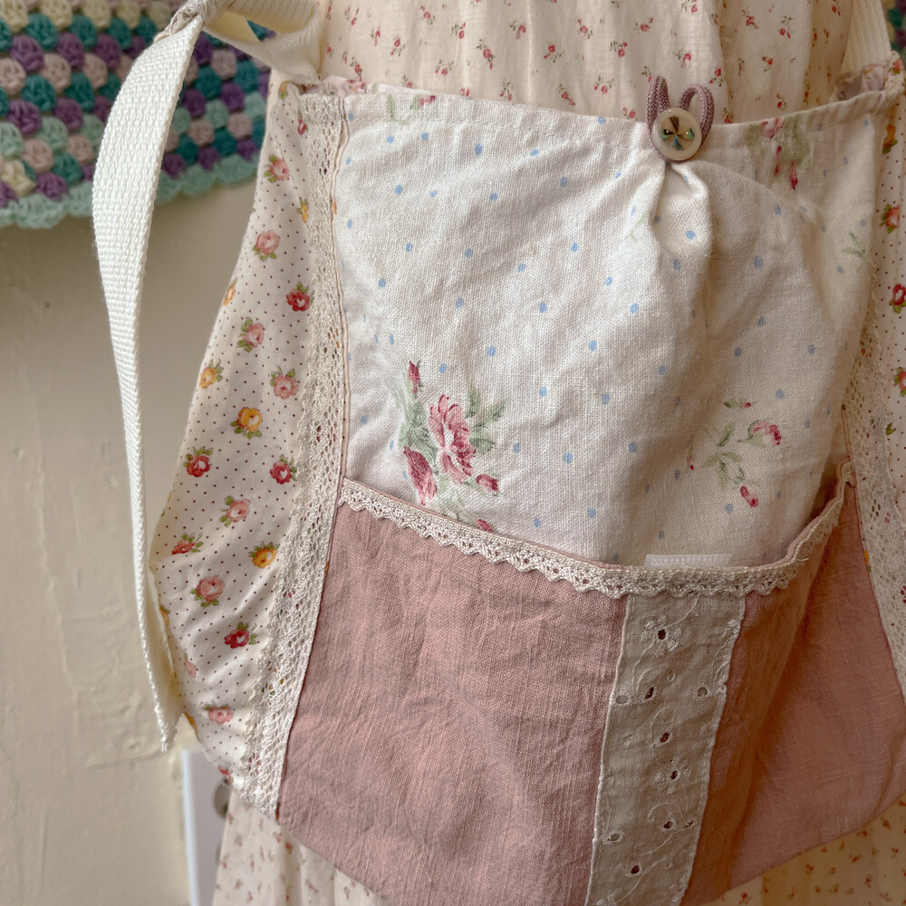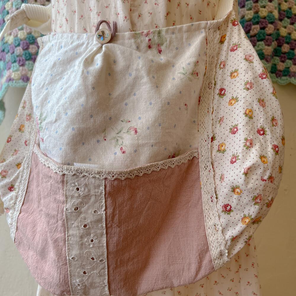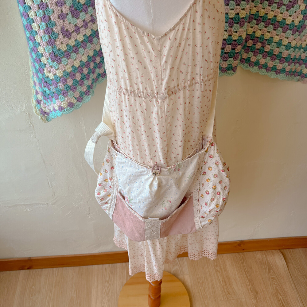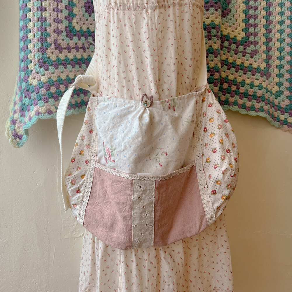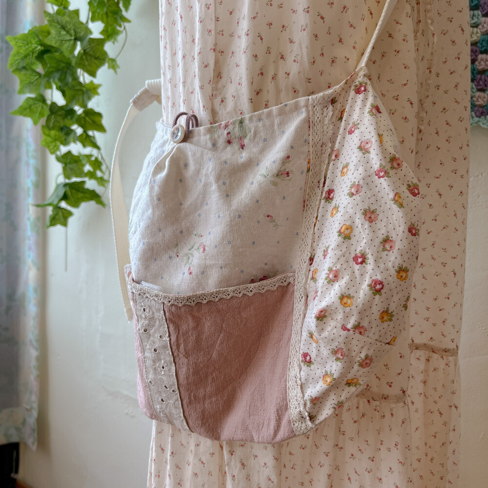 분홍색감 베이스의 패치워크 크로스백이에요
