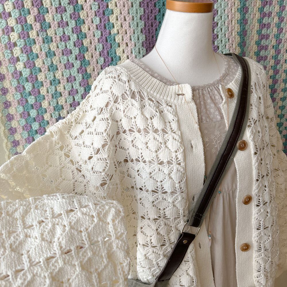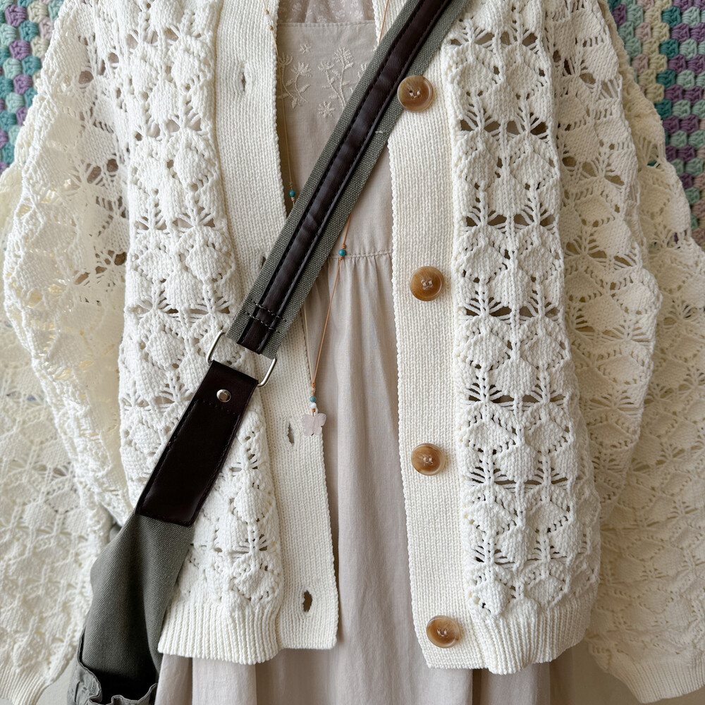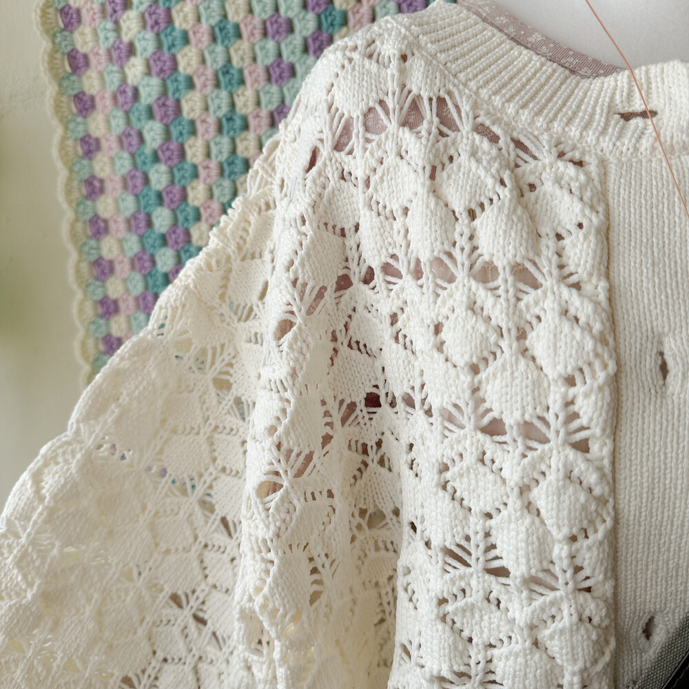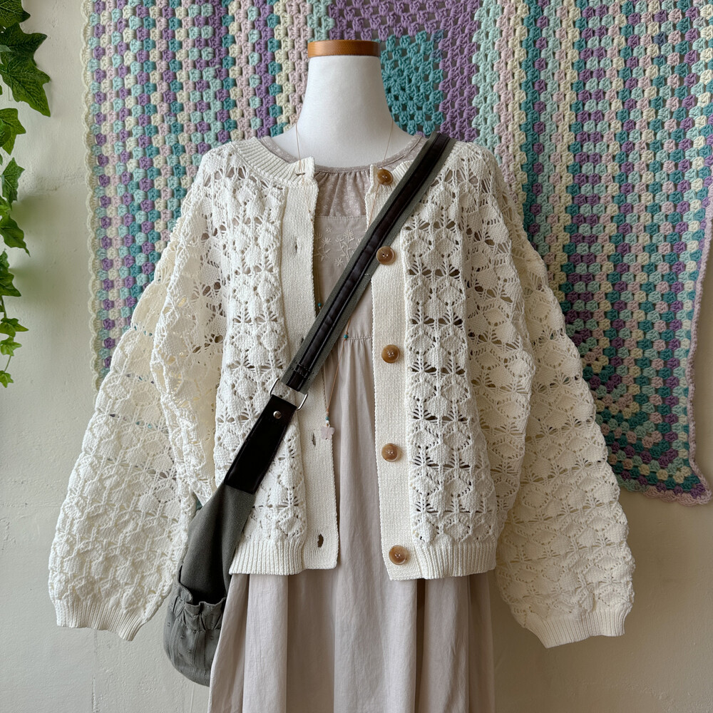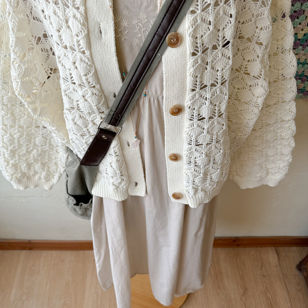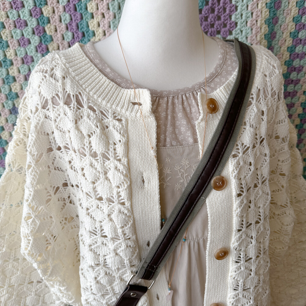 아이보리 색감의 크로셰 가디건이에요
