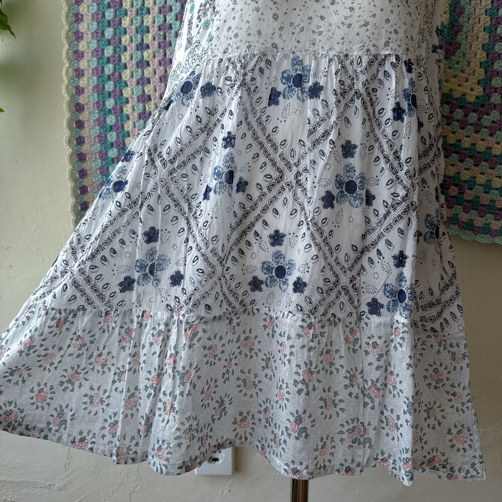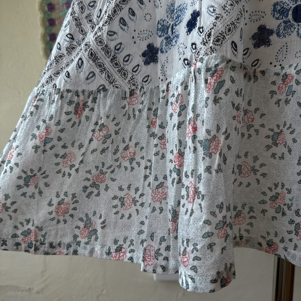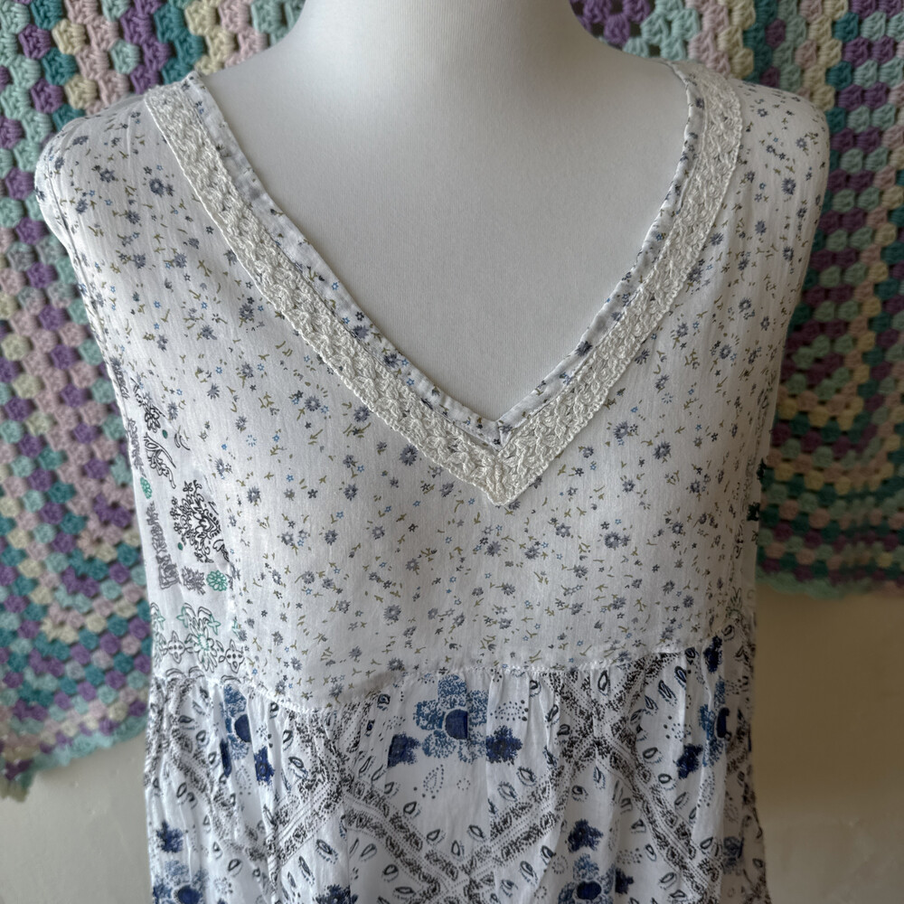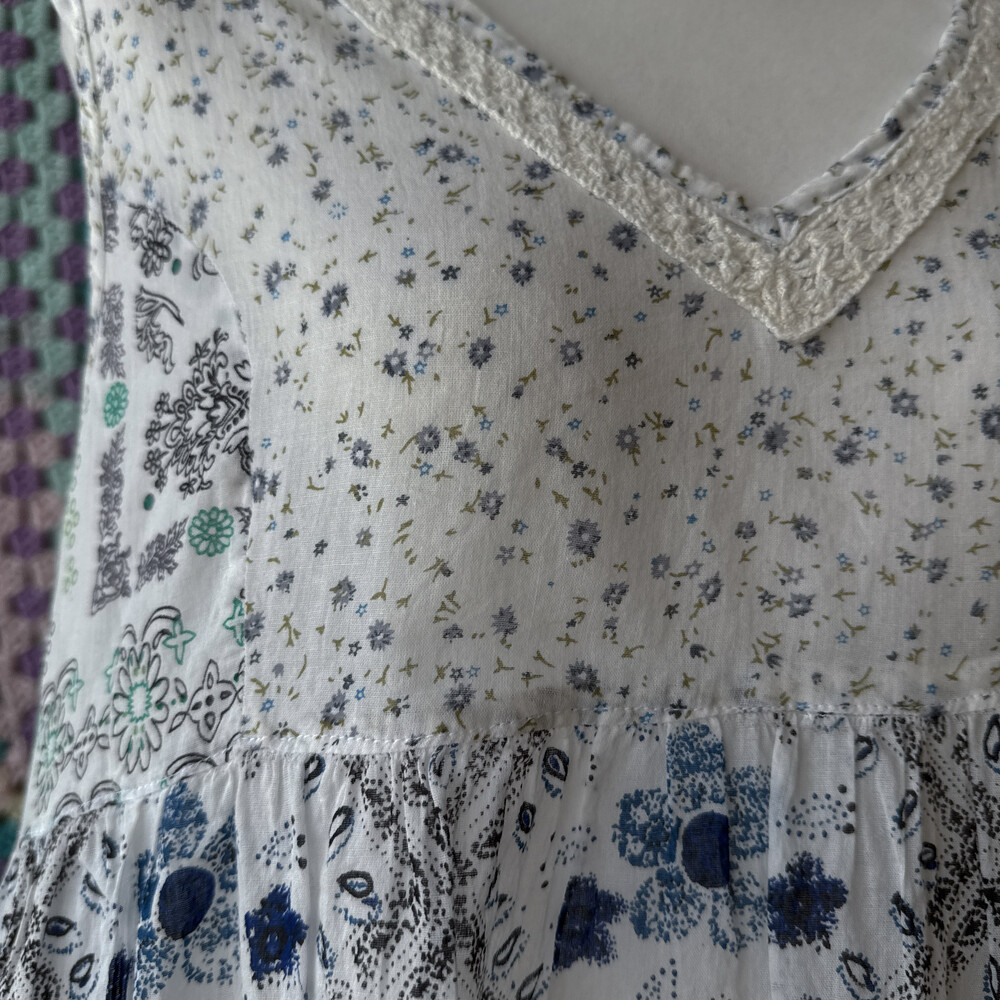 blue flower v-neck patch bl