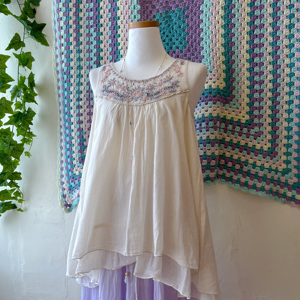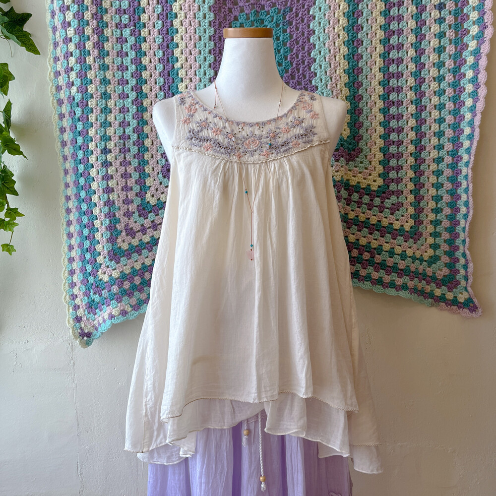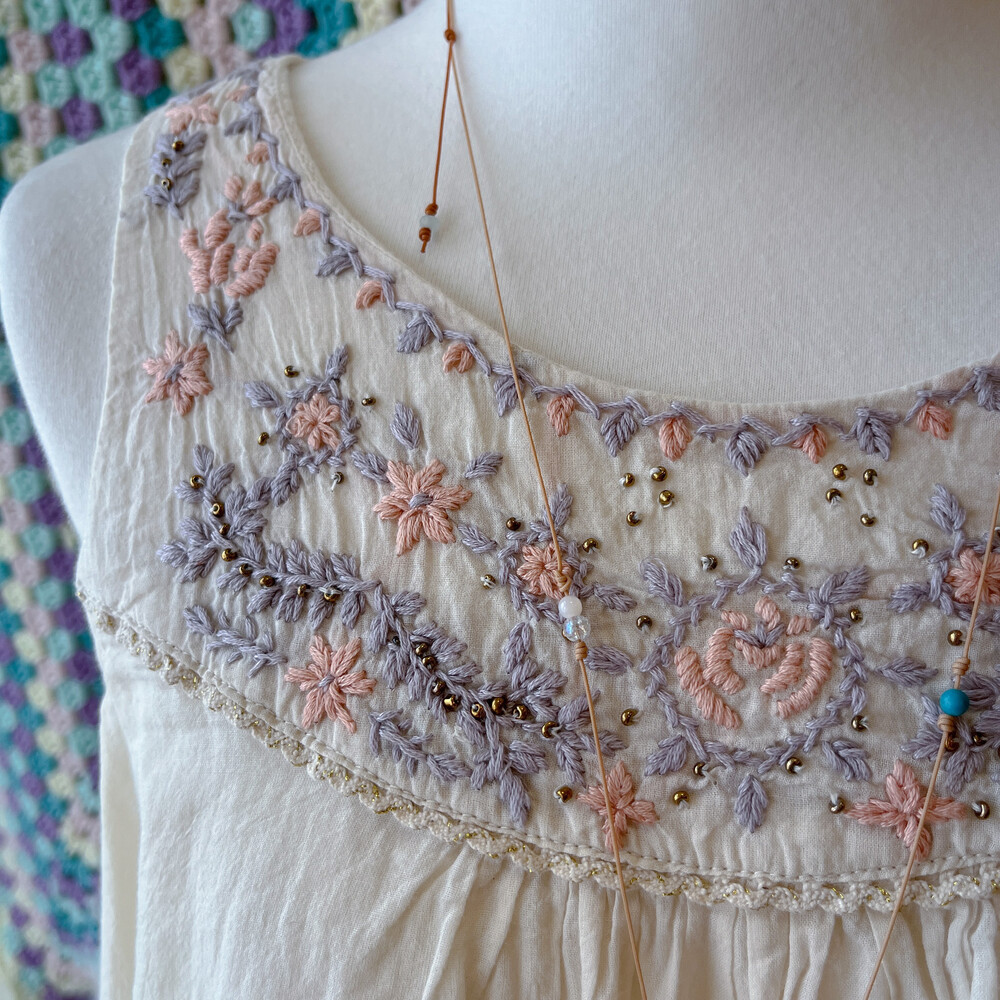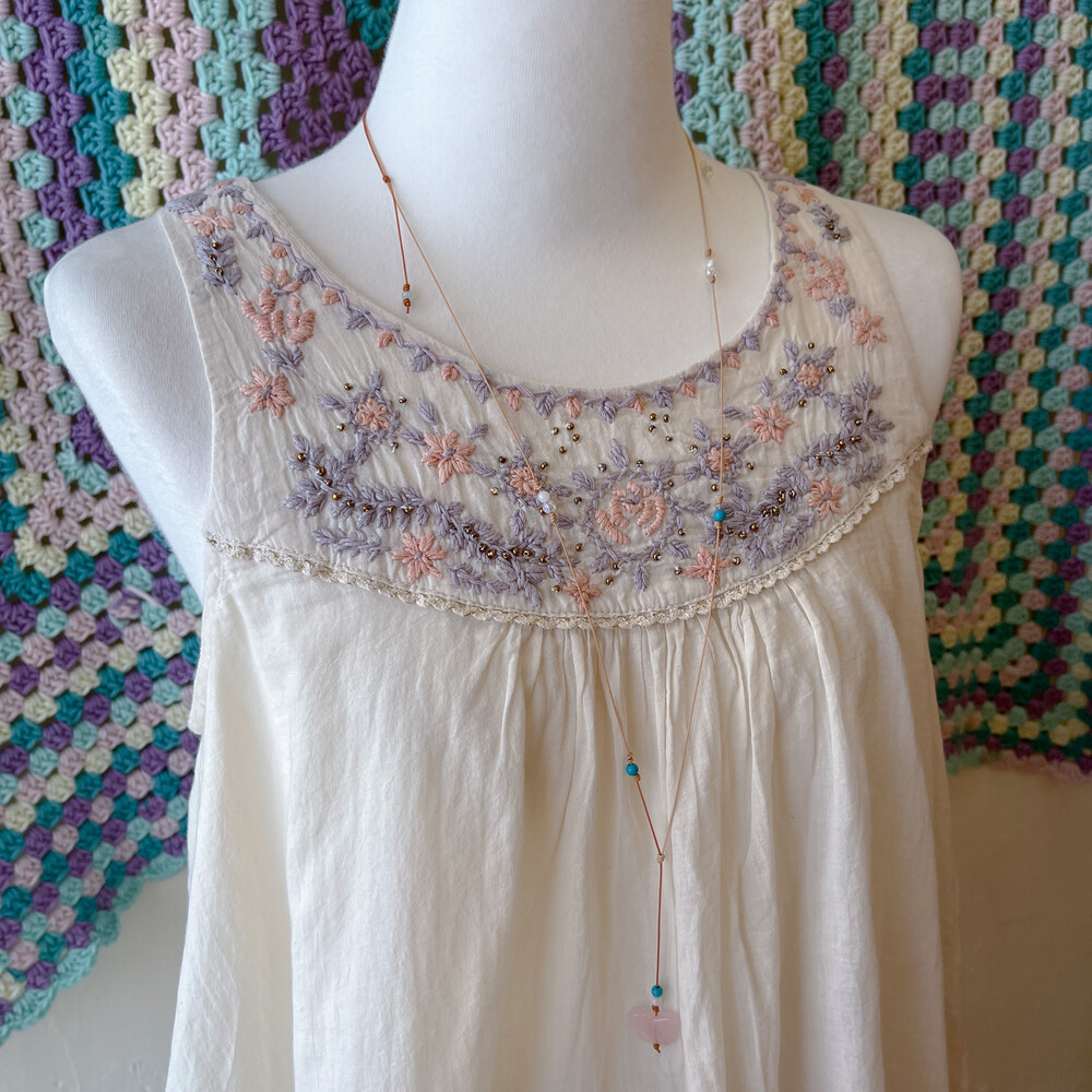 코튼 소재구요, 보라 연분홍 자수 포인트와