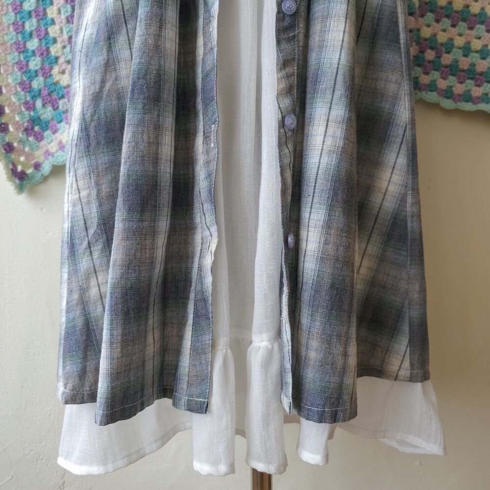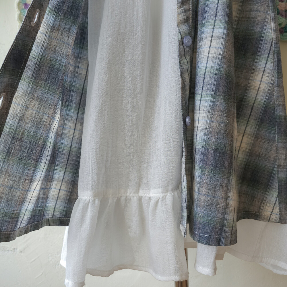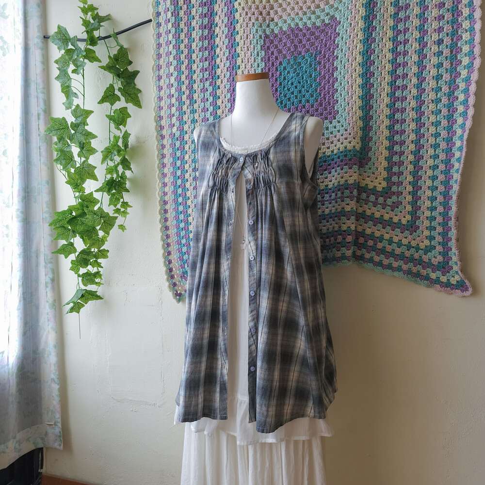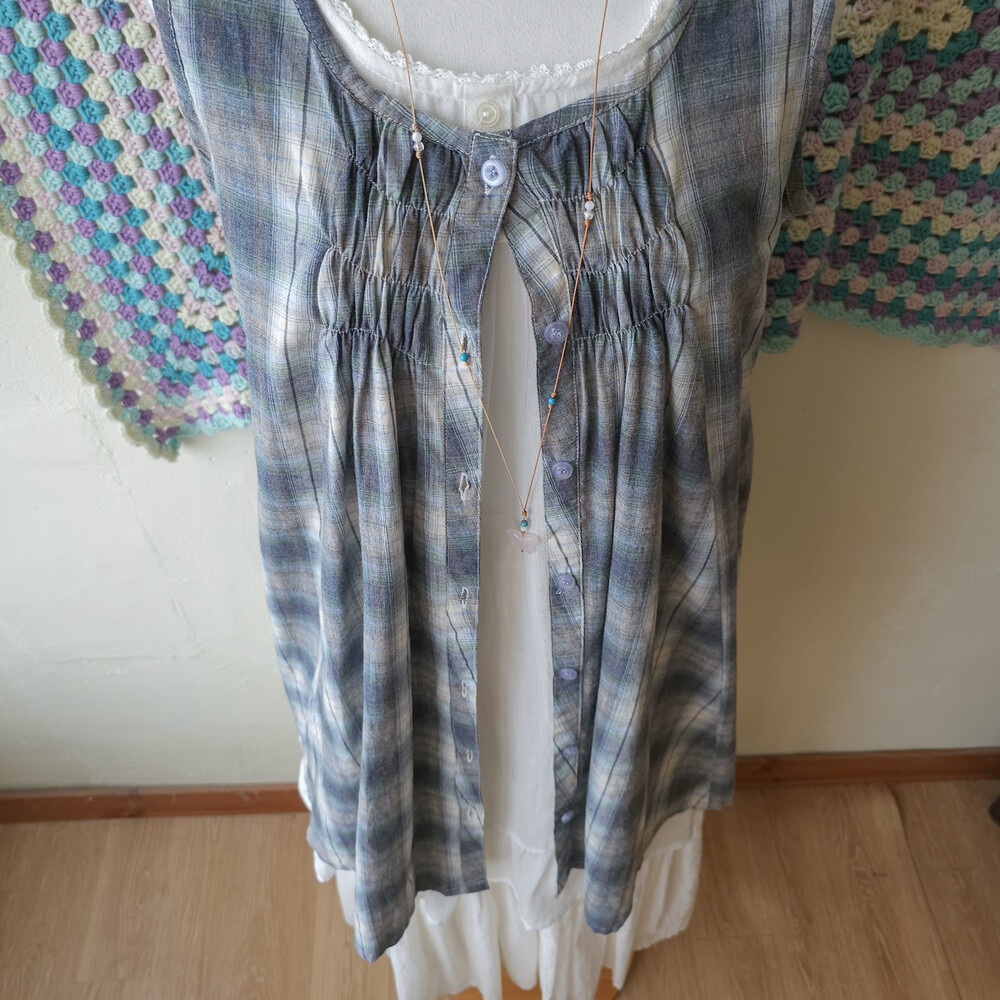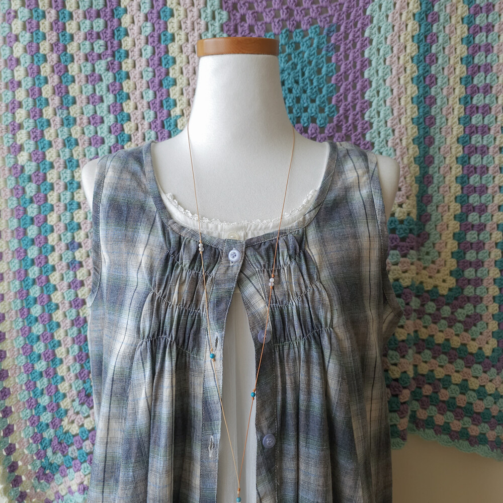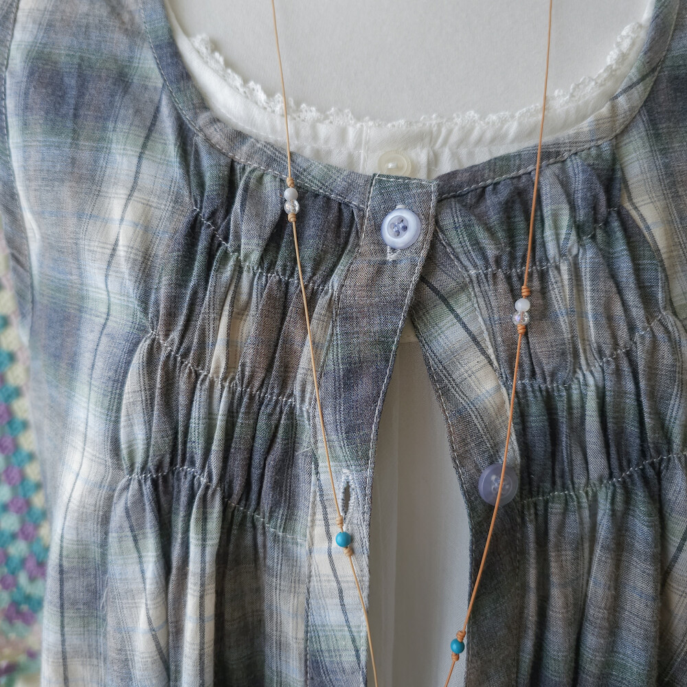 그레이, 그린, 베이지 등이 섞인 정말 오묘한 색감의 코지한 체크 튜닉과