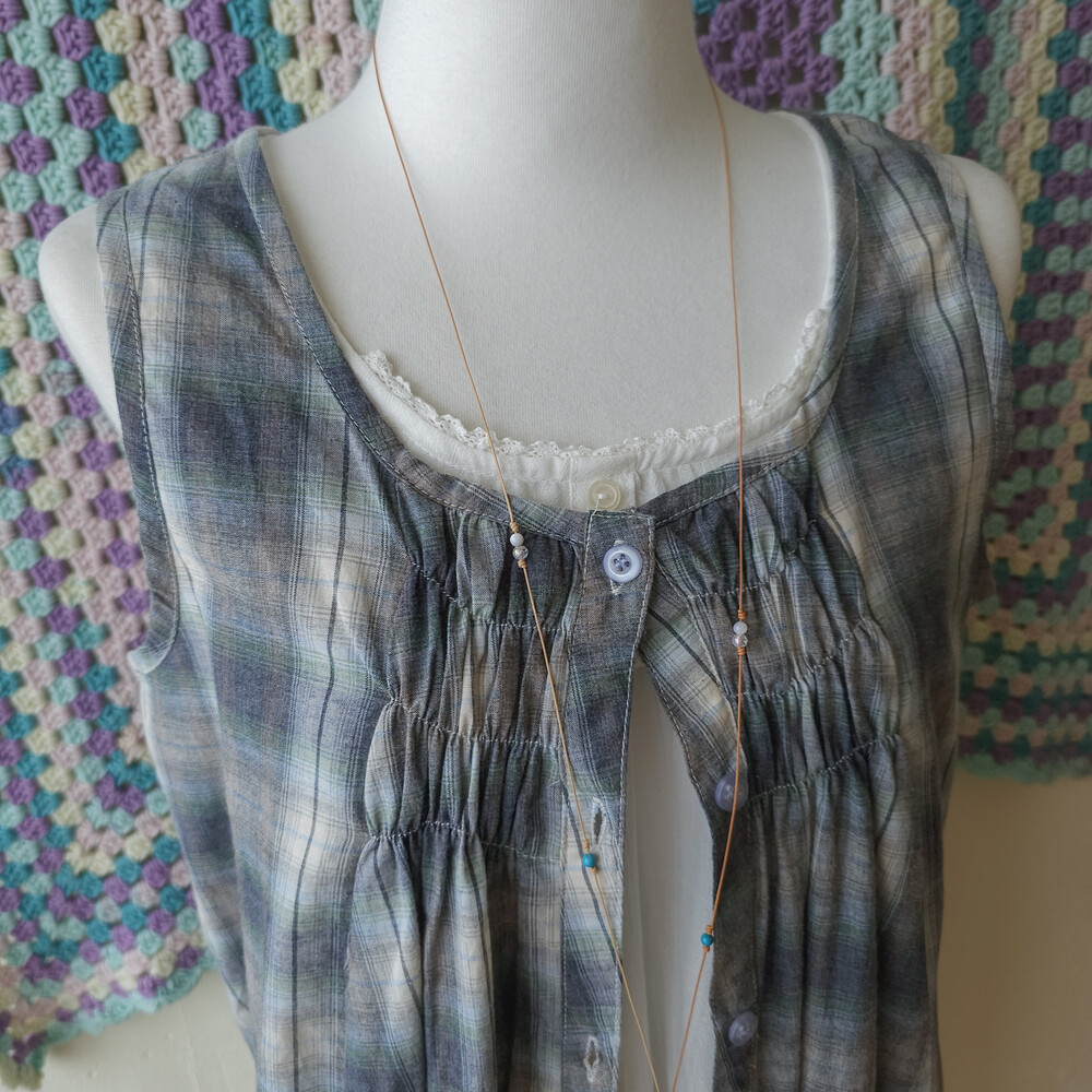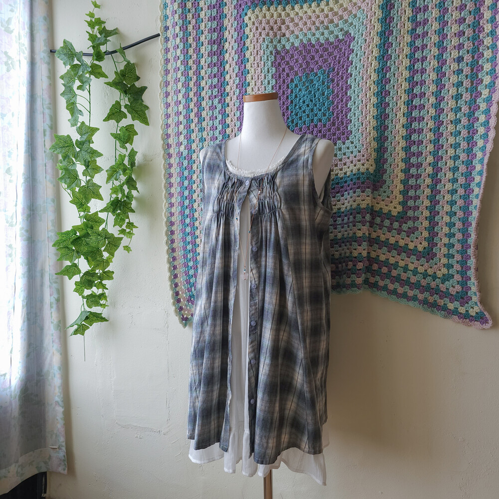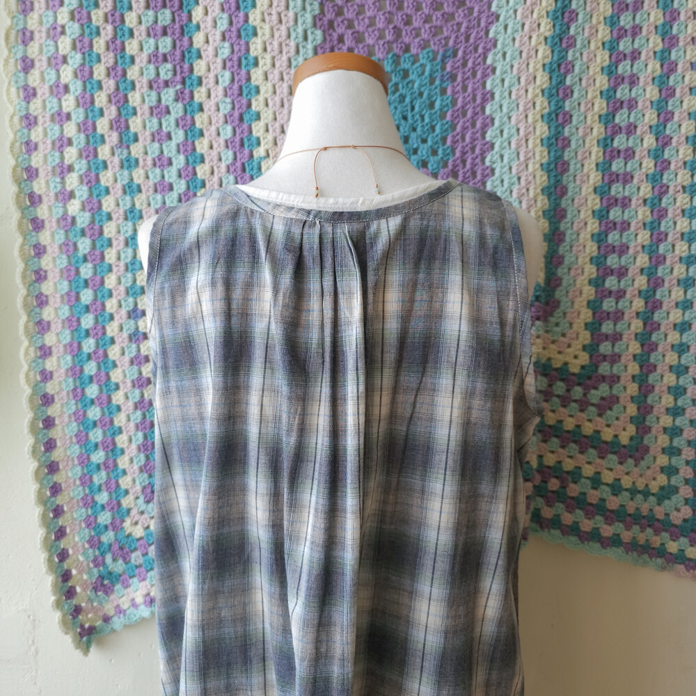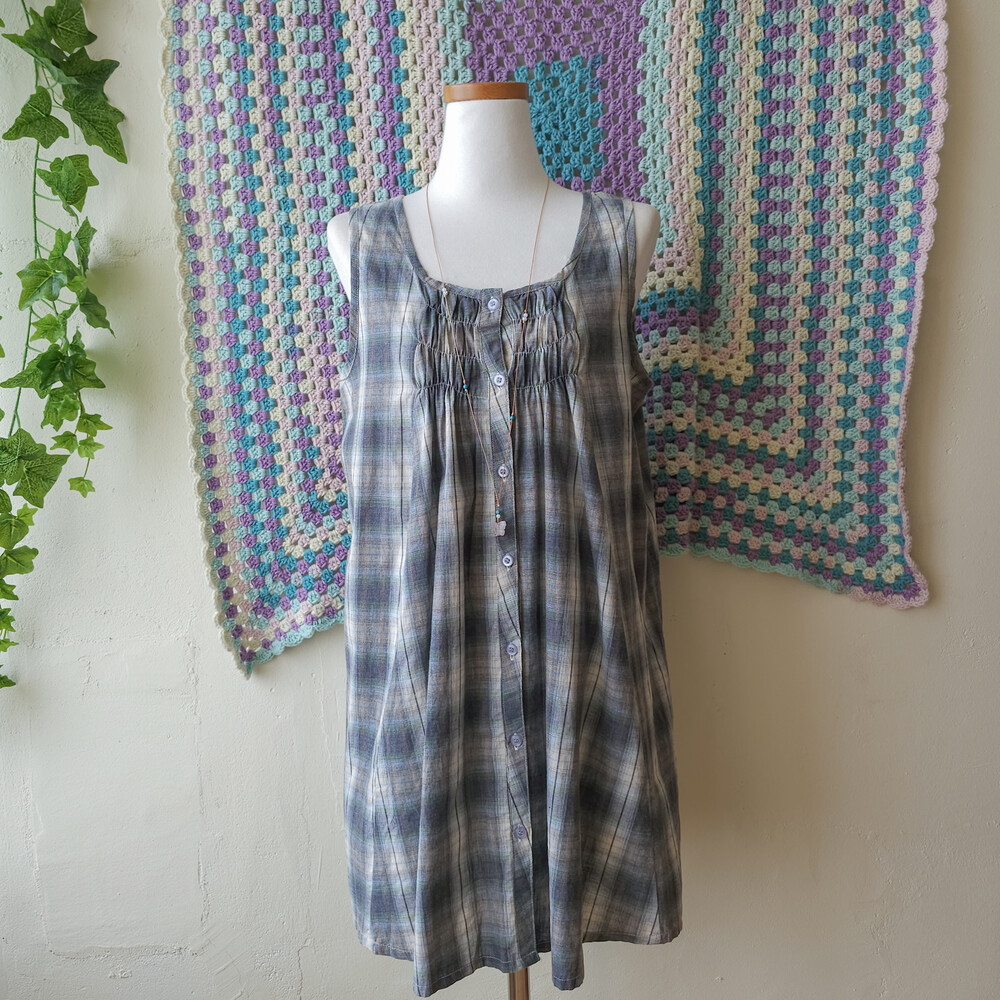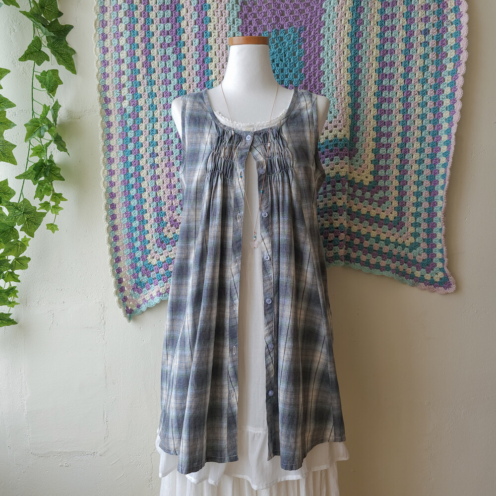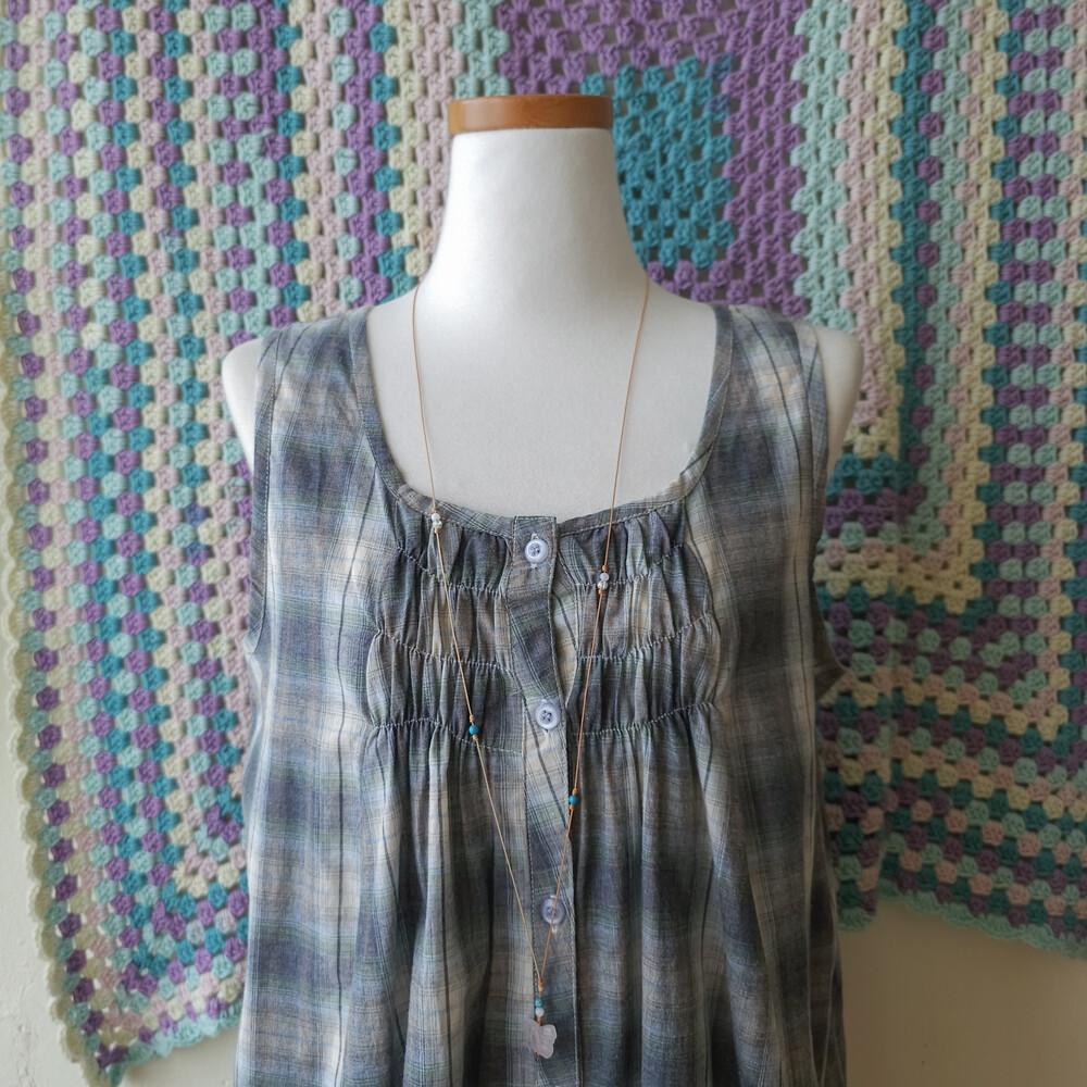 그레이, 그린, 베이지 등이 섞인 정말 오묘한 색감의 코지한 체크 튜닉과