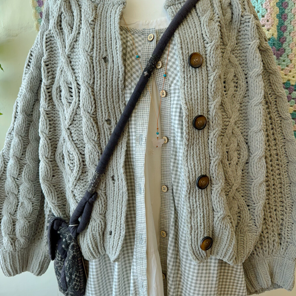 흔하지 않은 뮤트한 색감의 가디건이라