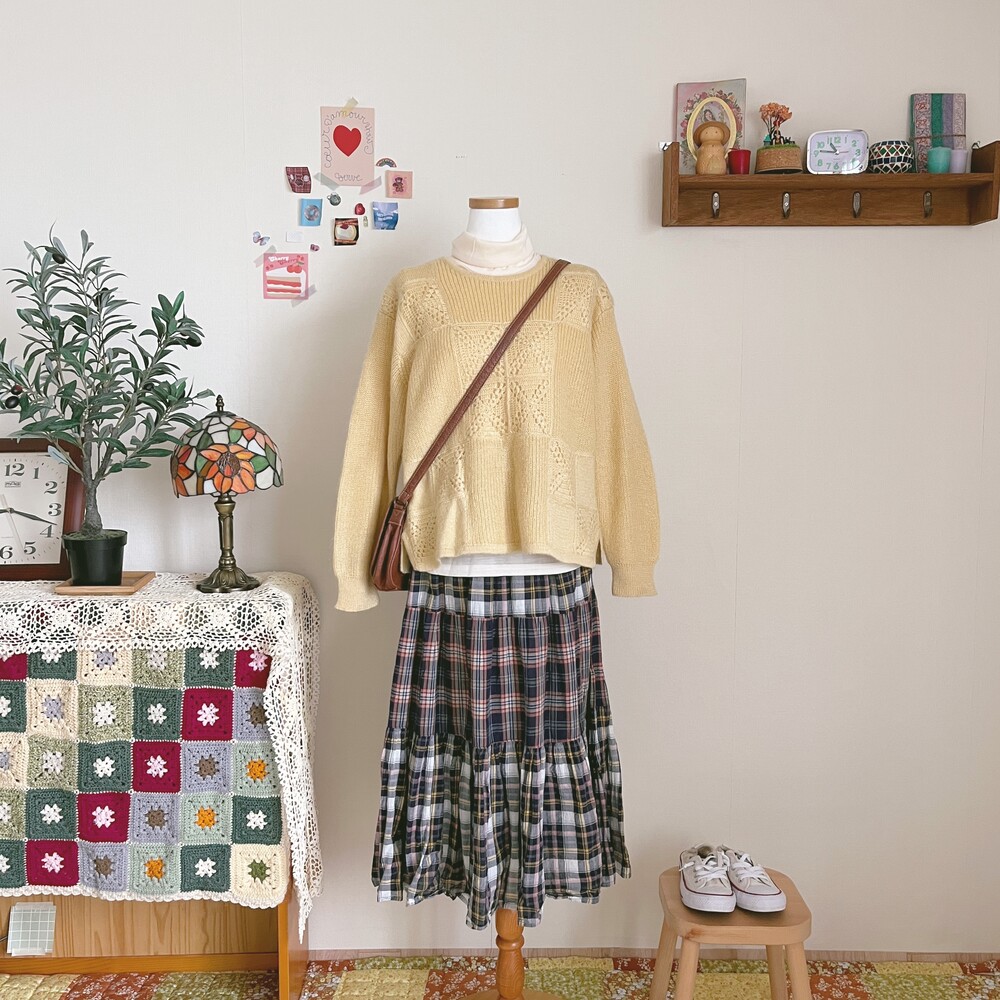 이런 노란색감의 니트는 개인적으로 네이비나 그린과 잘 어울리는 것 같아요!
