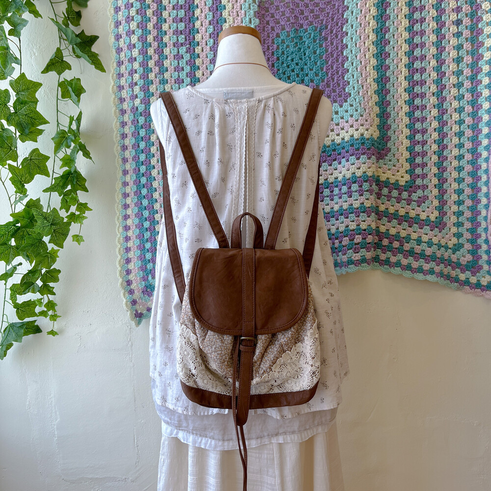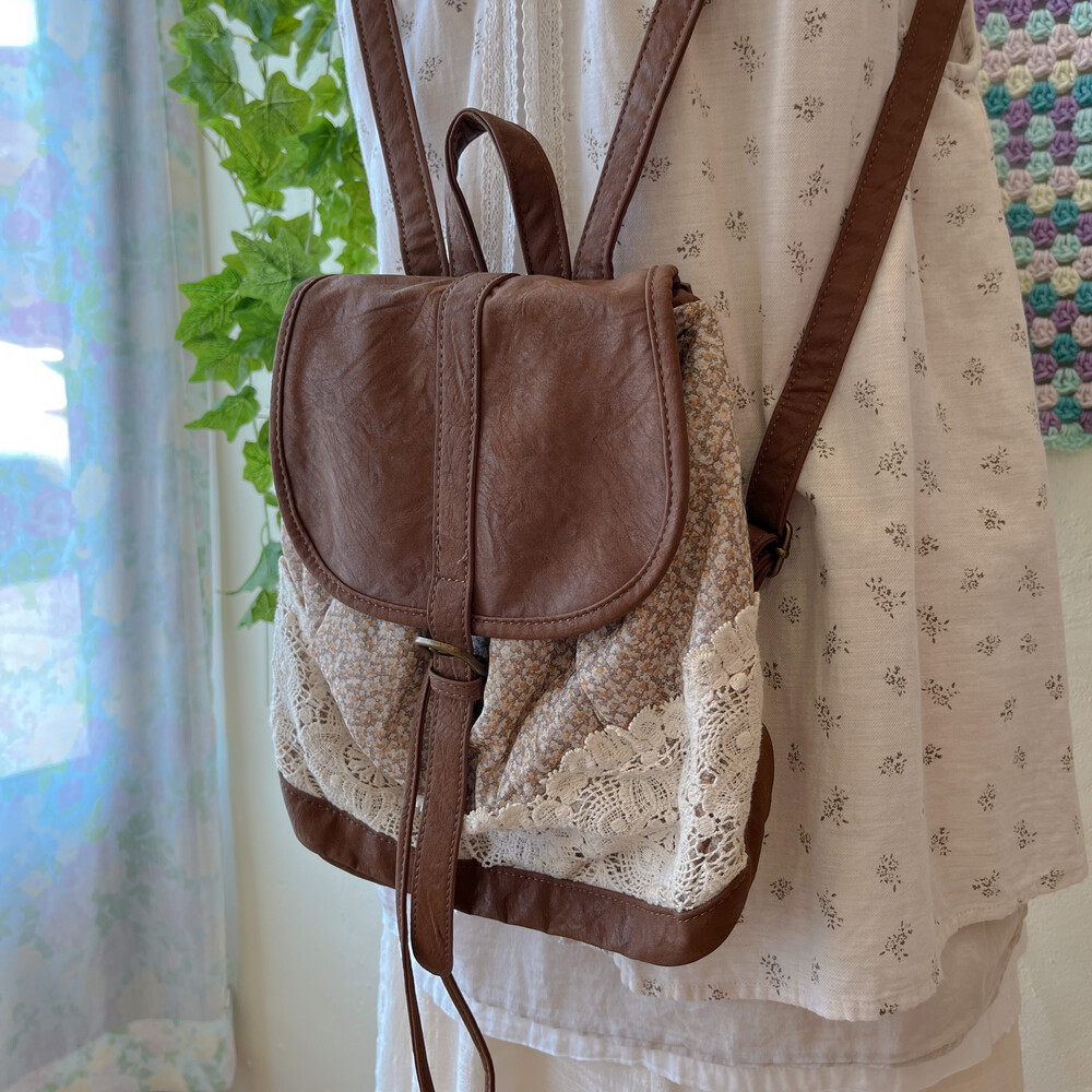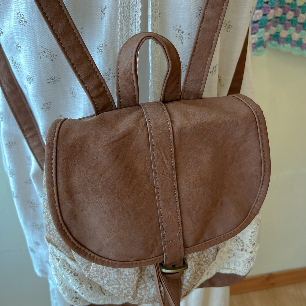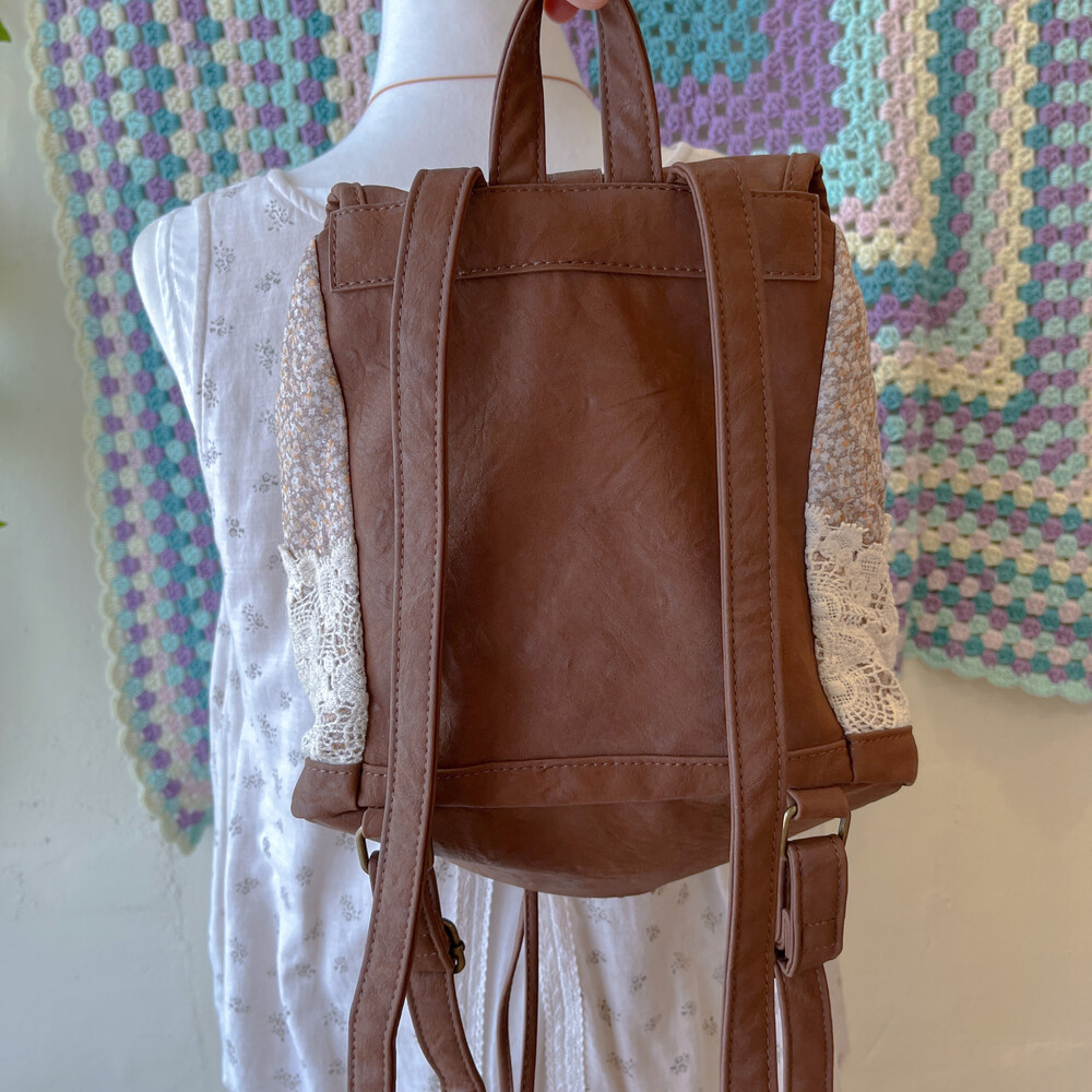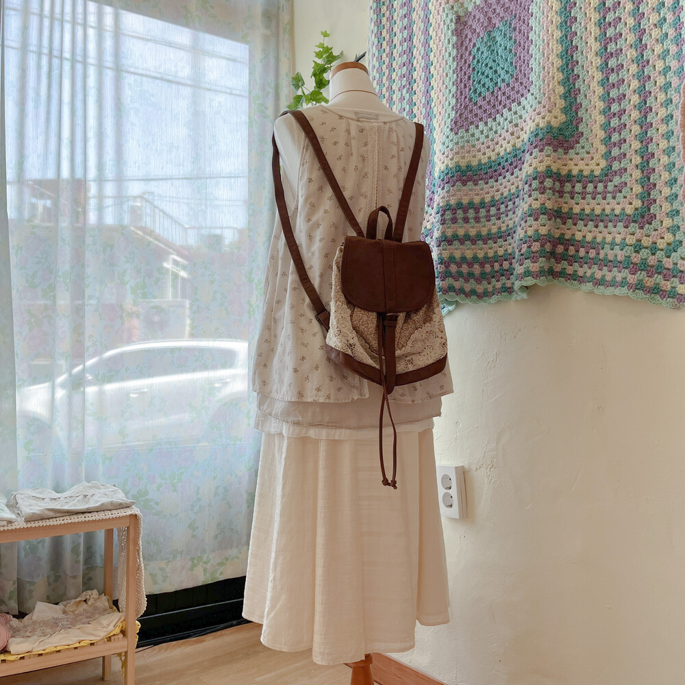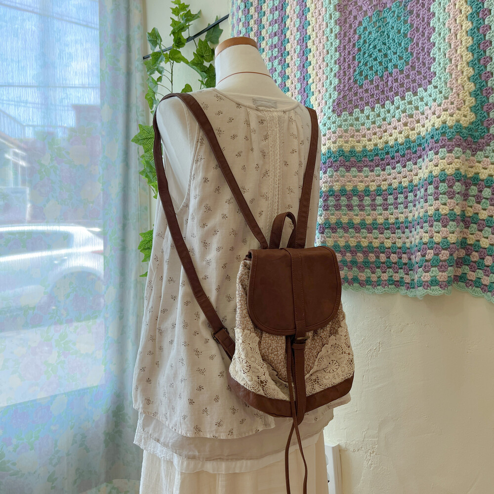 brown mini flower&lace mini backpack