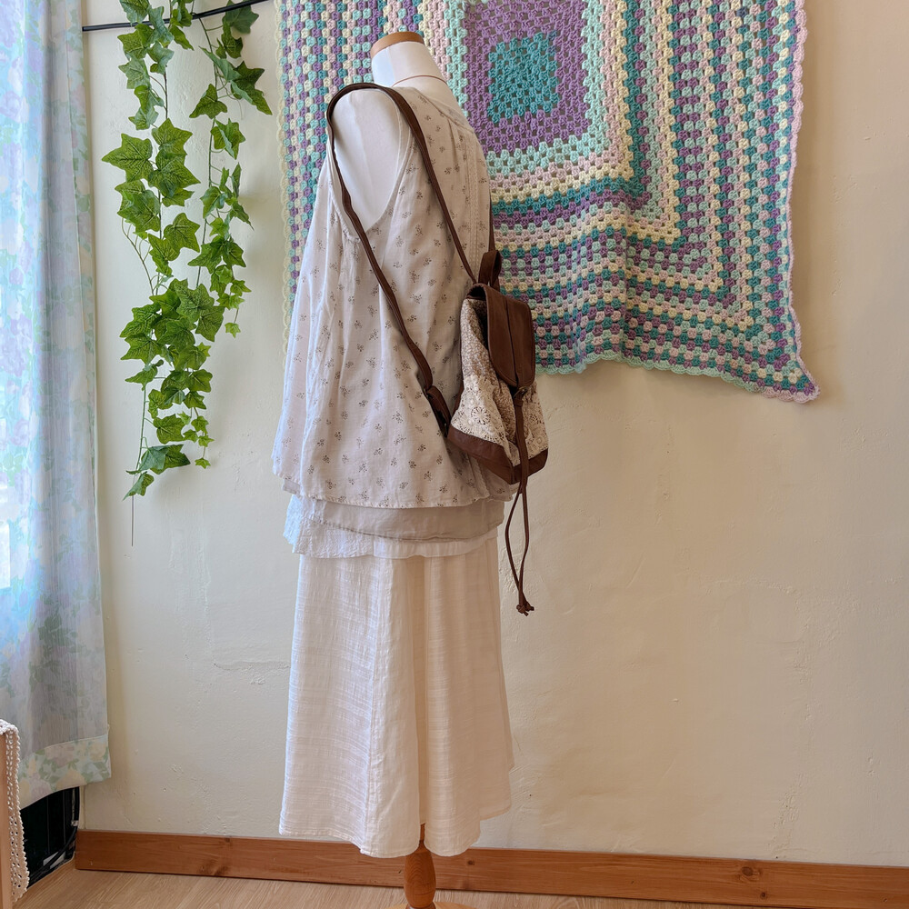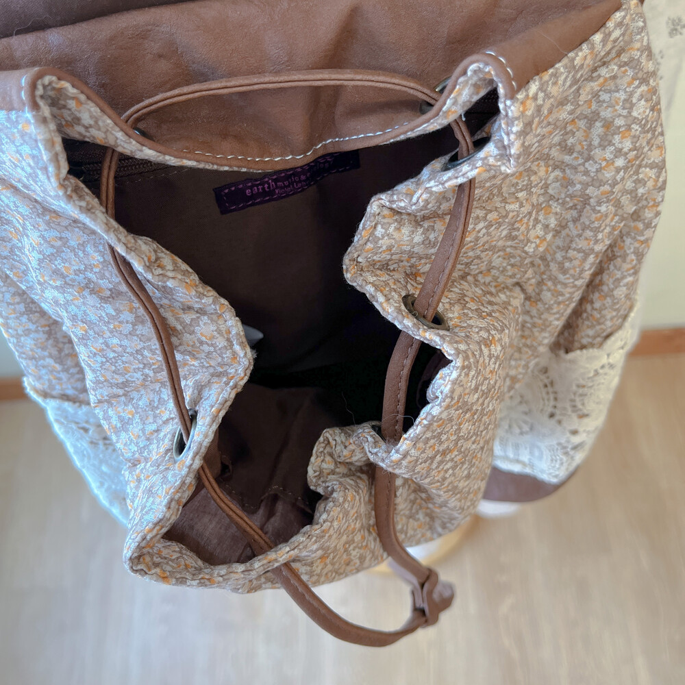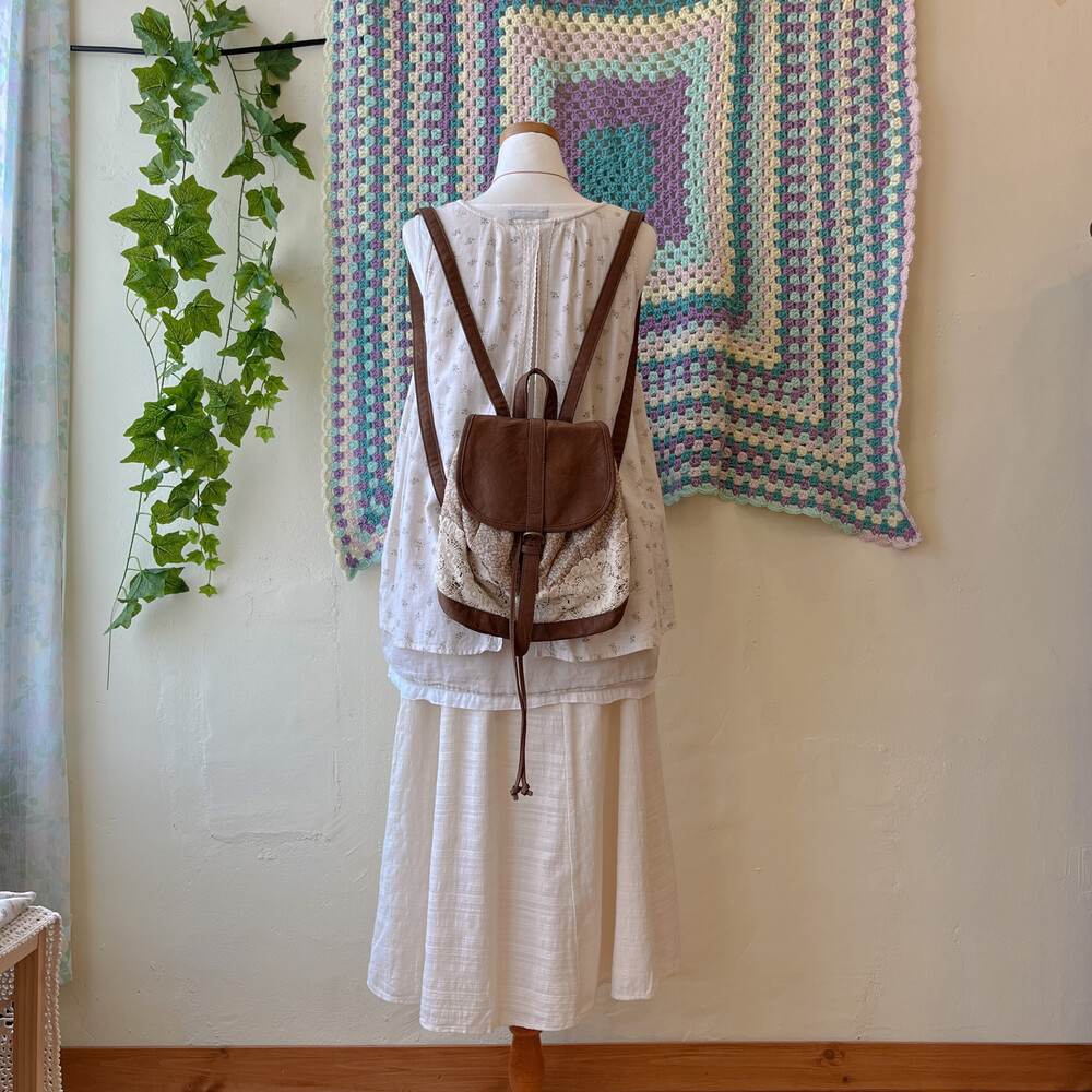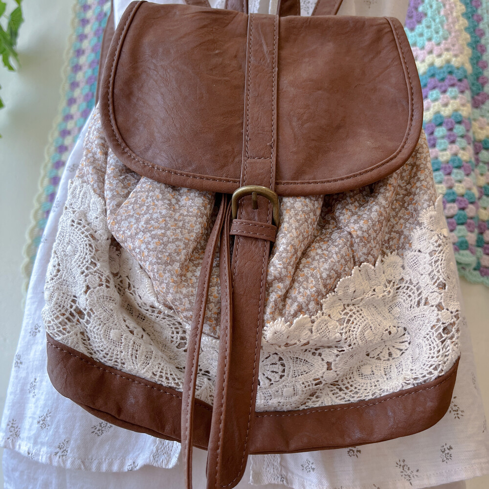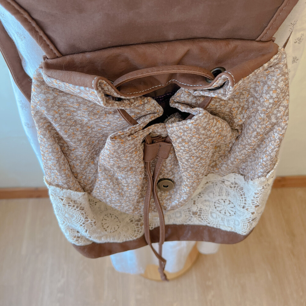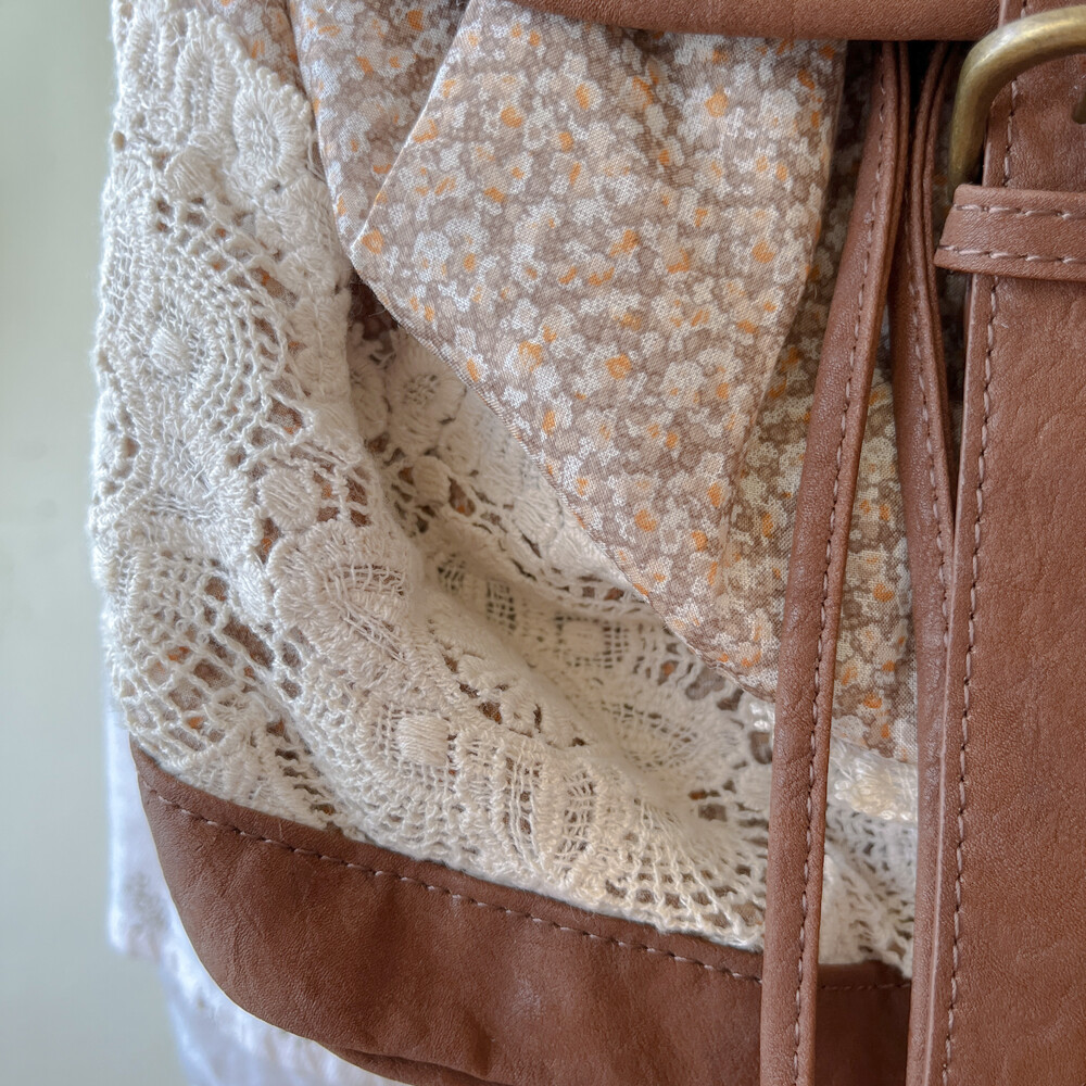 brown mini flower&lace mini backpack