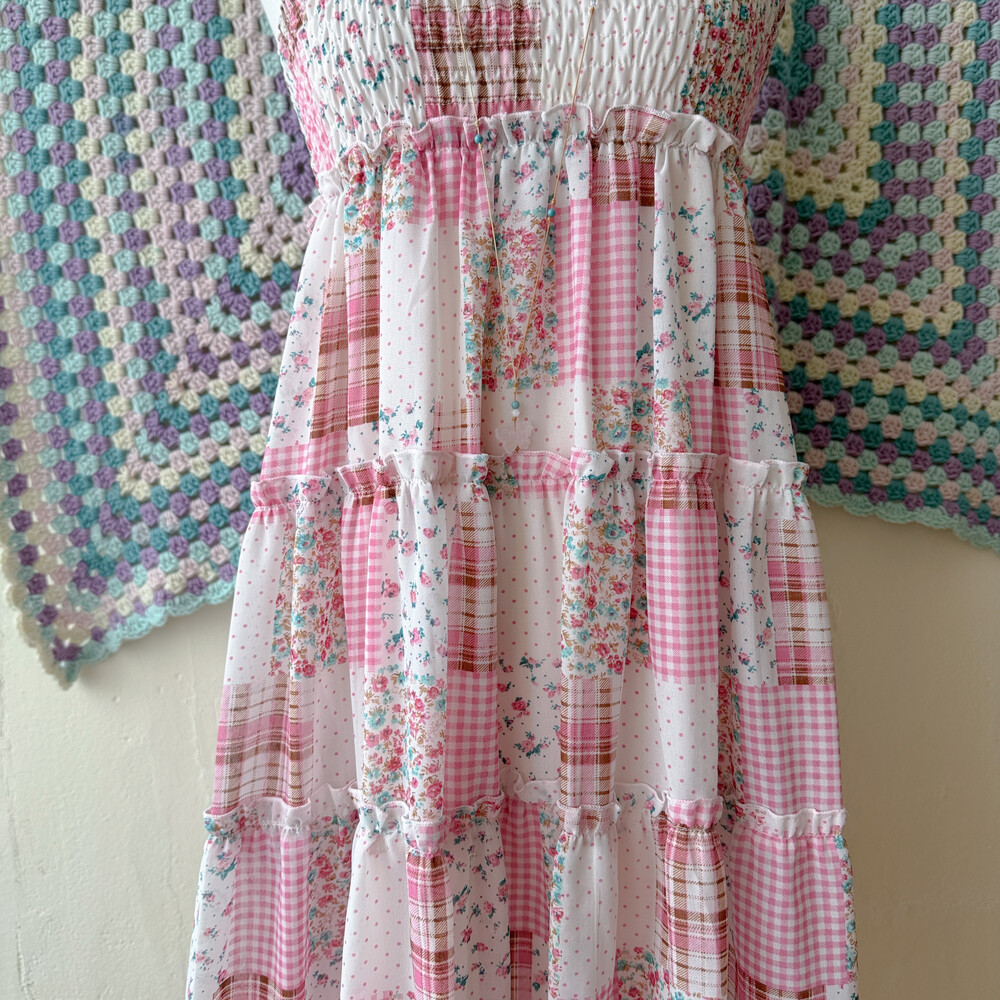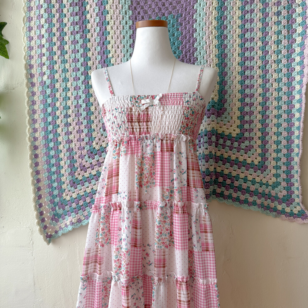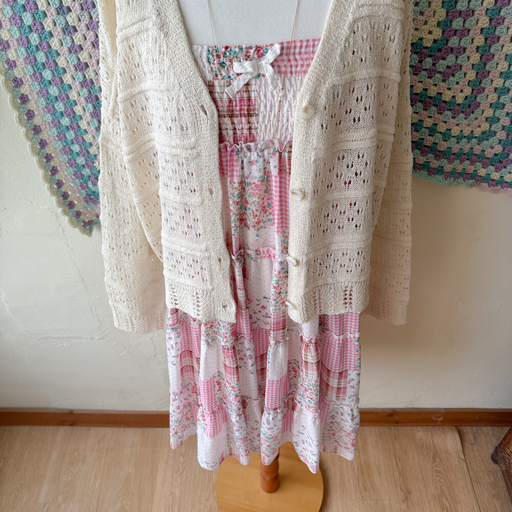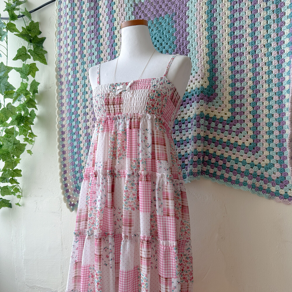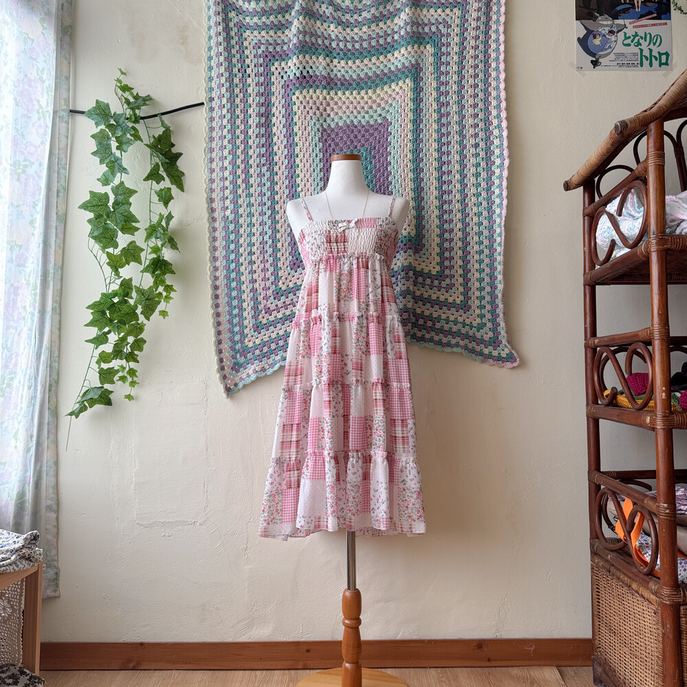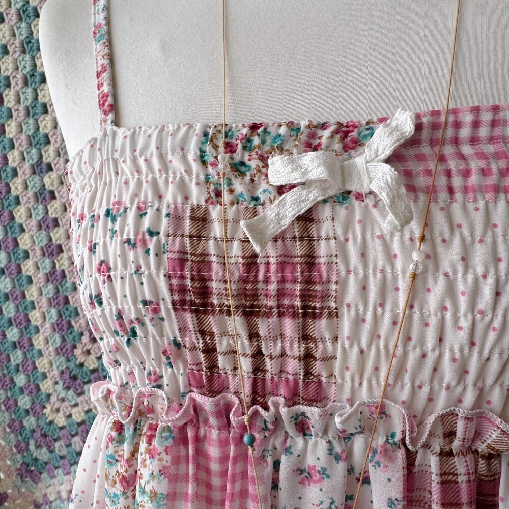 핑크 색감의 쉬폰 캉캉 끈원피스예요
