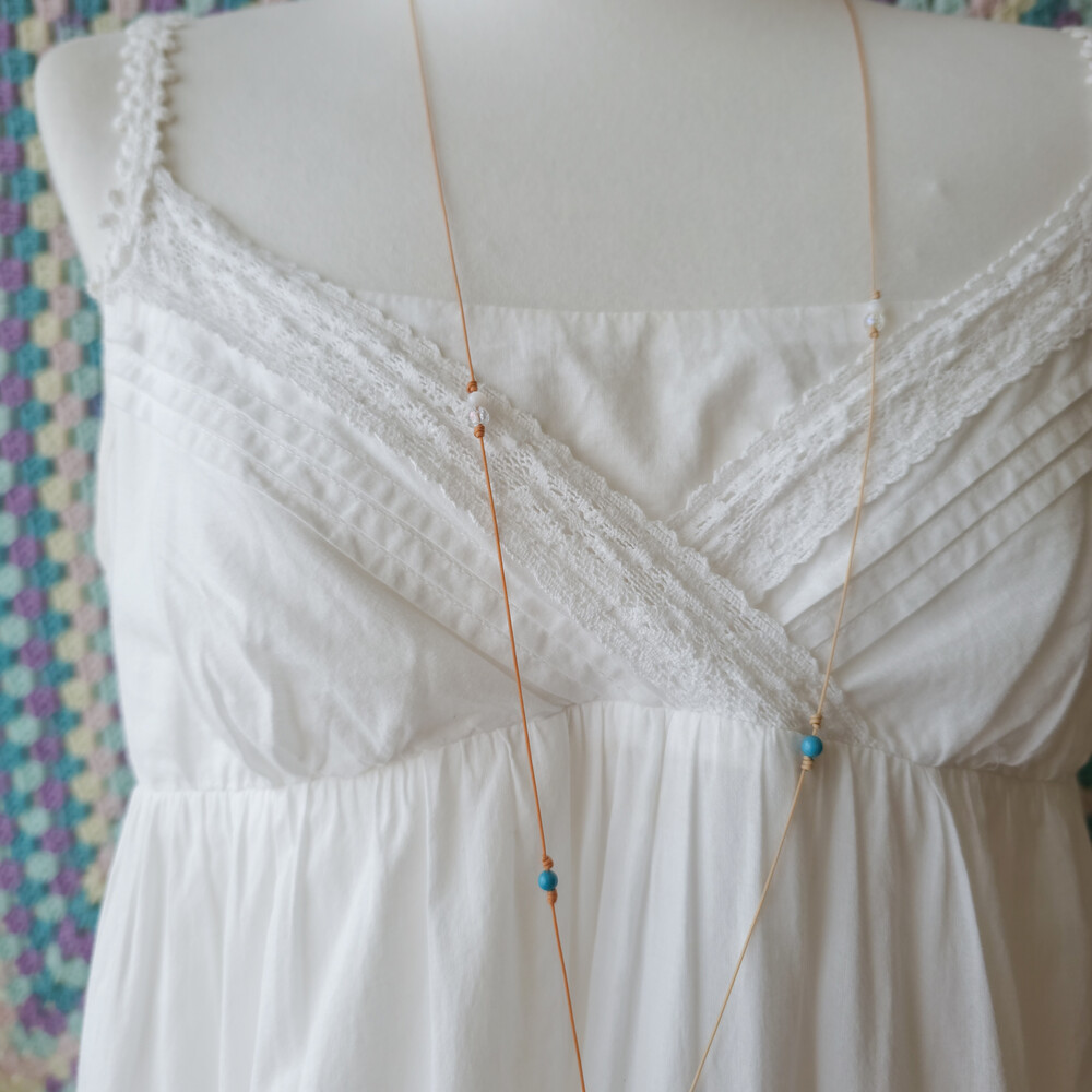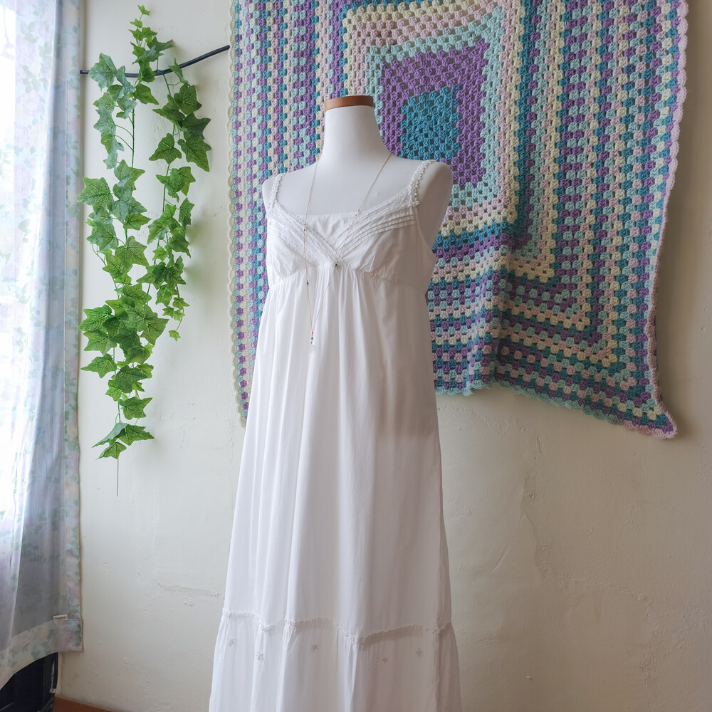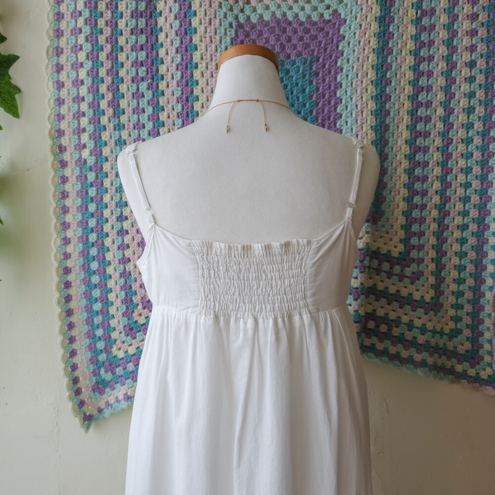 화이트 색감의 브이넥 코튼 끈원피스예요