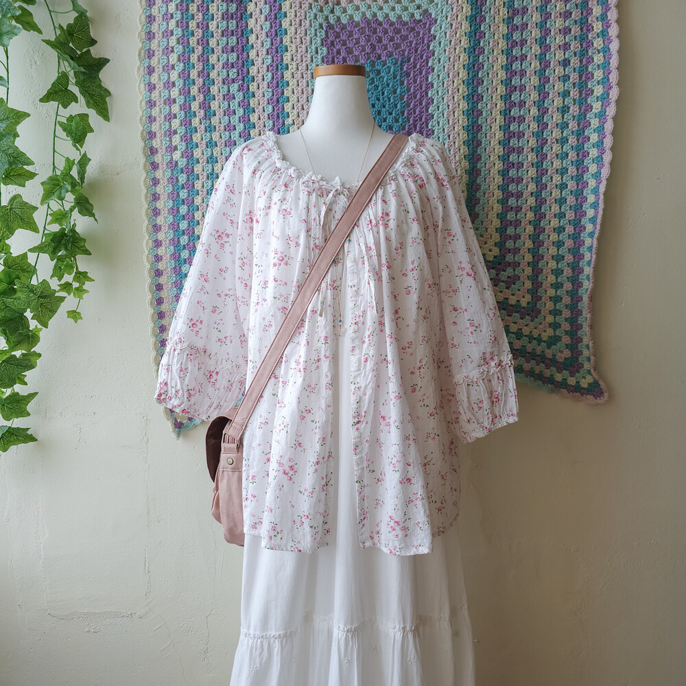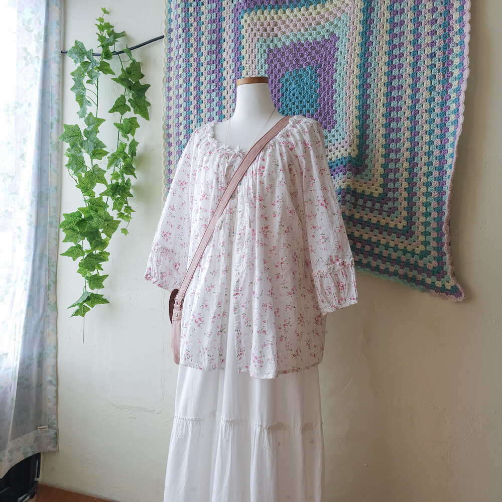 white v-neck hemline flower motive ops