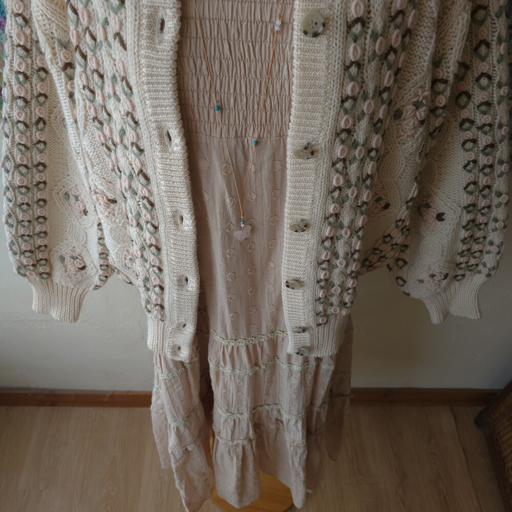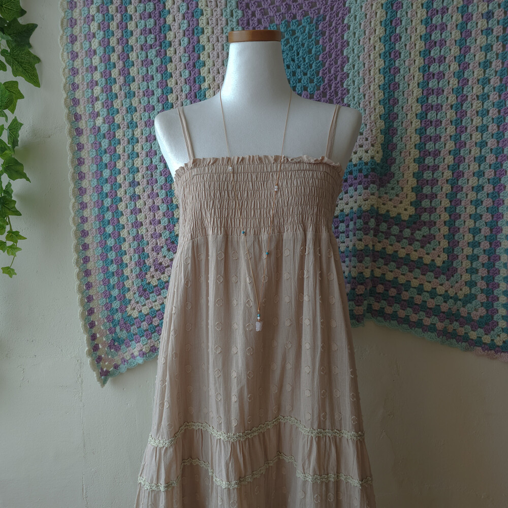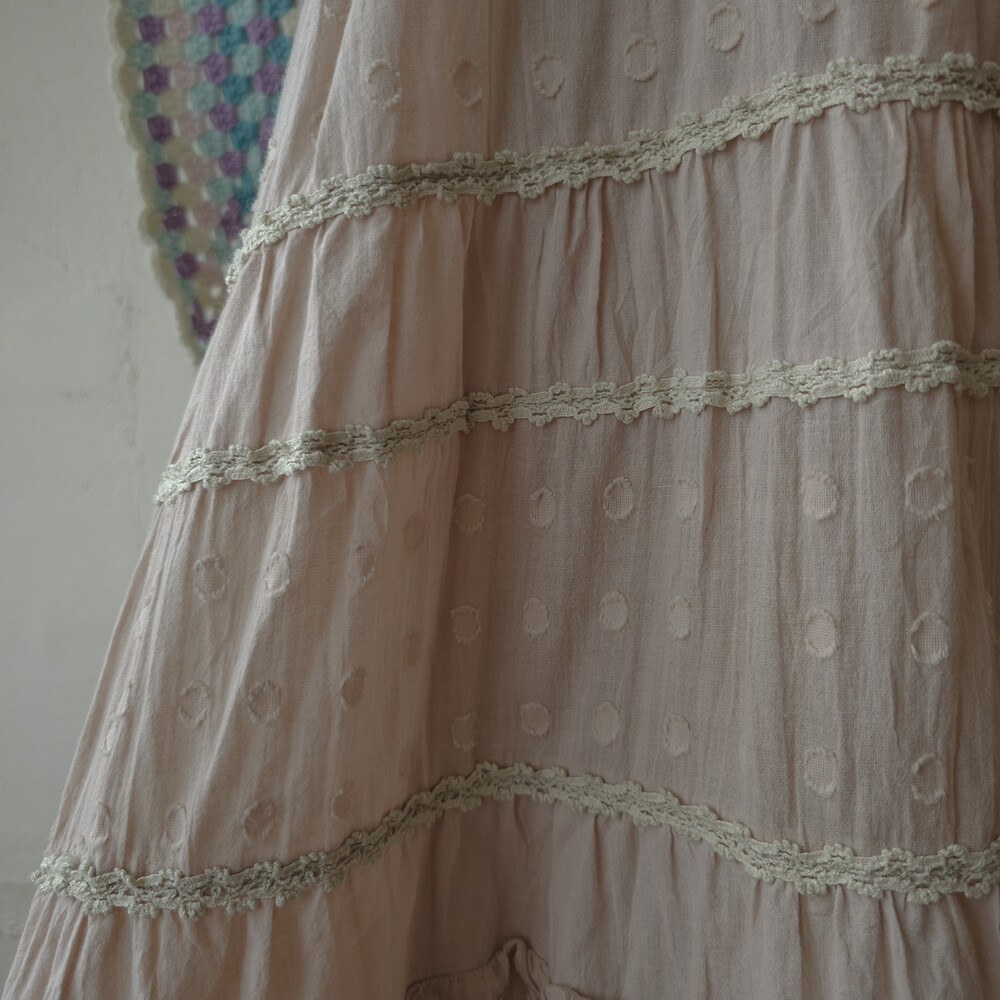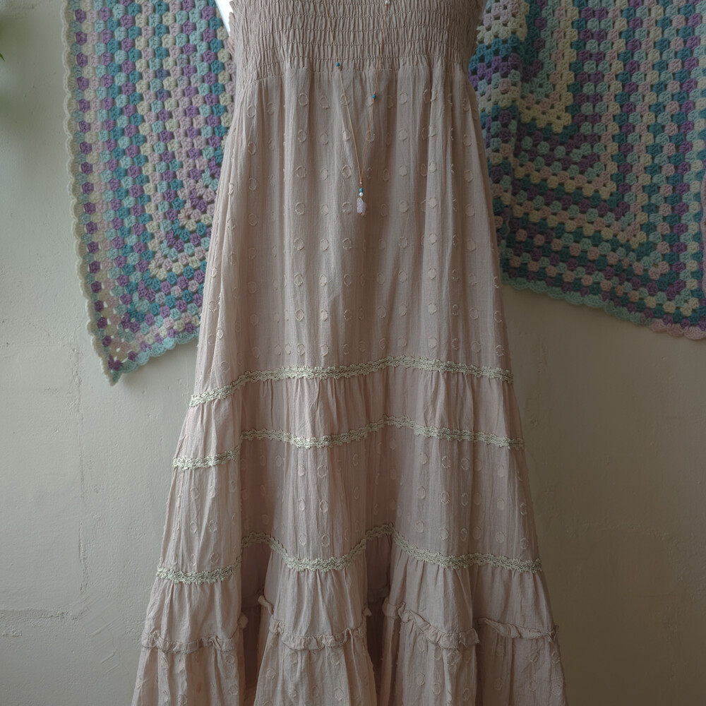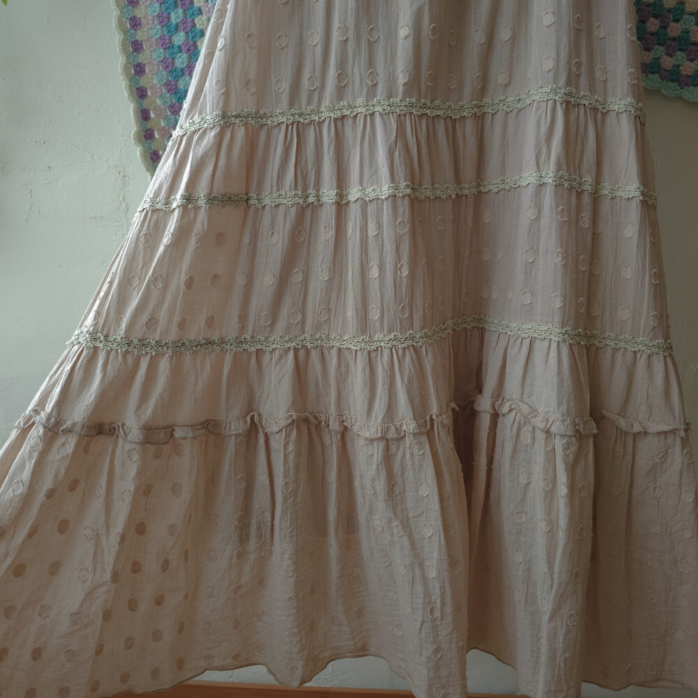 deep beige round pattern lace tiered ops