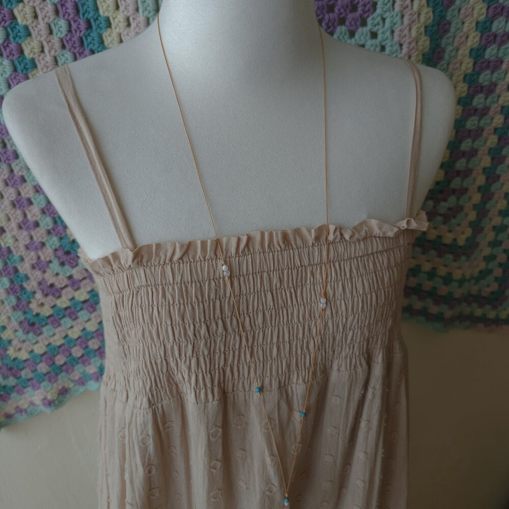 딥베이지 색감의 코튼 끈원피스예요