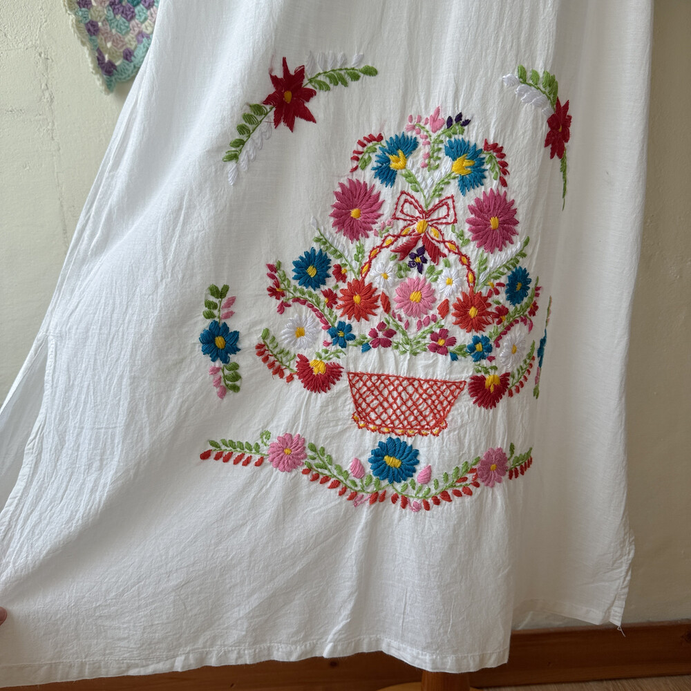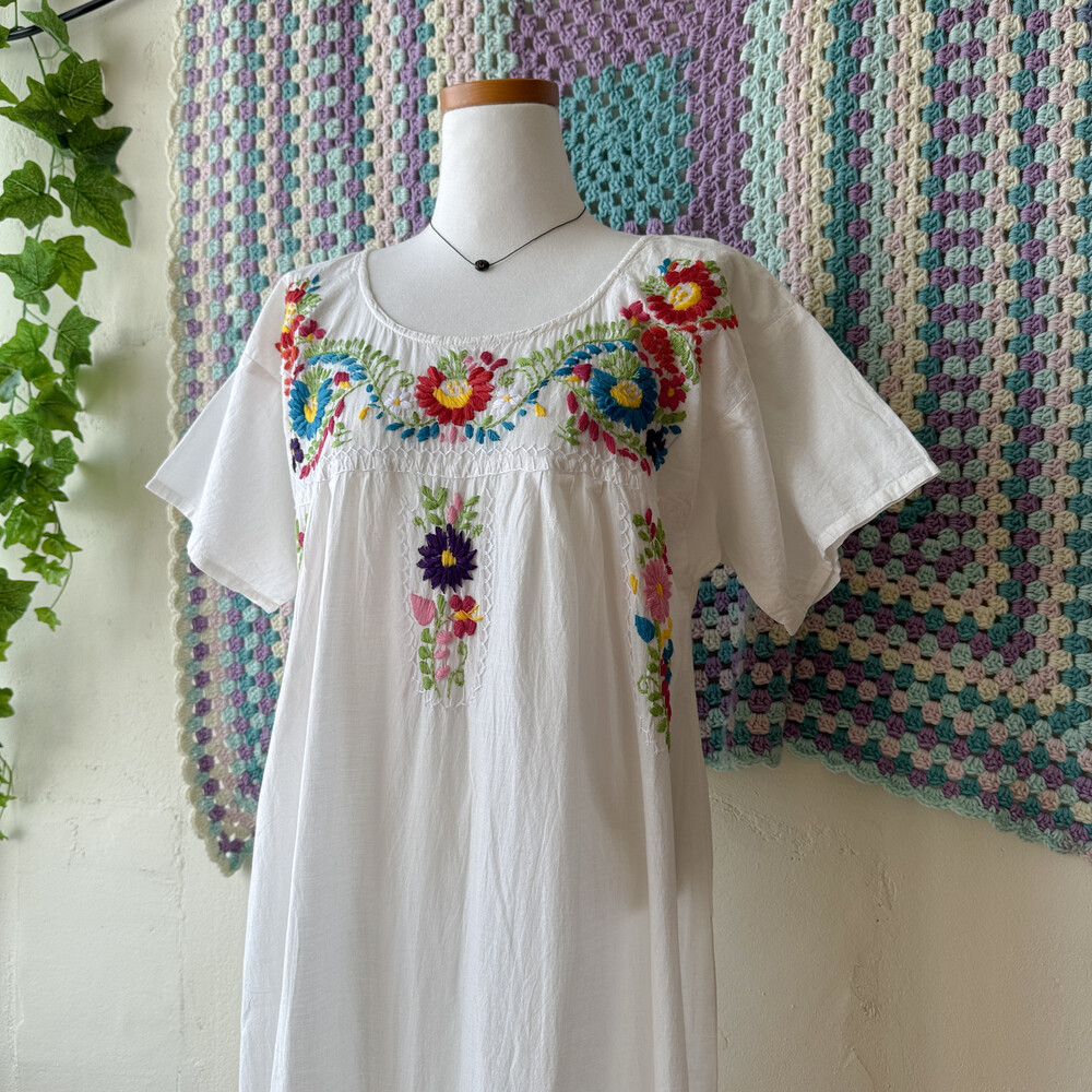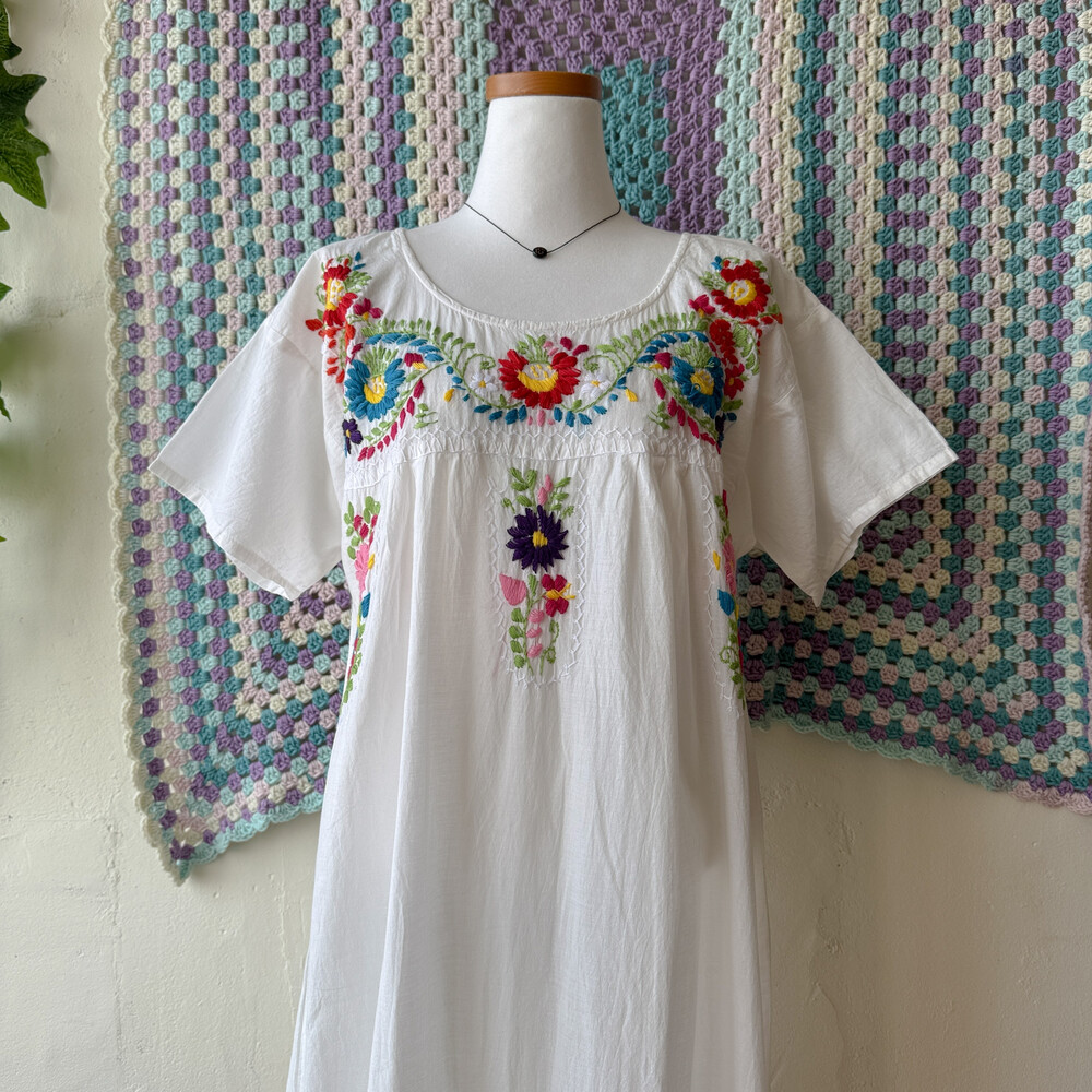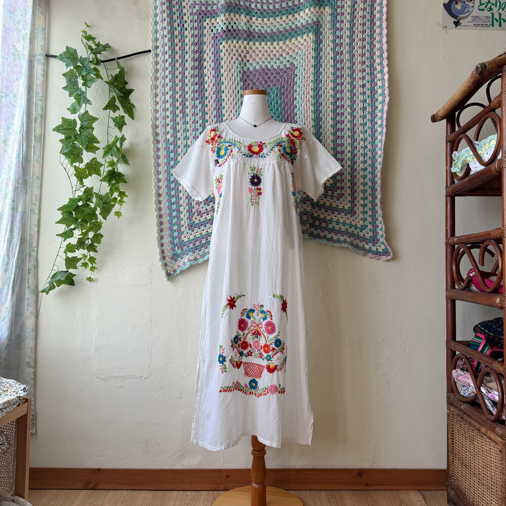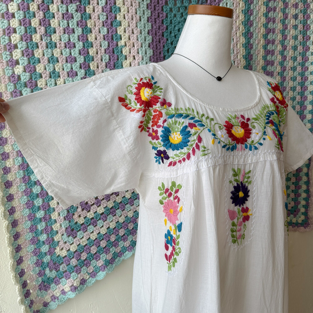 화이트 색감의 멕시칸 자수 코튼 원피스예요