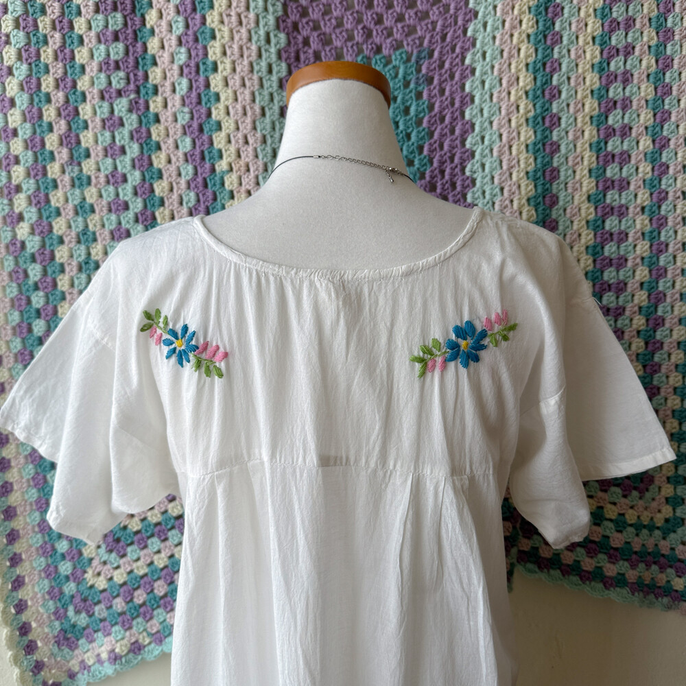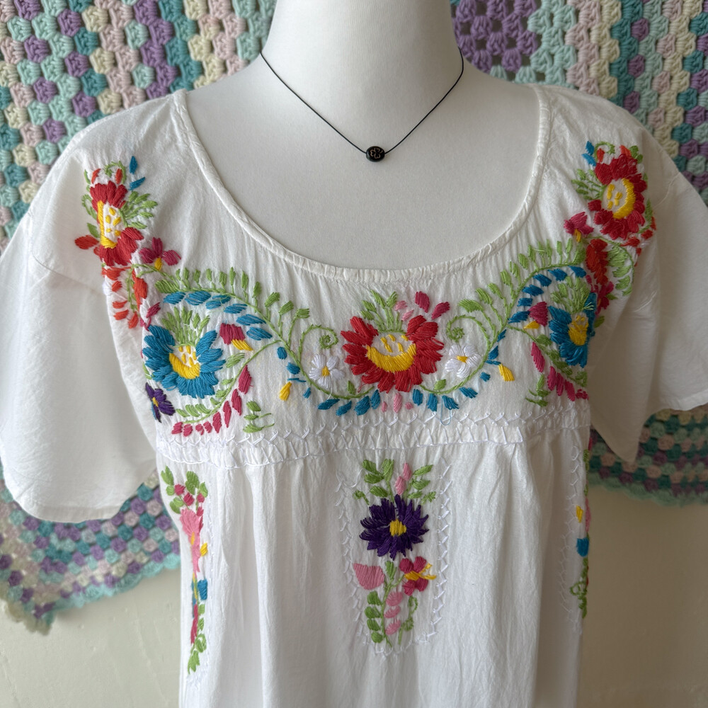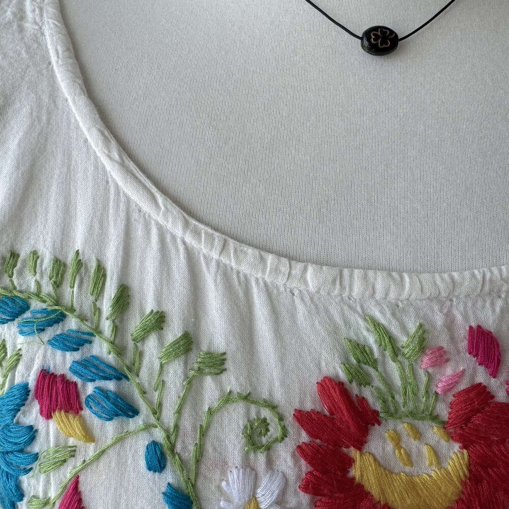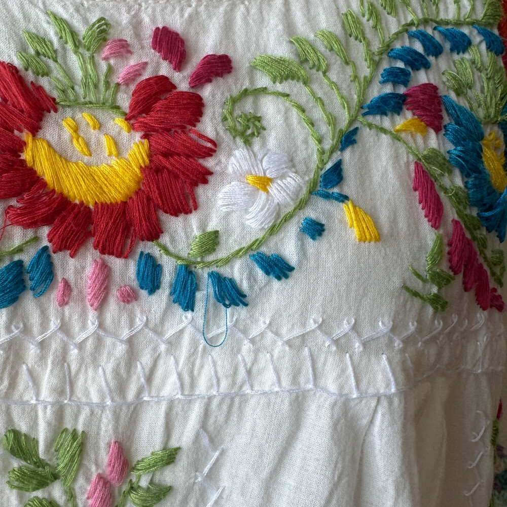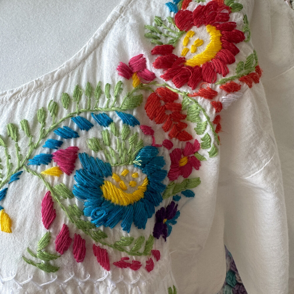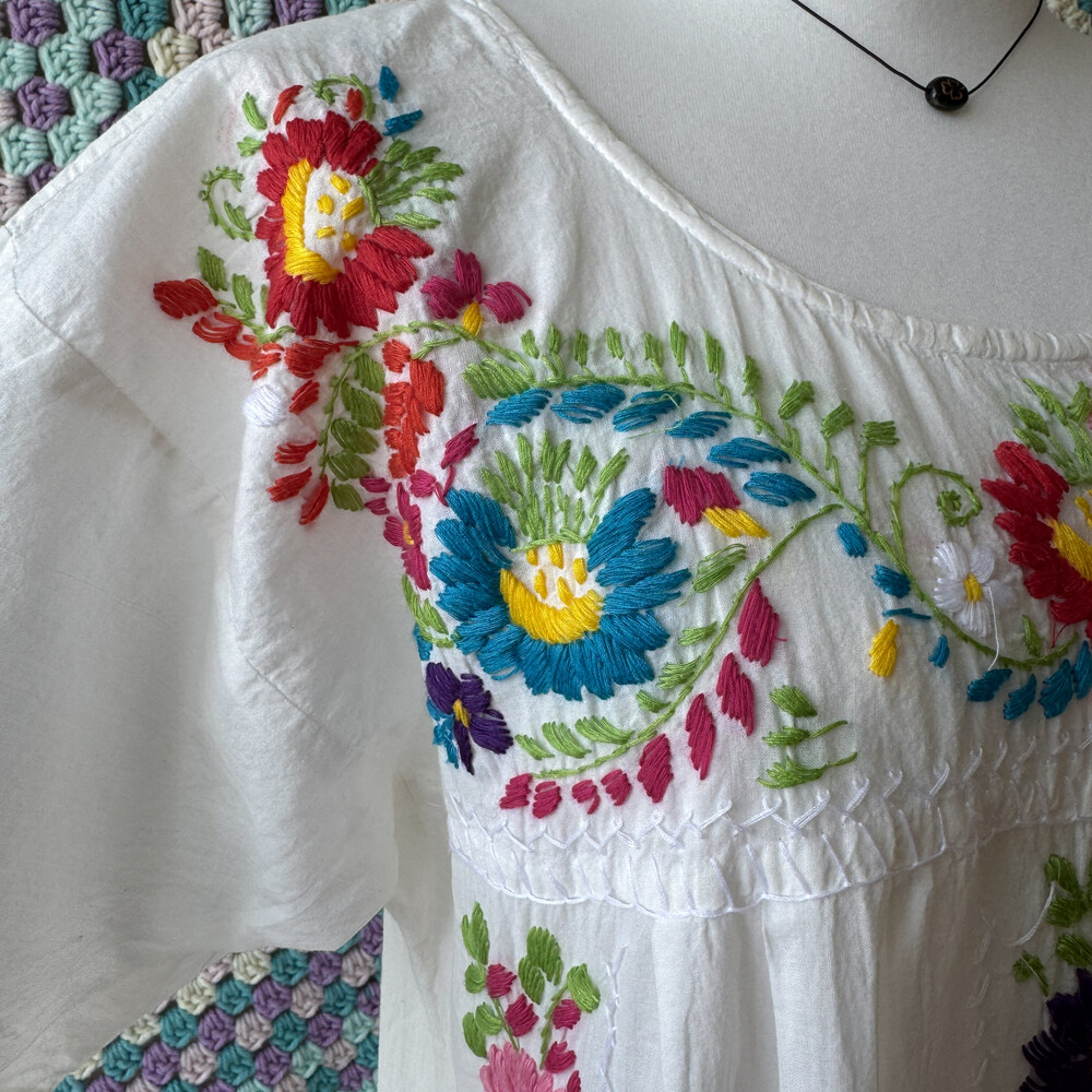 화이트 색감의 멕시칸 자수 코튼 원피스예요