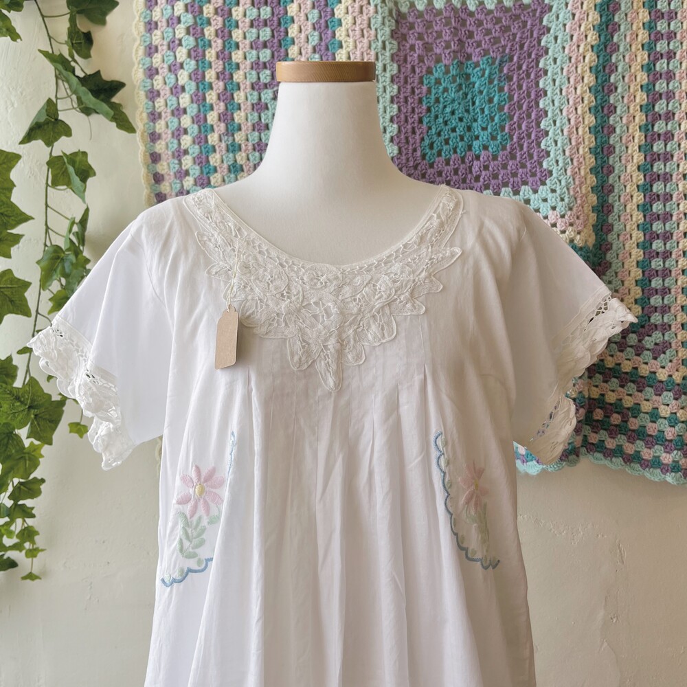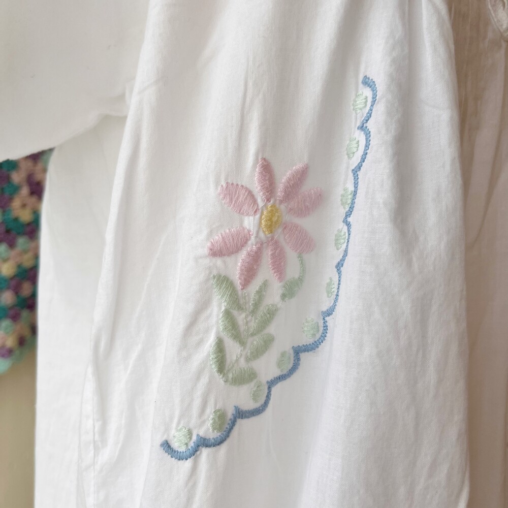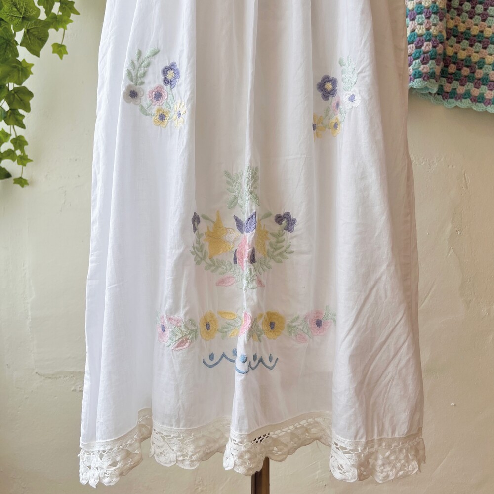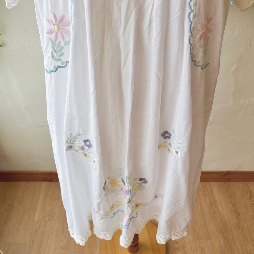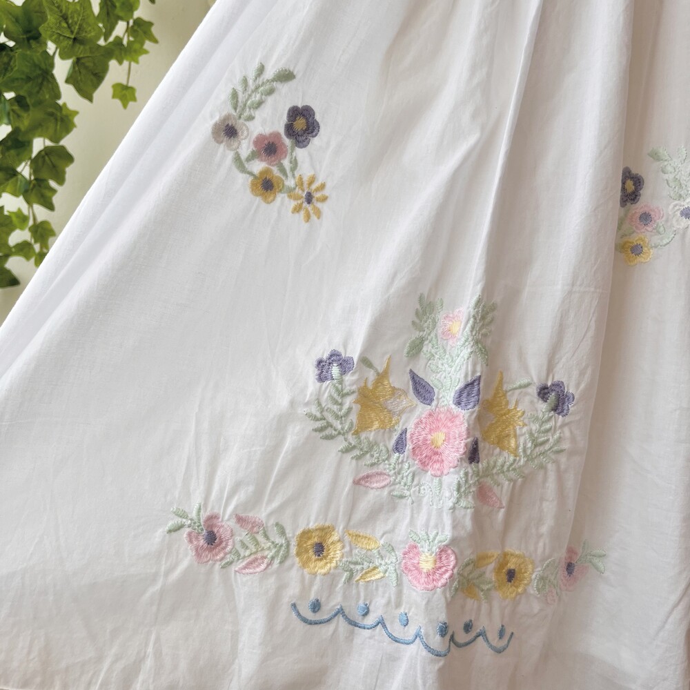 파스텔 자수 포인트의 화이트 코튼 원피스예요
