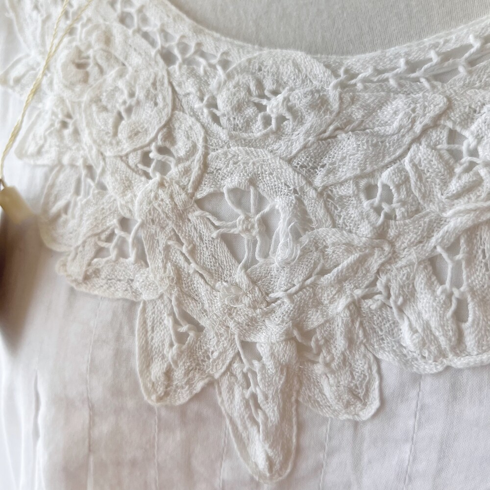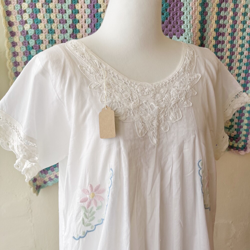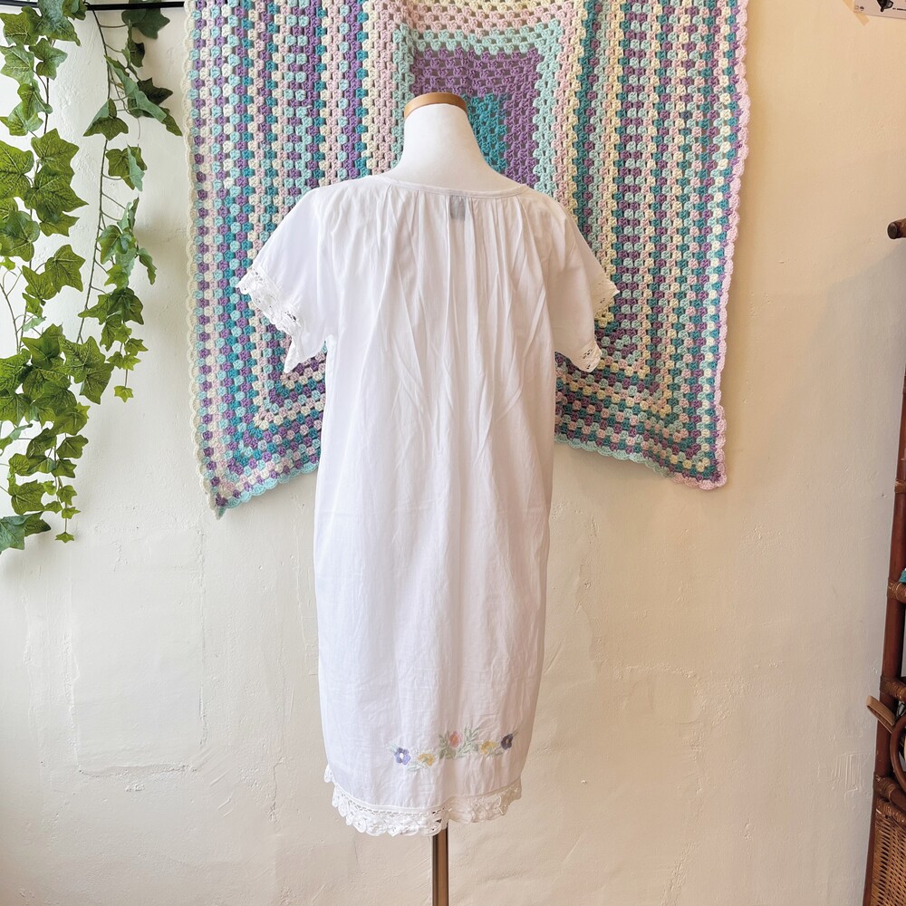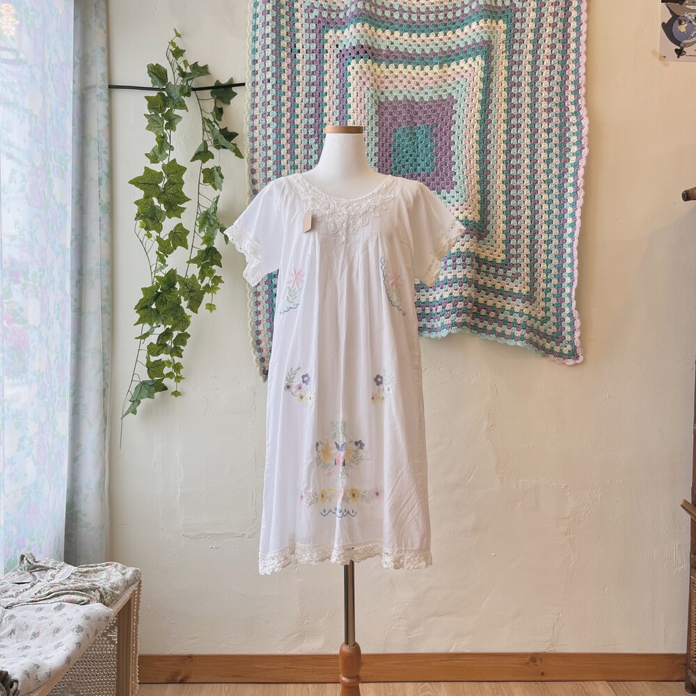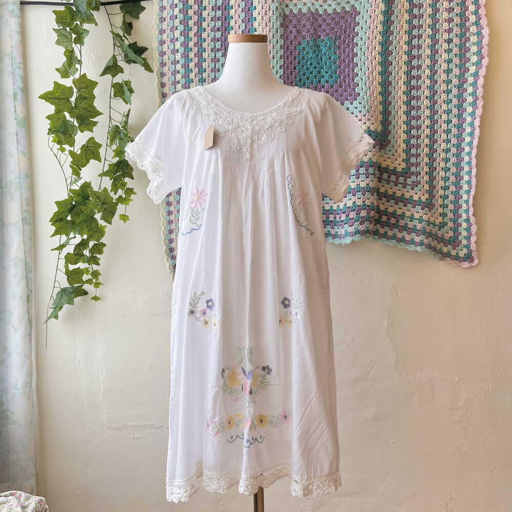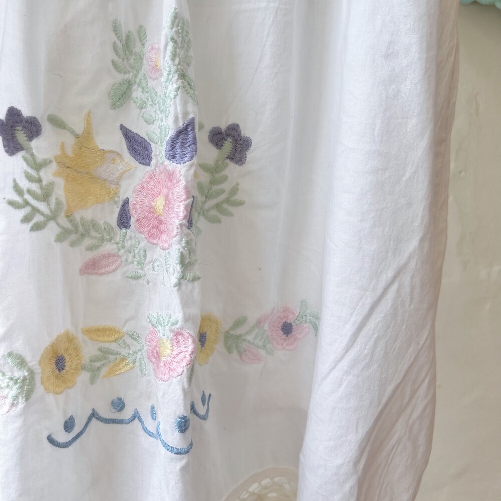 파스텔 자수 포인트의 화이트 코튼 원피스예요