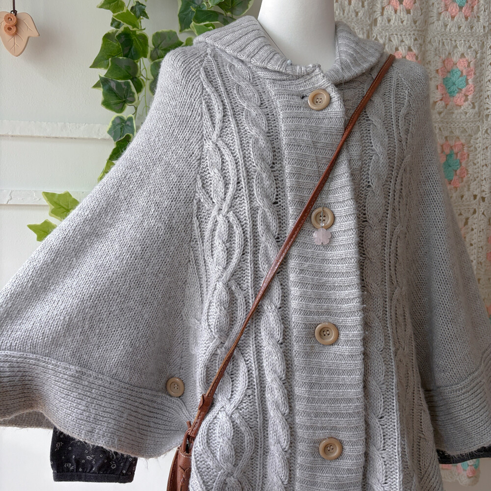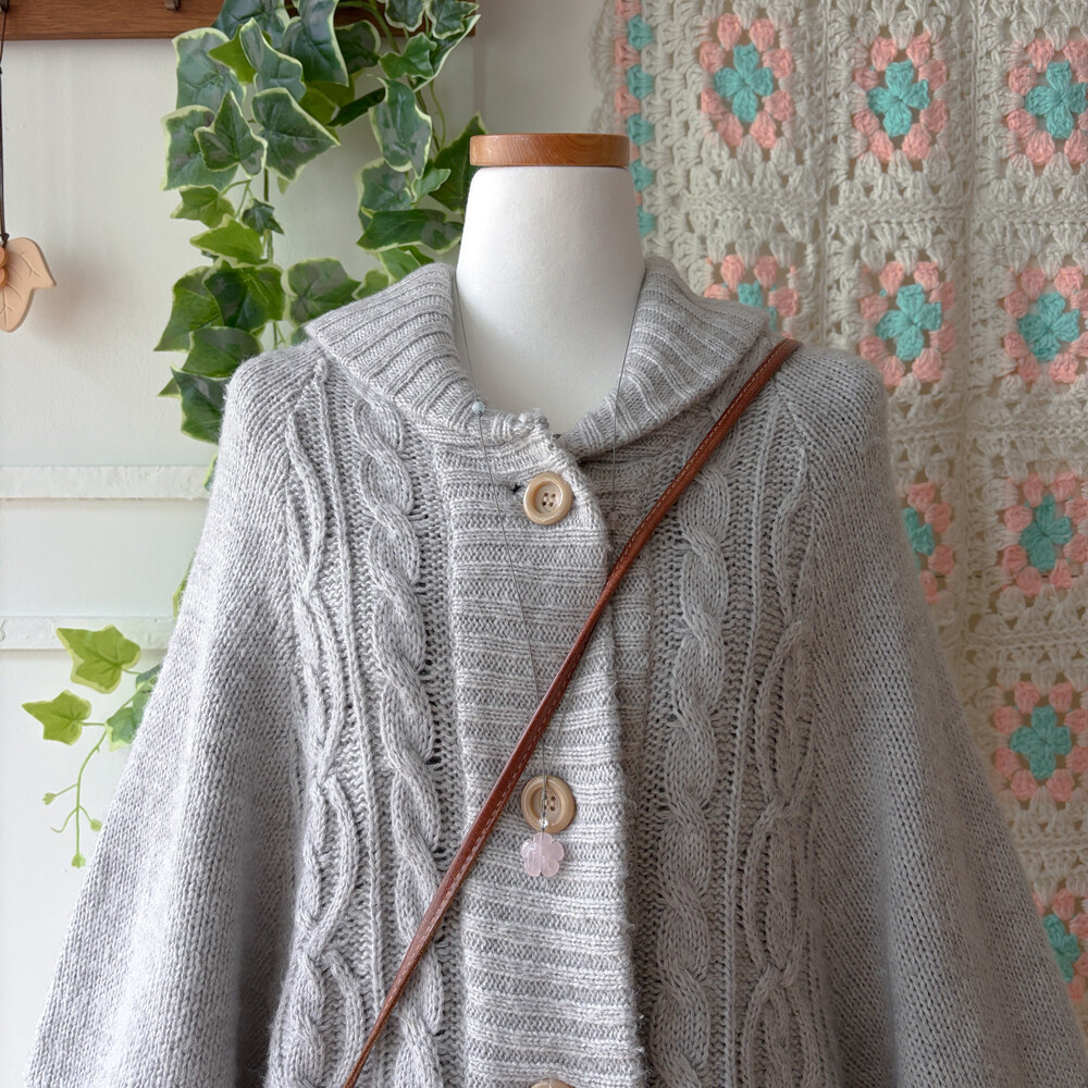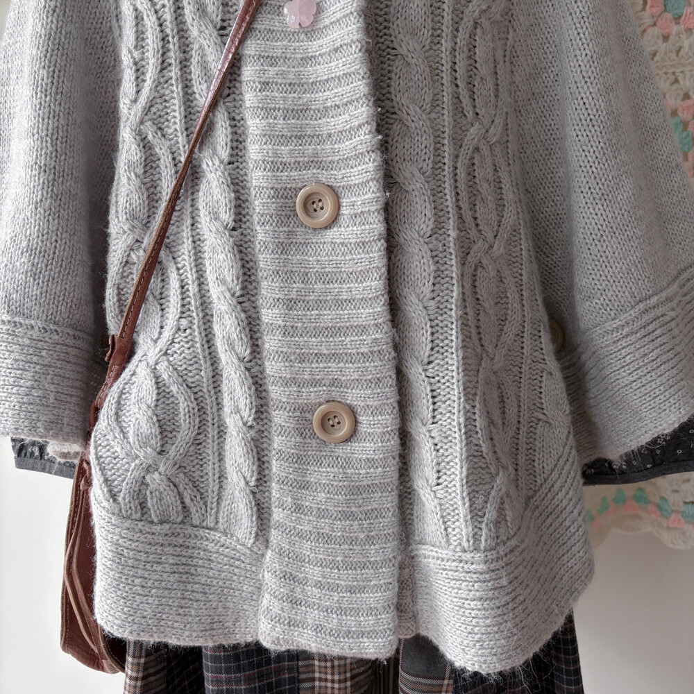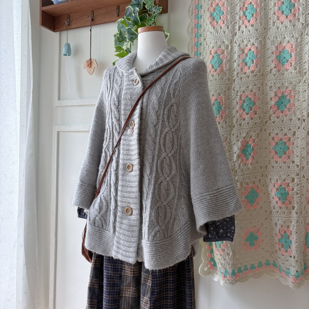 밝은 그레이 색감의 케이프 가디건이에요